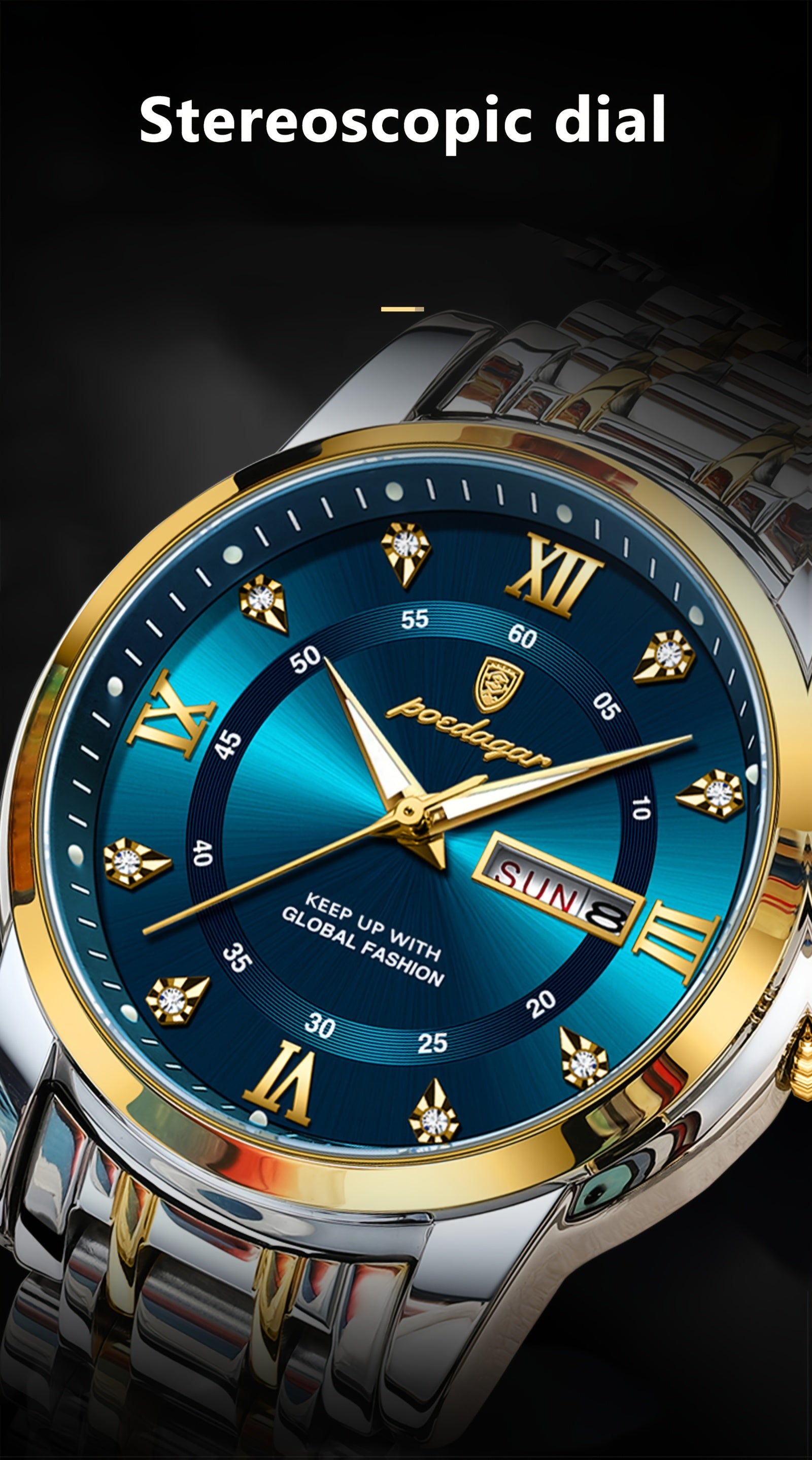 POEDAGAR Men's Luxury Business Quartz Watch - Luminous with Calendar Feature, Stainless Steel Band
