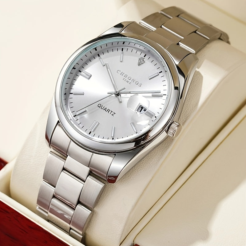 Popular CHRONOS Men's Fashion Sports Watch Stainless Steel Strap Calendar Luminous Quartz Watch Classic and Trendy All-match Commuting Watch Casual Men's Watch for Daily Wear Business Workplace Men's Watch Outdoor Sports Hand