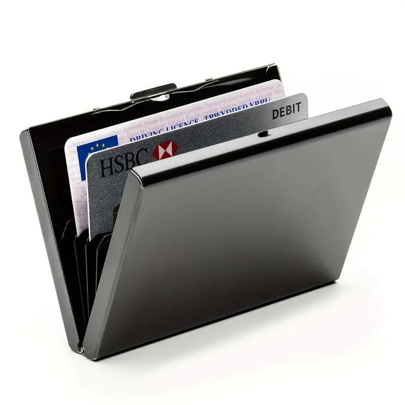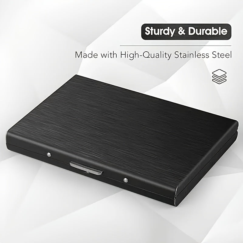 Premium Stainless Steel RFID Blocking Card Holder for Men – Sleek Black Metal Wallet with Multiple Compartments, Perfect Father’s Day Gift for Dad, Secure Card Storage | Polished Finish | Metallic Construction