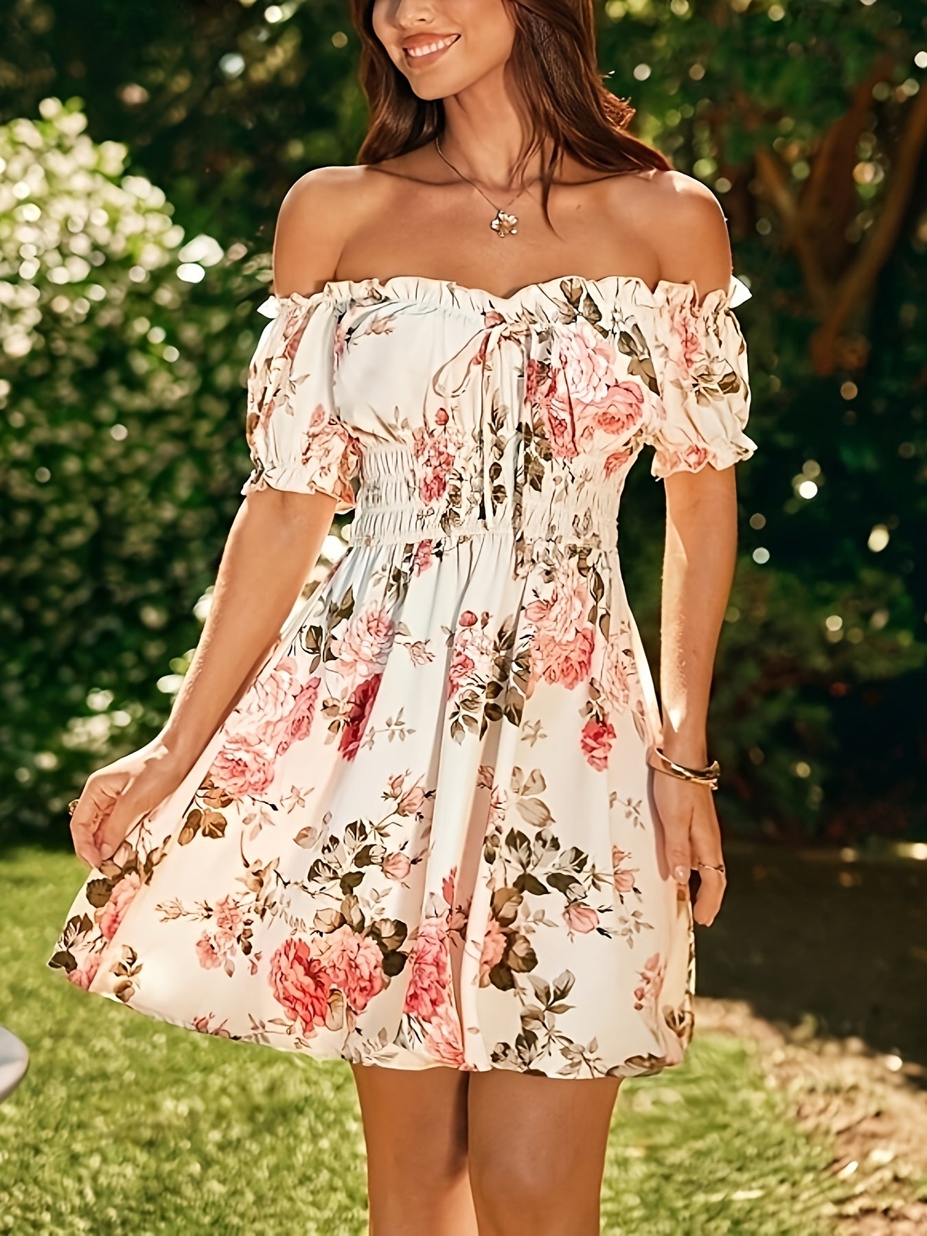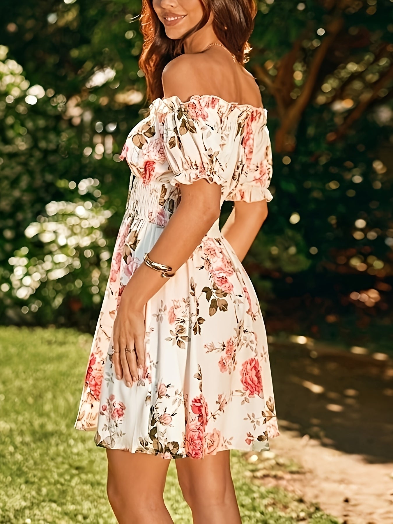 Print Dress for Women - Short Sleeve, A-Line Skirt, Spring/Summer Polyester Fashion, Machine Washable