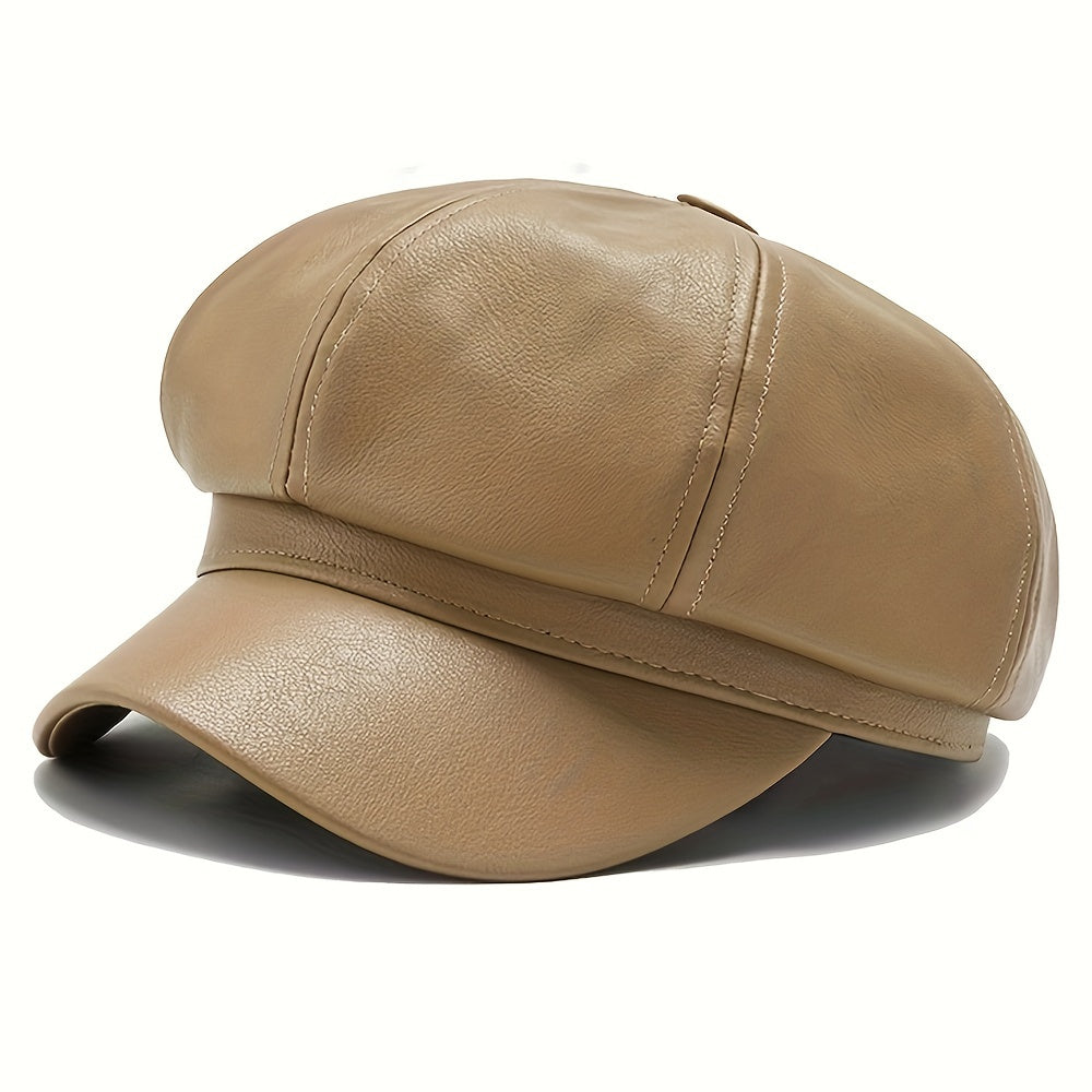 PU Leather Beanie Hat For Women, Waterproof, Round Bucket Hat With Faux Fur Pom Pom, Stylish Winter Hat For Fall/Winter/Spring