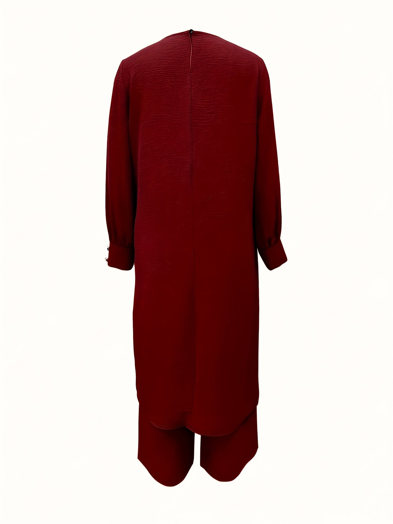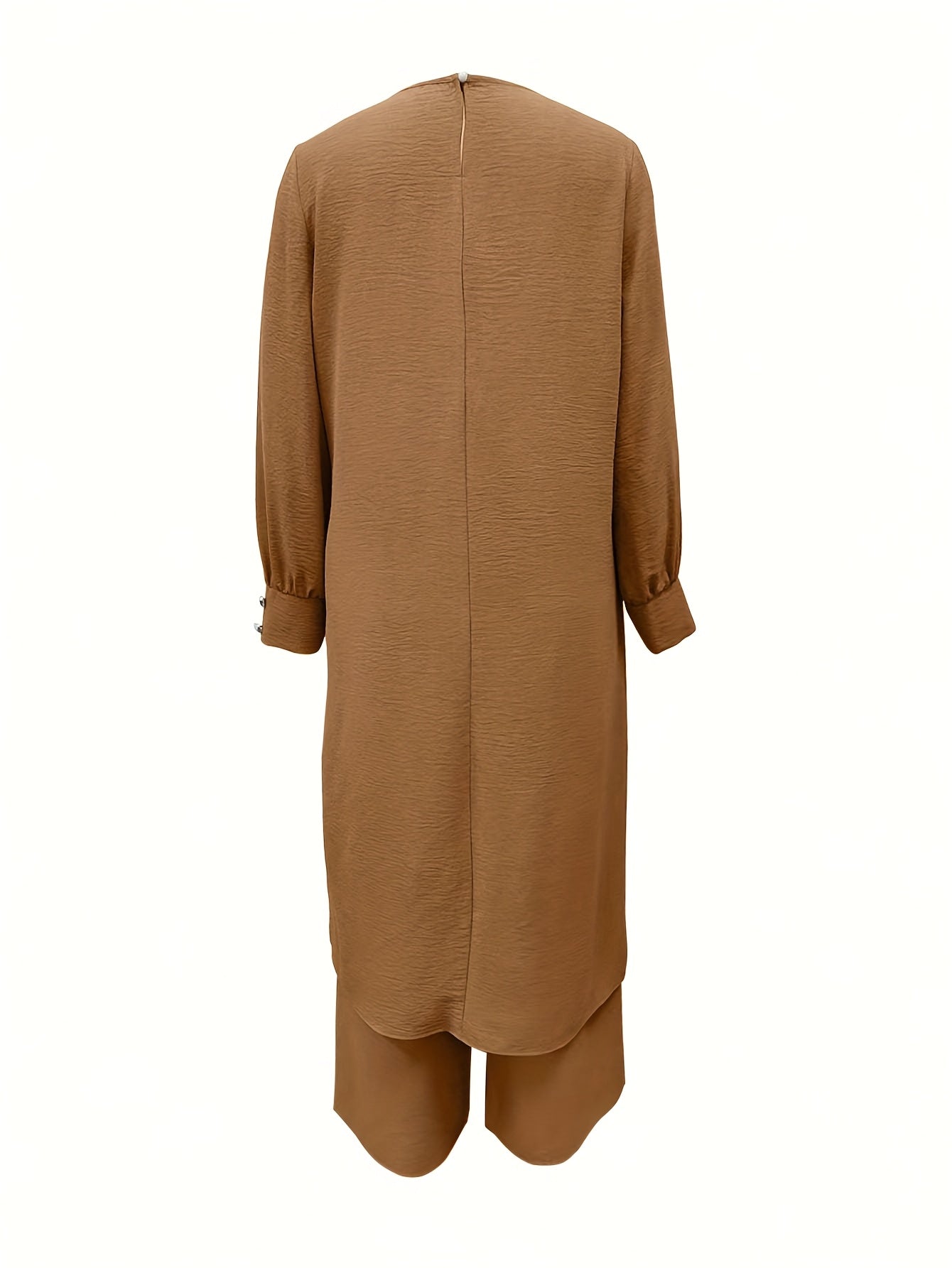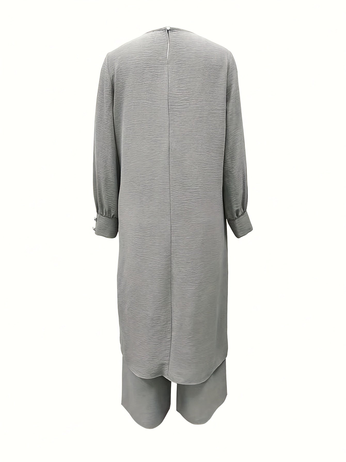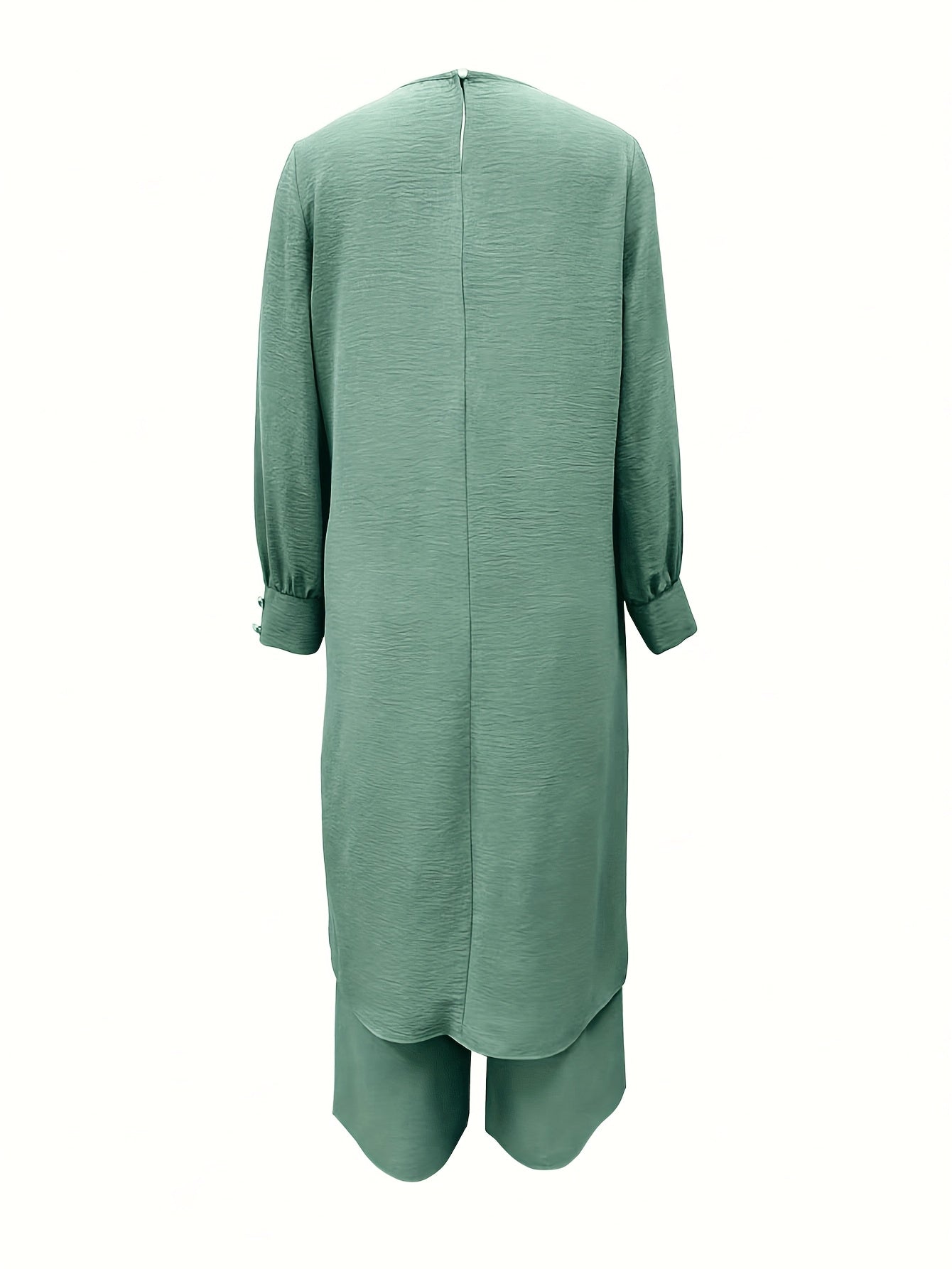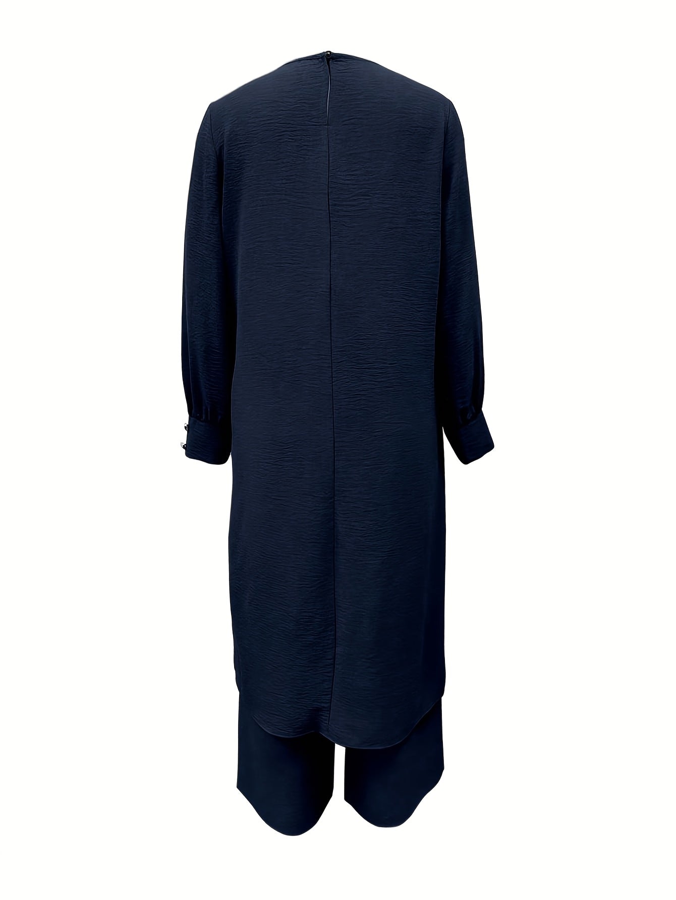 Ramadan, Women's Front-Button Long Sleeve Slit Dress & Pants Casual Arabic Style 2pcs Set, Only Clothes, Without Headscarf