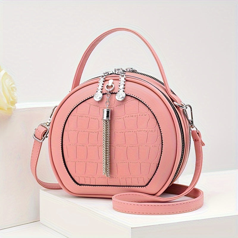 Round Crocodile Pattern Handbag, Fashion Mini Crossbody Bag, Women's Zipper Shoulder Purse