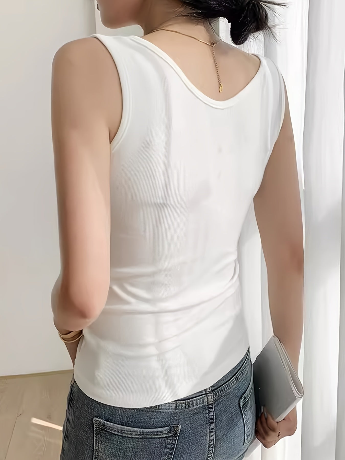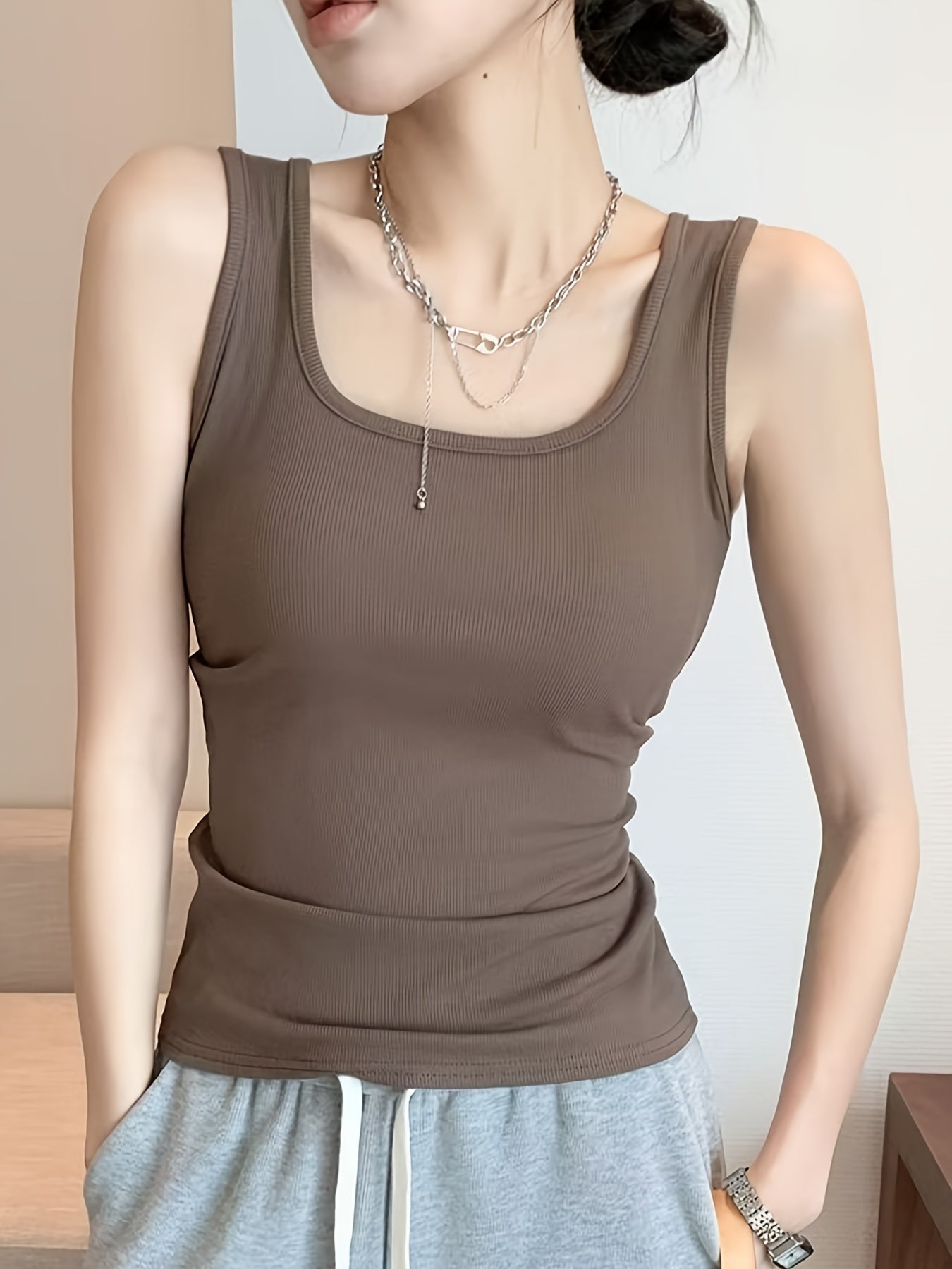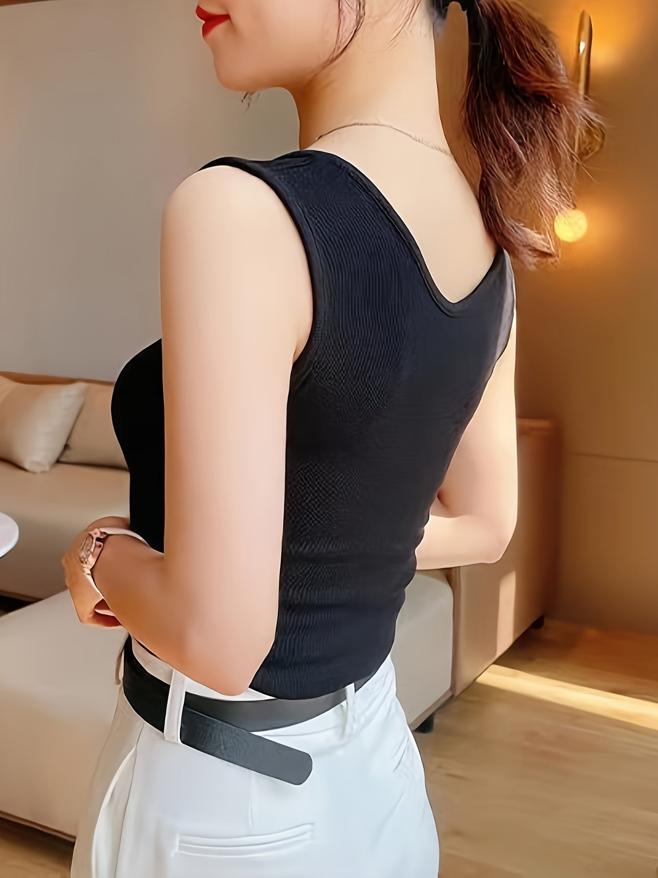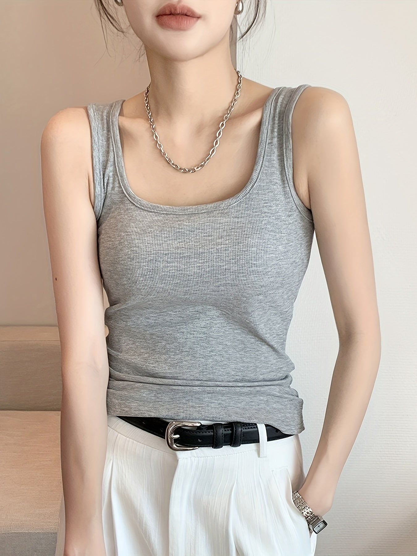 Solid Color Casual, U-neck, Wide Shoulder Vest, Women's Vest, Inner Wear, Versatile Outer Wear, Sleeveless Vest, Comfortable and Simple, Spring, Summer and Autumn Top, Can Be Worn in Winter, Christmas, Valentine's Day