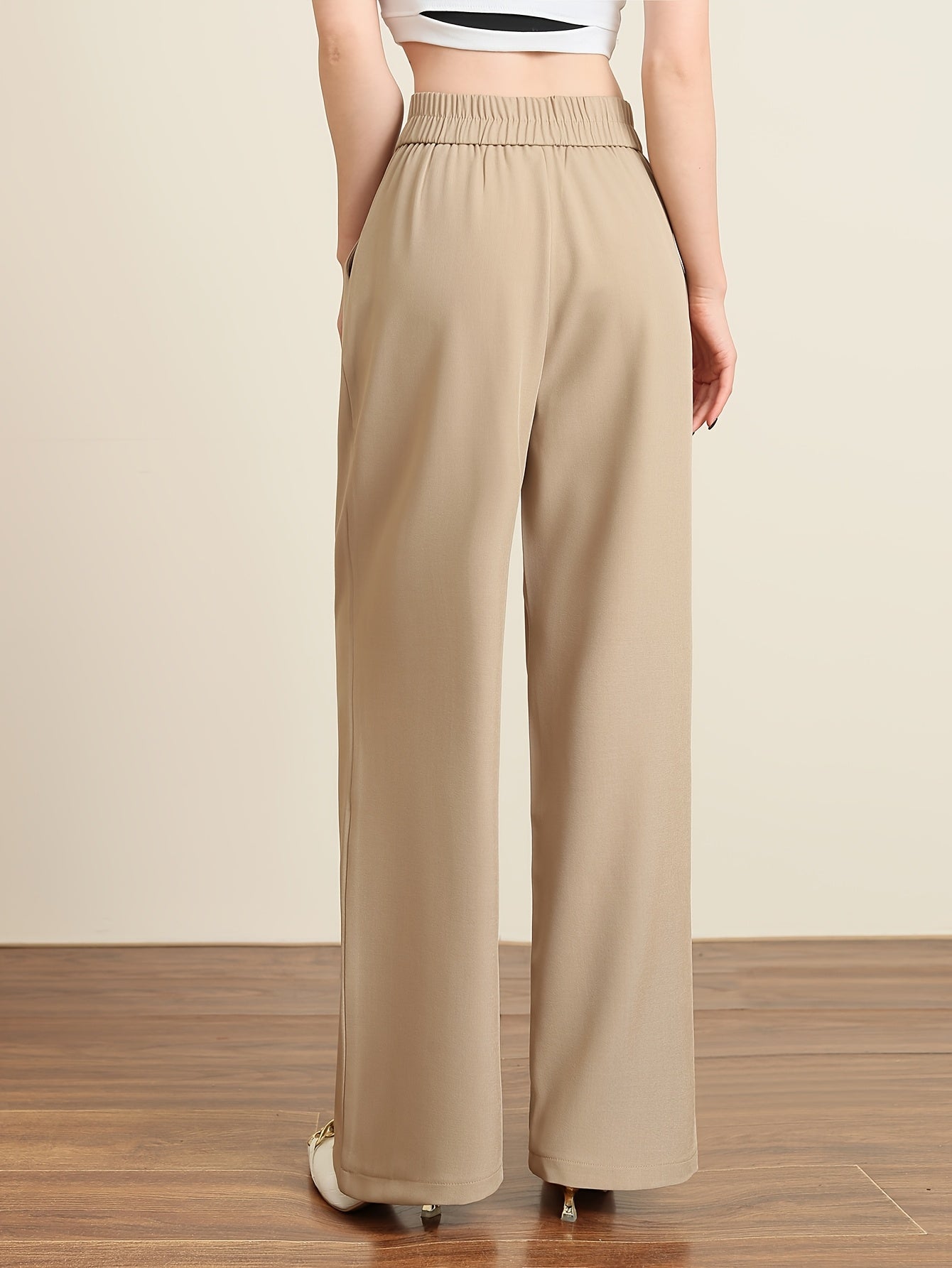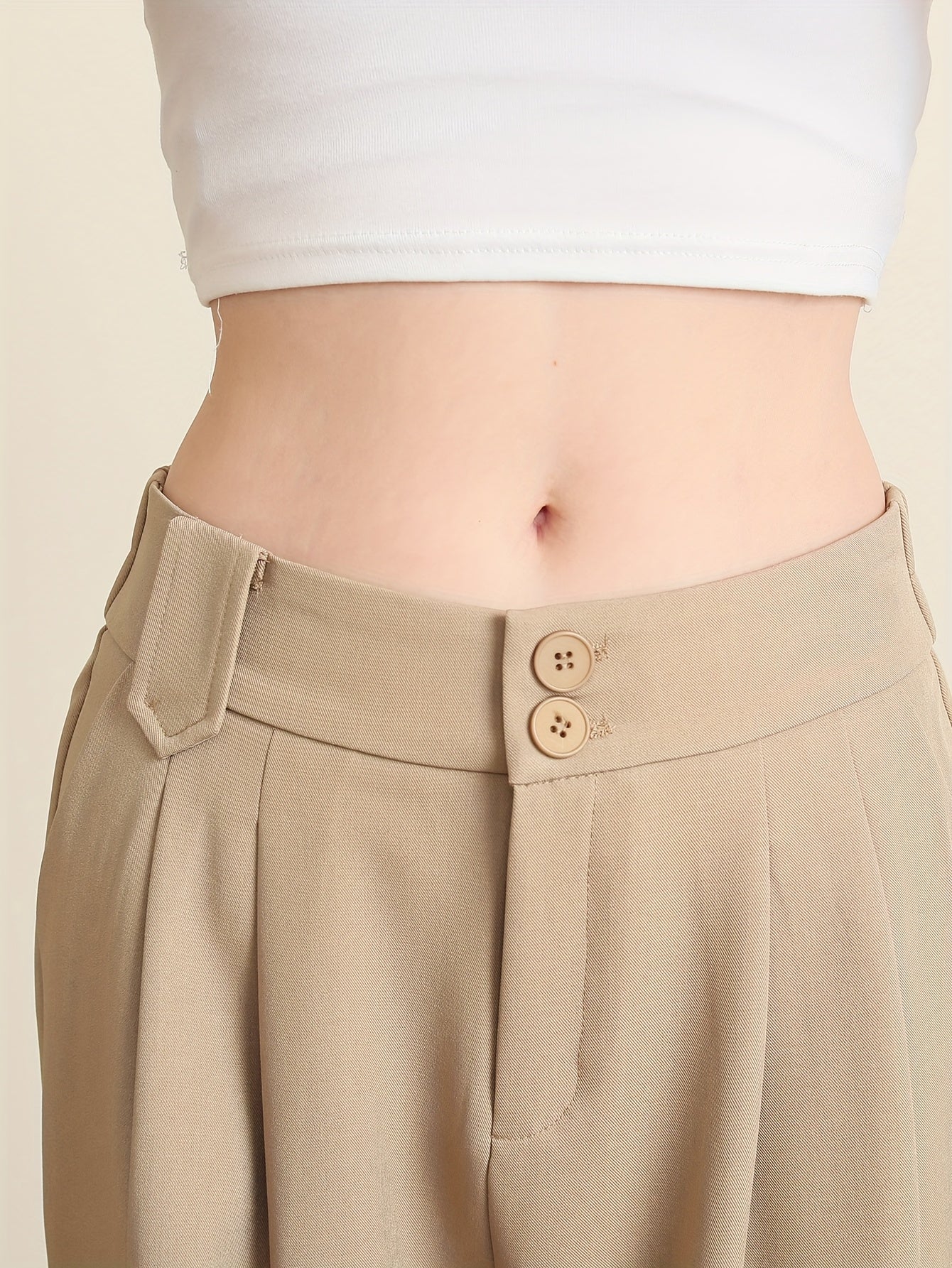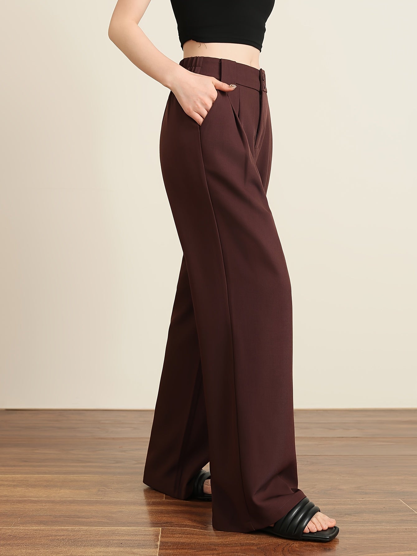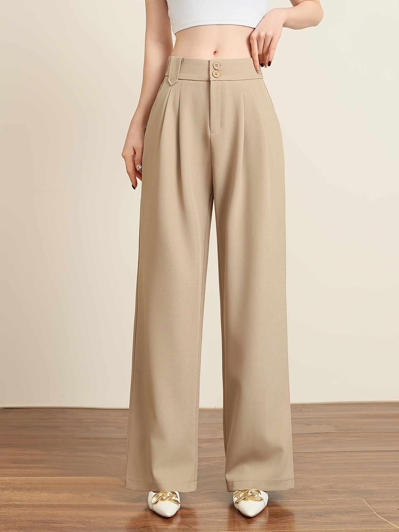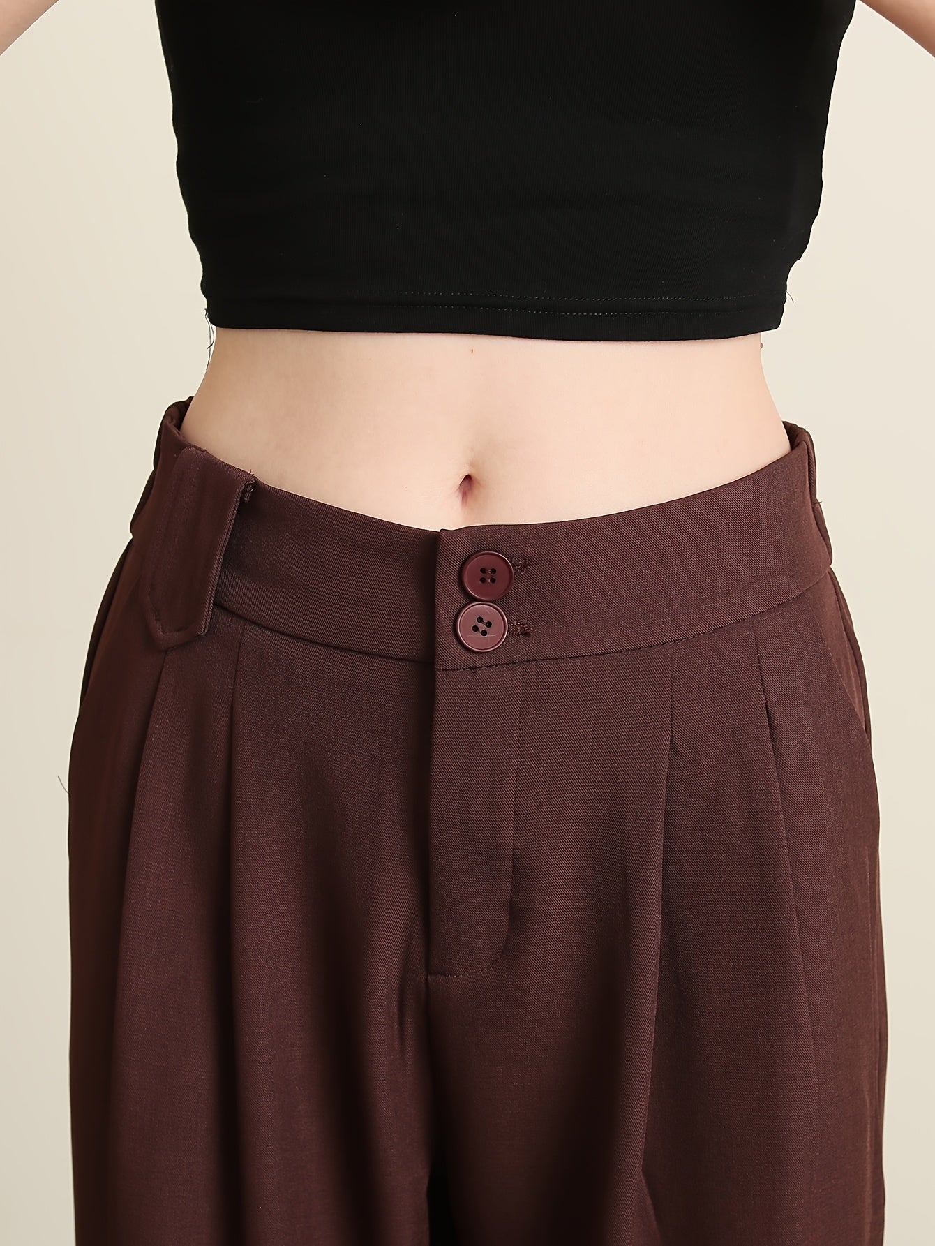 Solid Color Slim Straight Pants, Casual Women'S Long Trousers with Pockets And Buttons for Everyday Wear.