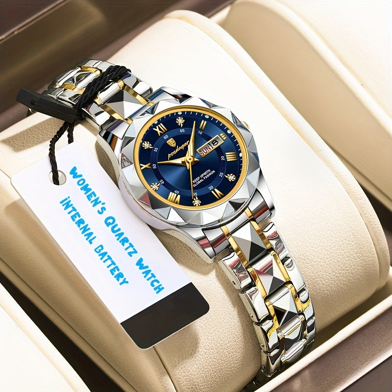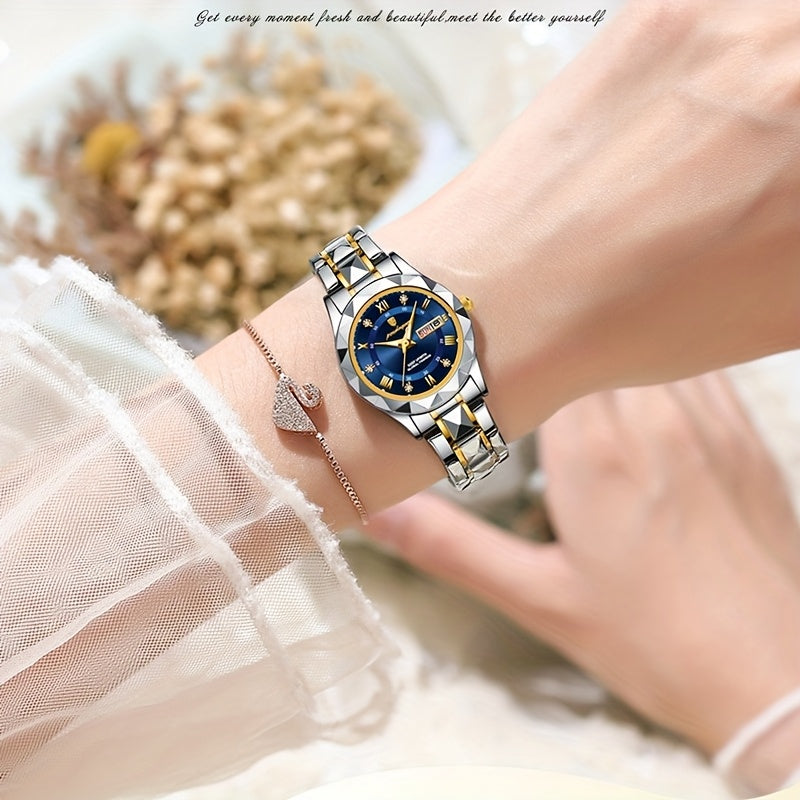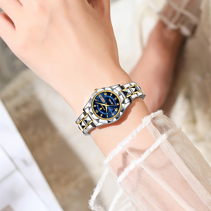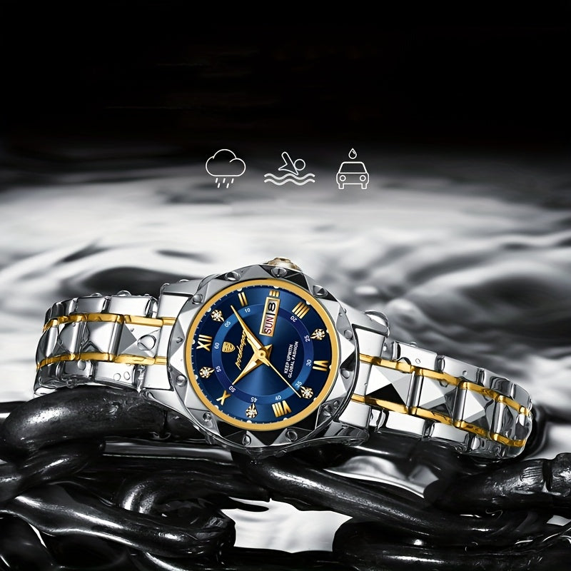 Stainless Steel Women's Luxury Quartz Watch with Date Display, Luminous Hands & High Quality IPX7 - Elegant Casual & Formal Wear, Perfect Gift for Birthdays, Valentine's Day
