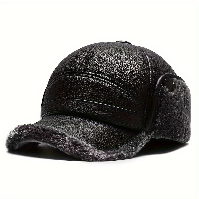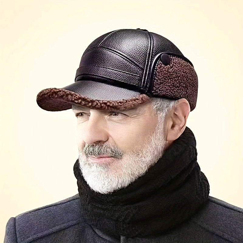 Street Style Men's Winter Cap with Ear Warmers, Faux Leather Earflap Hat for Elderly, Warm Duckbill Cap for Cold Weather