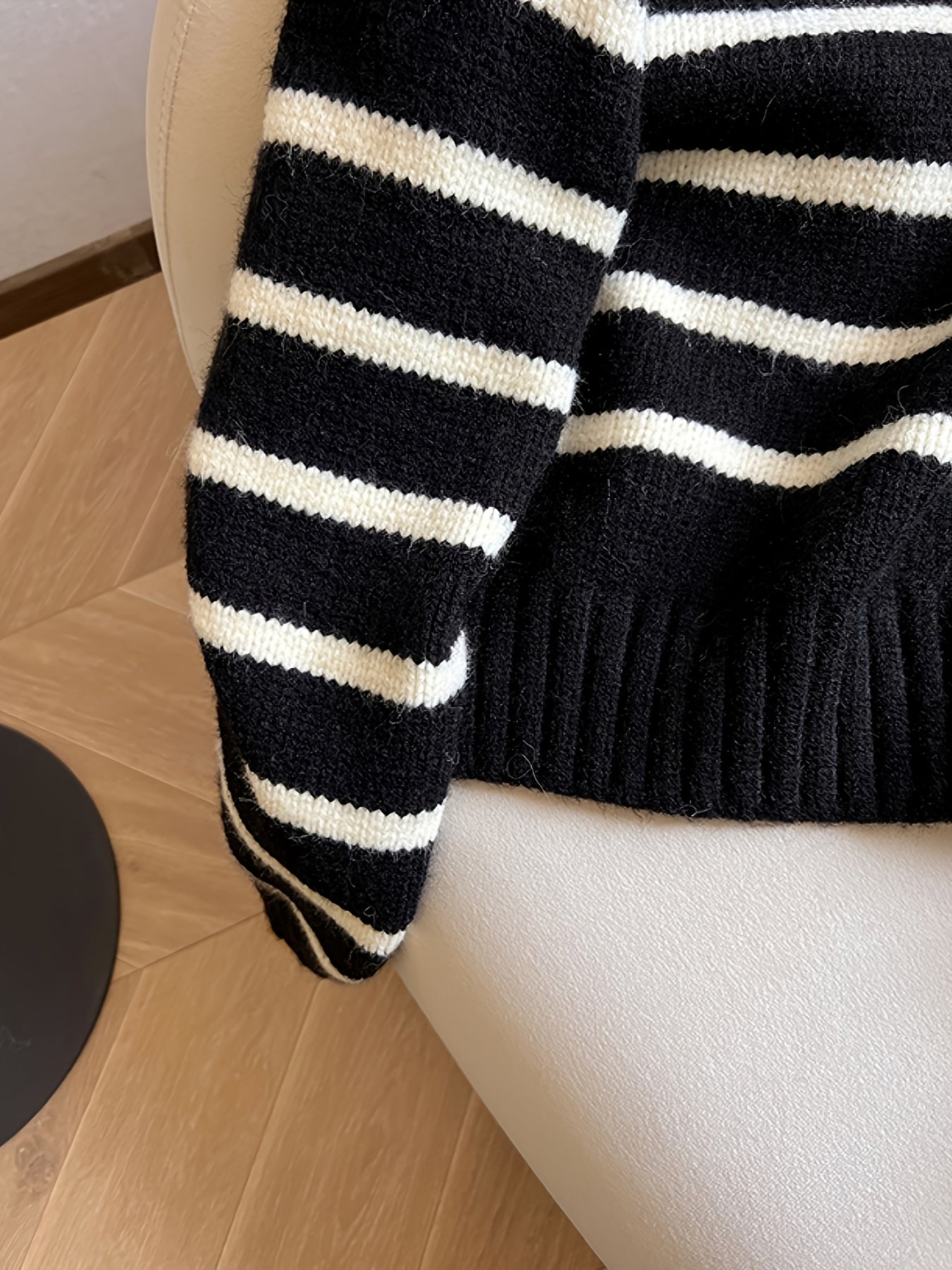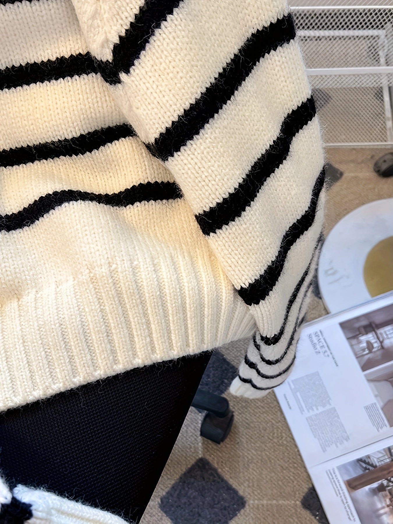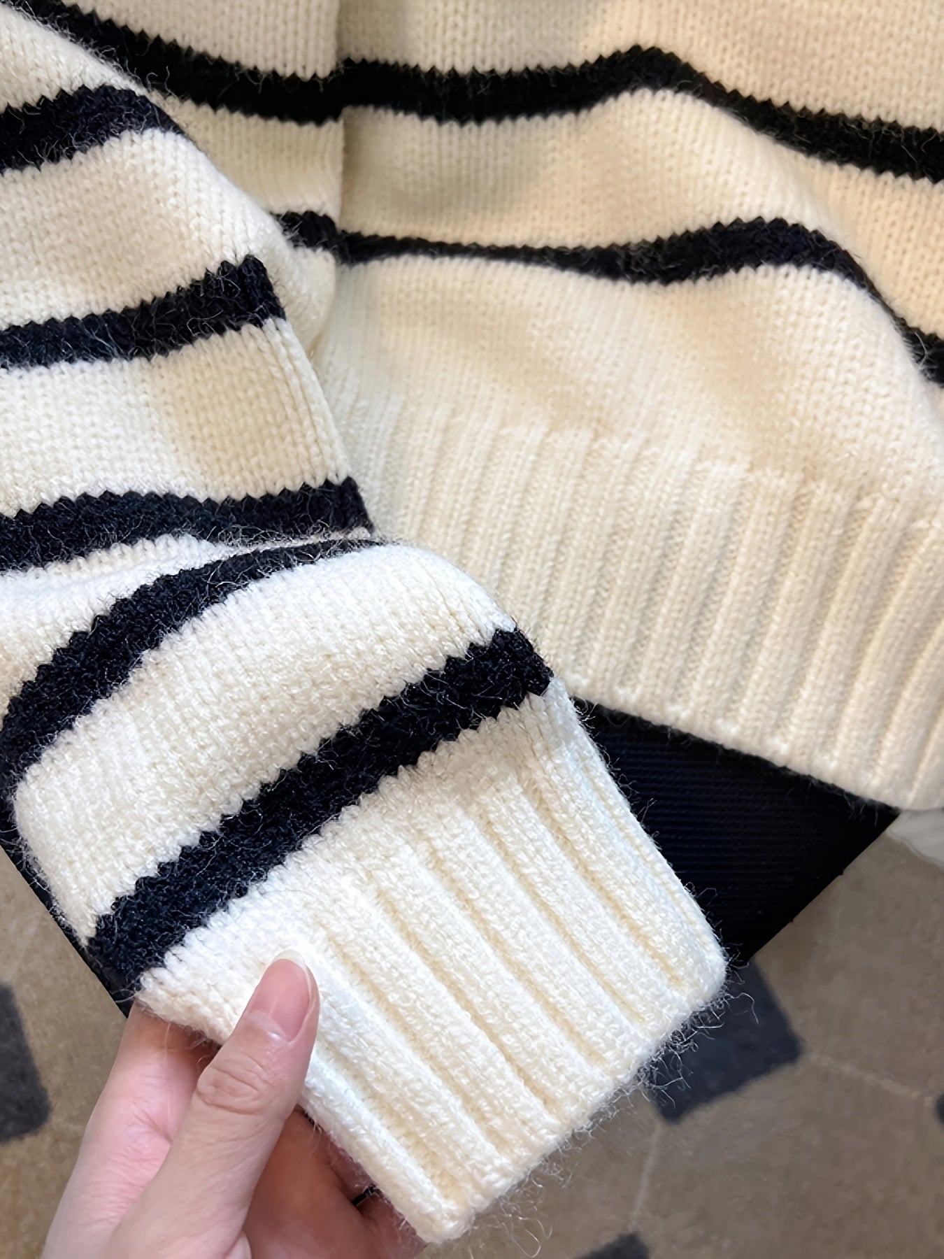 Striped Color Block Collared Sweater for Women Autumn Winter New Arrival Thick Half Zip Loose Soft Knit Top