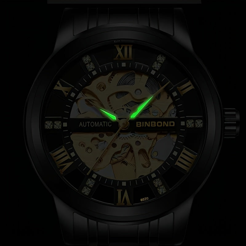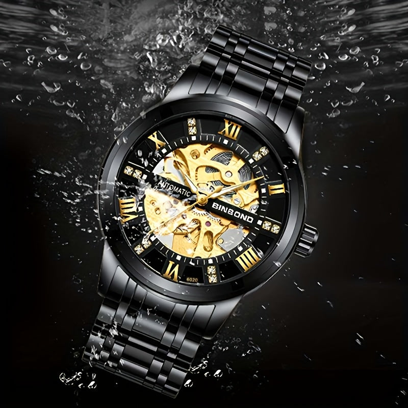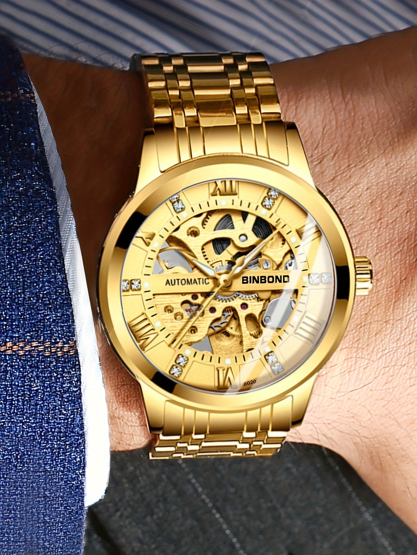 Stylish Men'S Fashion Casual Hollow Out Movement Mechanical Watch Waterproof Luminous Automatic Mechanical Watch, Without Battery