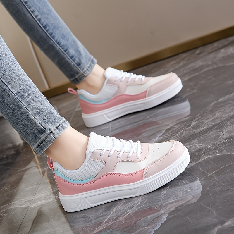 Stylish Women's Low-Top Sneakers - Lightweight Casual Shoes with Pastel Pink & Light Blue Accents, Synthetic Cover Upper, Breathable Mesh Lining, EVA Sole for Comfort, Perfect for Casual Attire & Travel