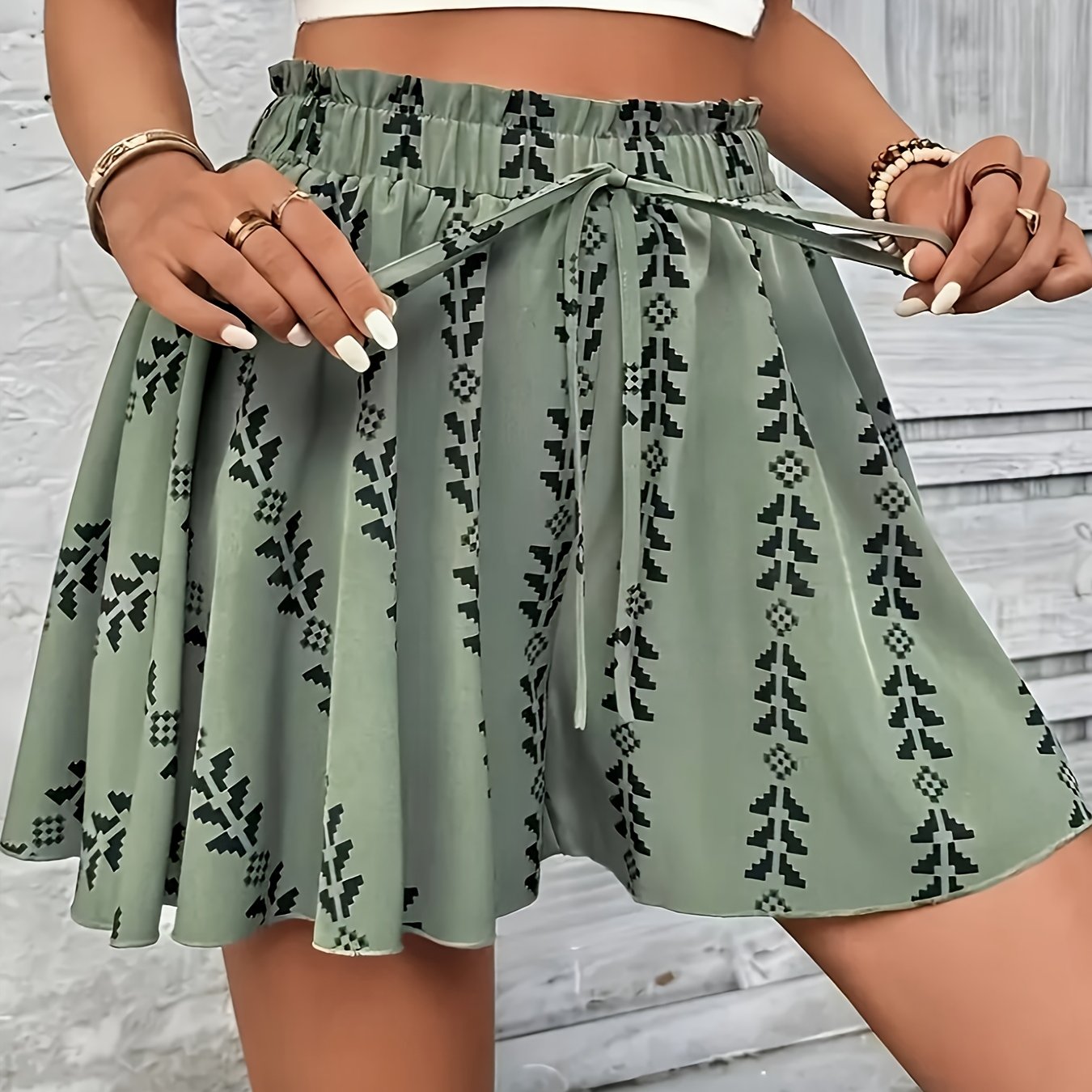 Summer Floral Print Shorts - Casual Elastic Waist with Tie Detail, Non-Stretch Polyester Fabric, Machine Washable, Loose Fit, Spring