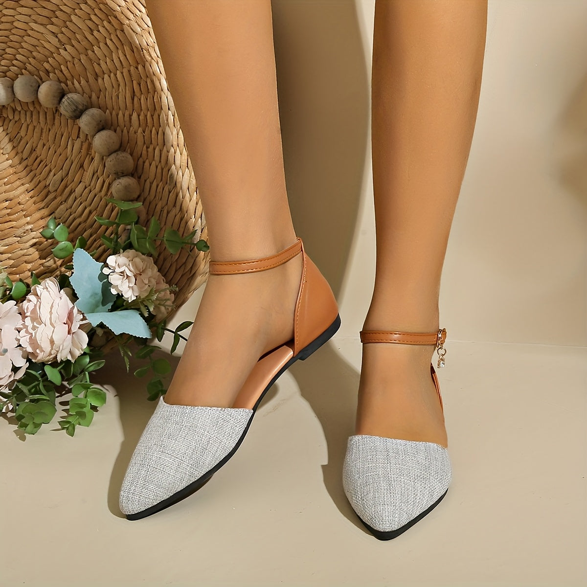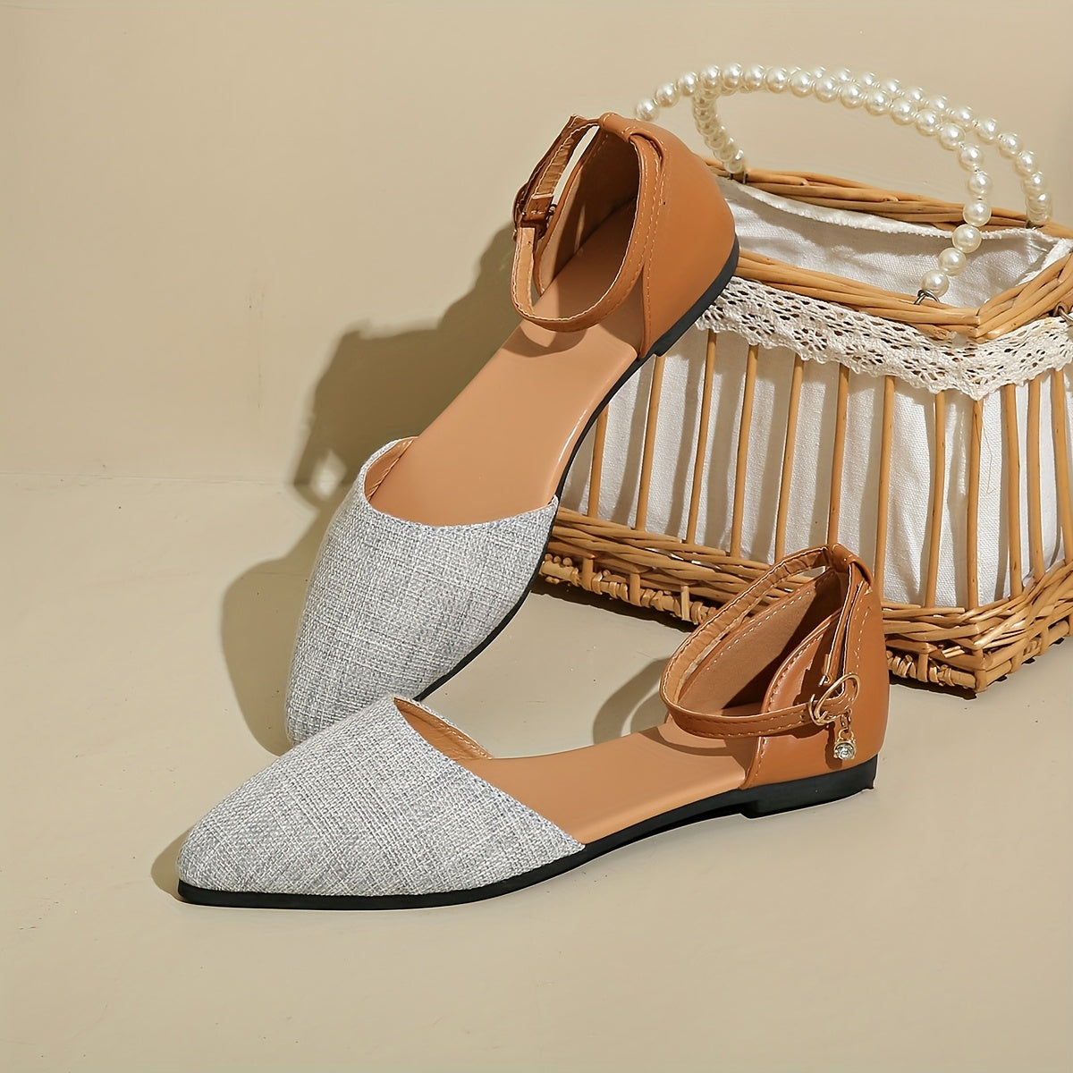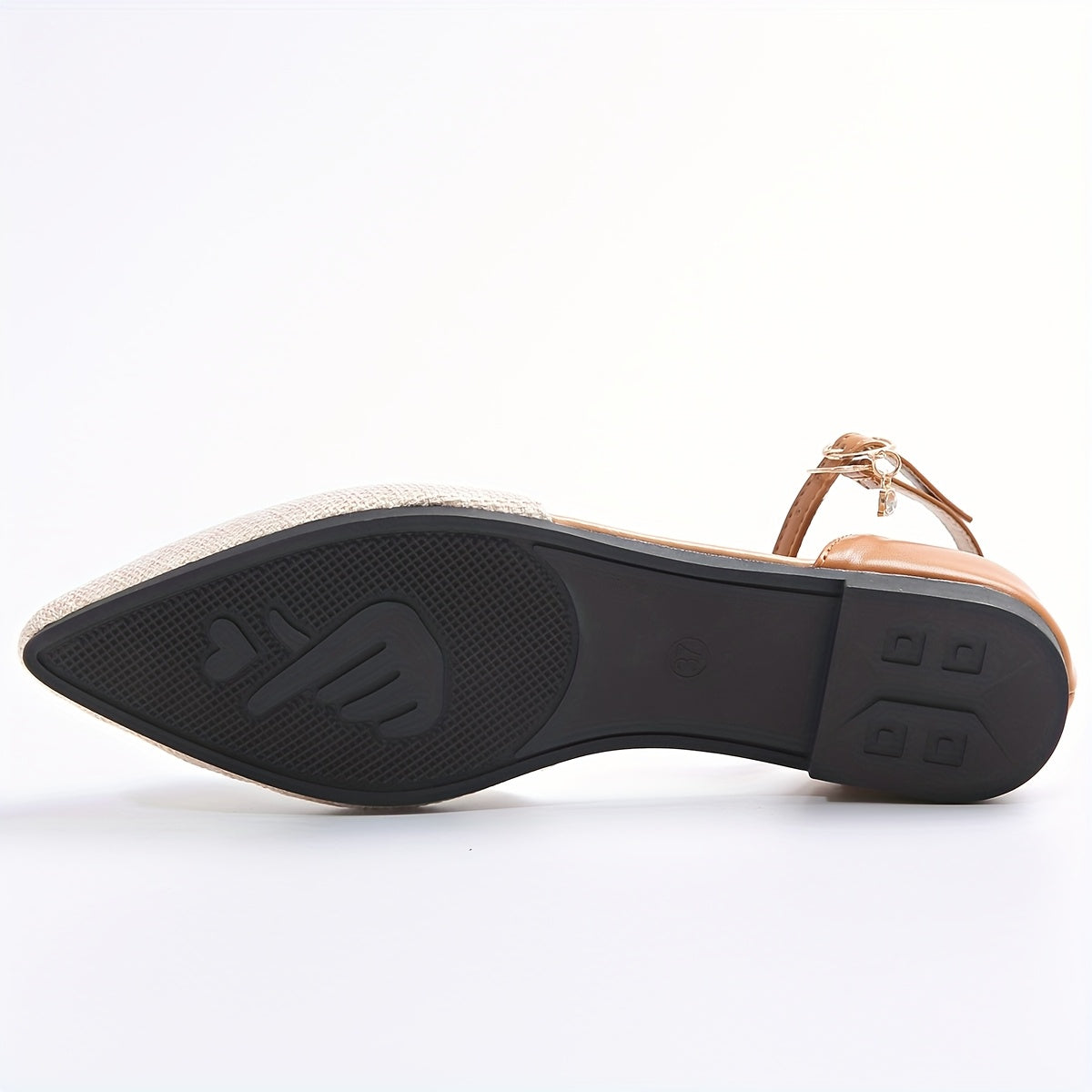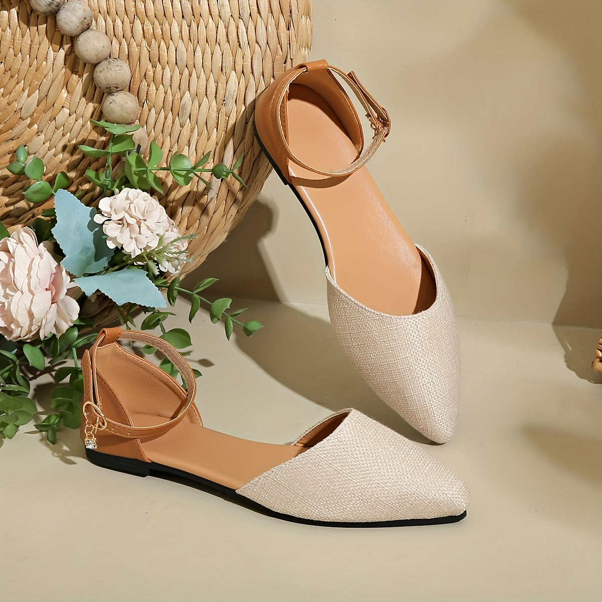Summer Women'S Flats, Elegant Pointed Toe Buckle Back Strap Sandals - Breathable And Comfortable Fit, with Ankle Straps, Suitable for Everyday Wear.