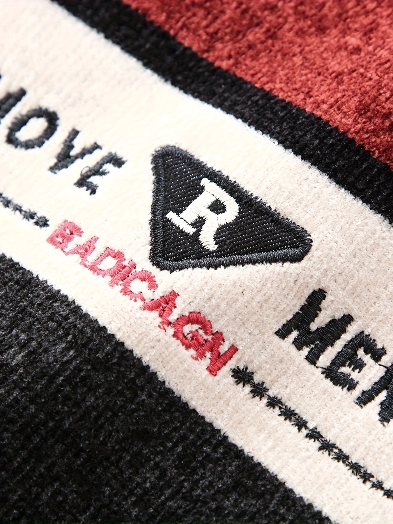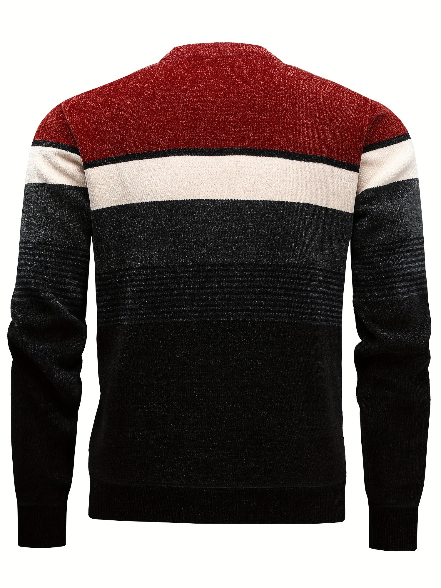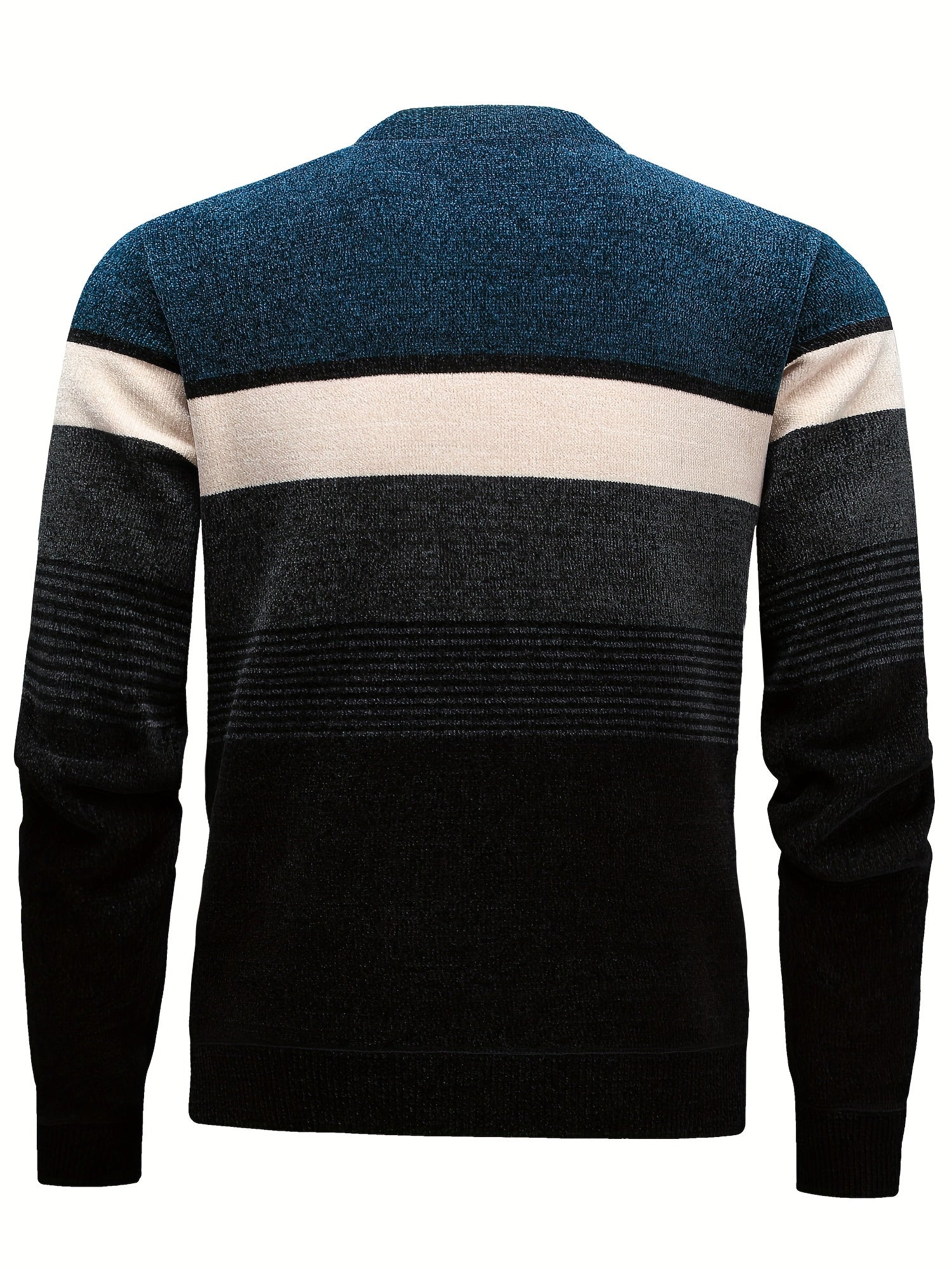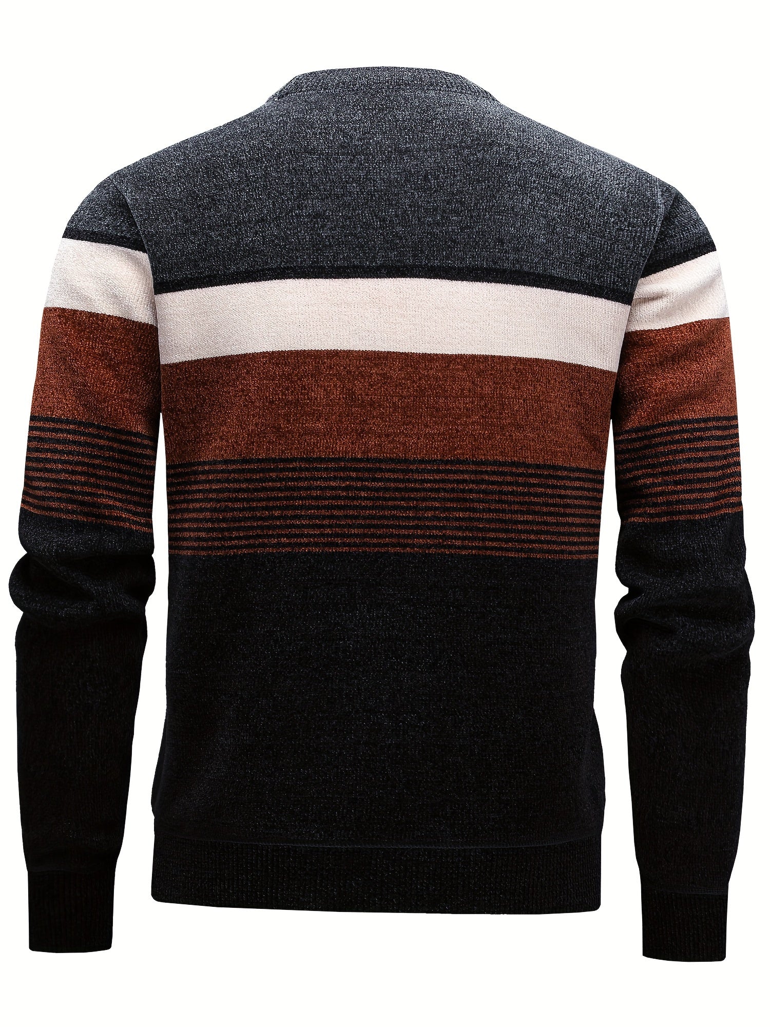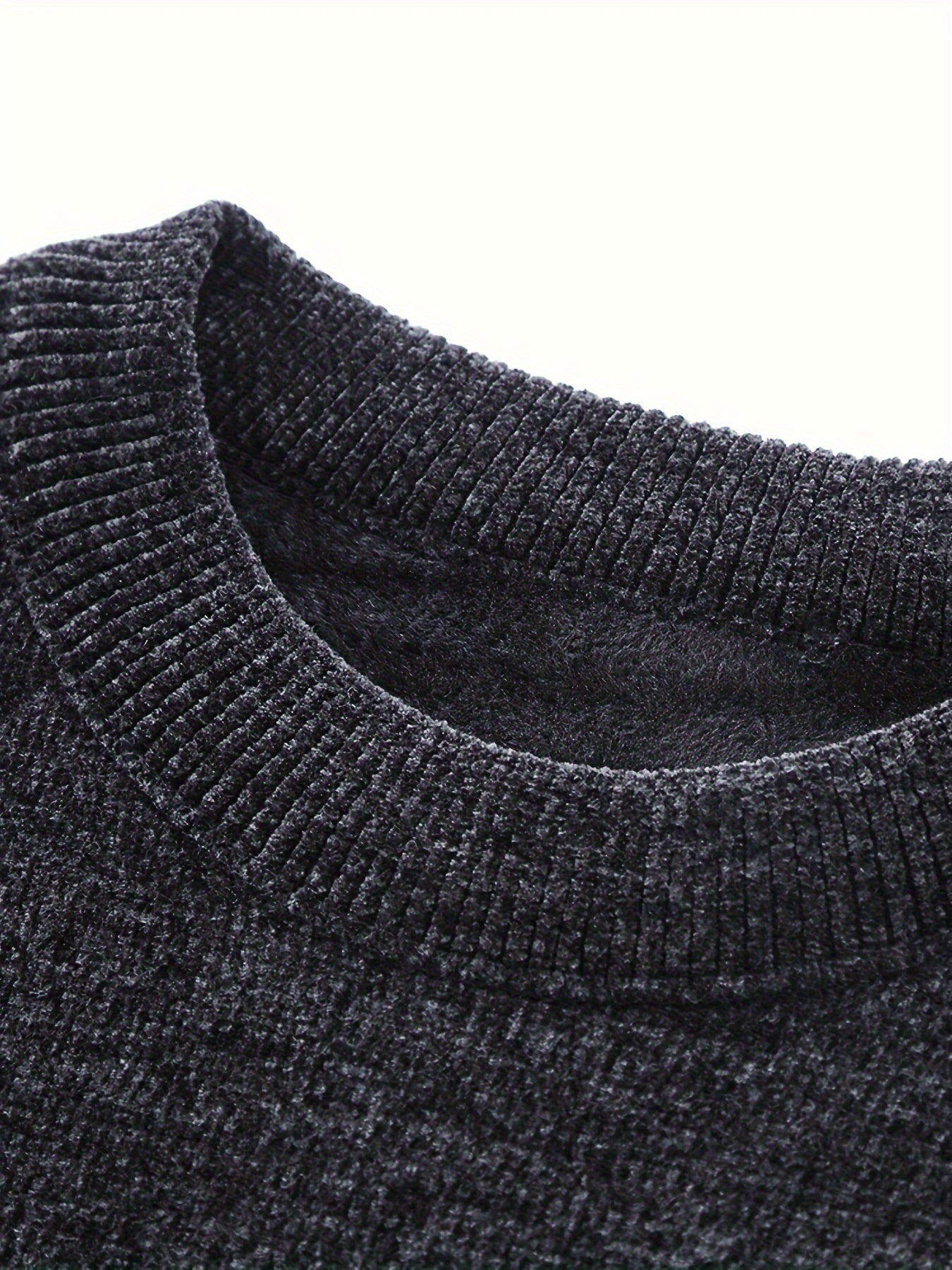 Temujin Men'S Winter Round Neck Sweater with Fleece, Knitted with Embroidered Stripes And Casual Letters for Warmth And a Fitted Style