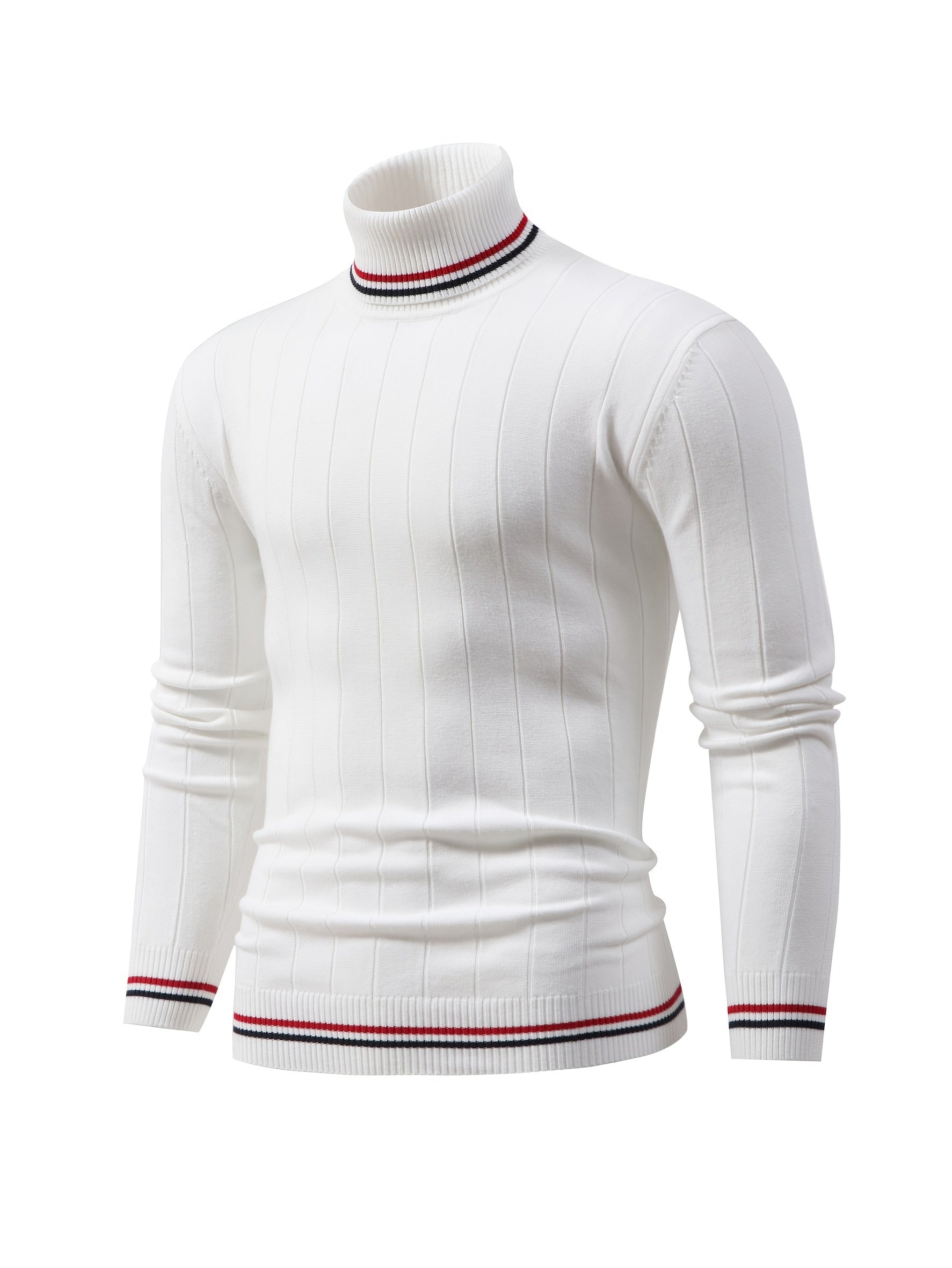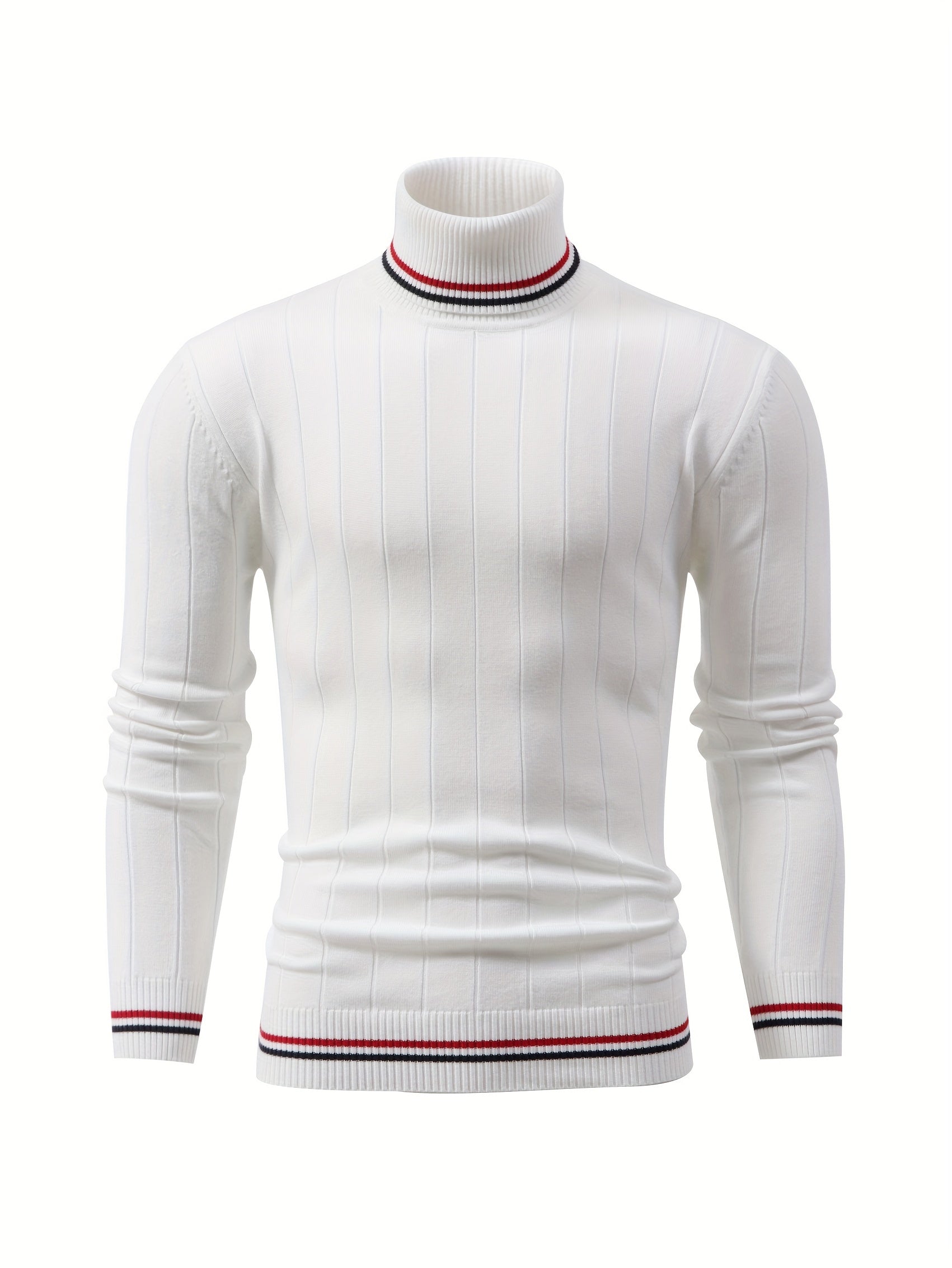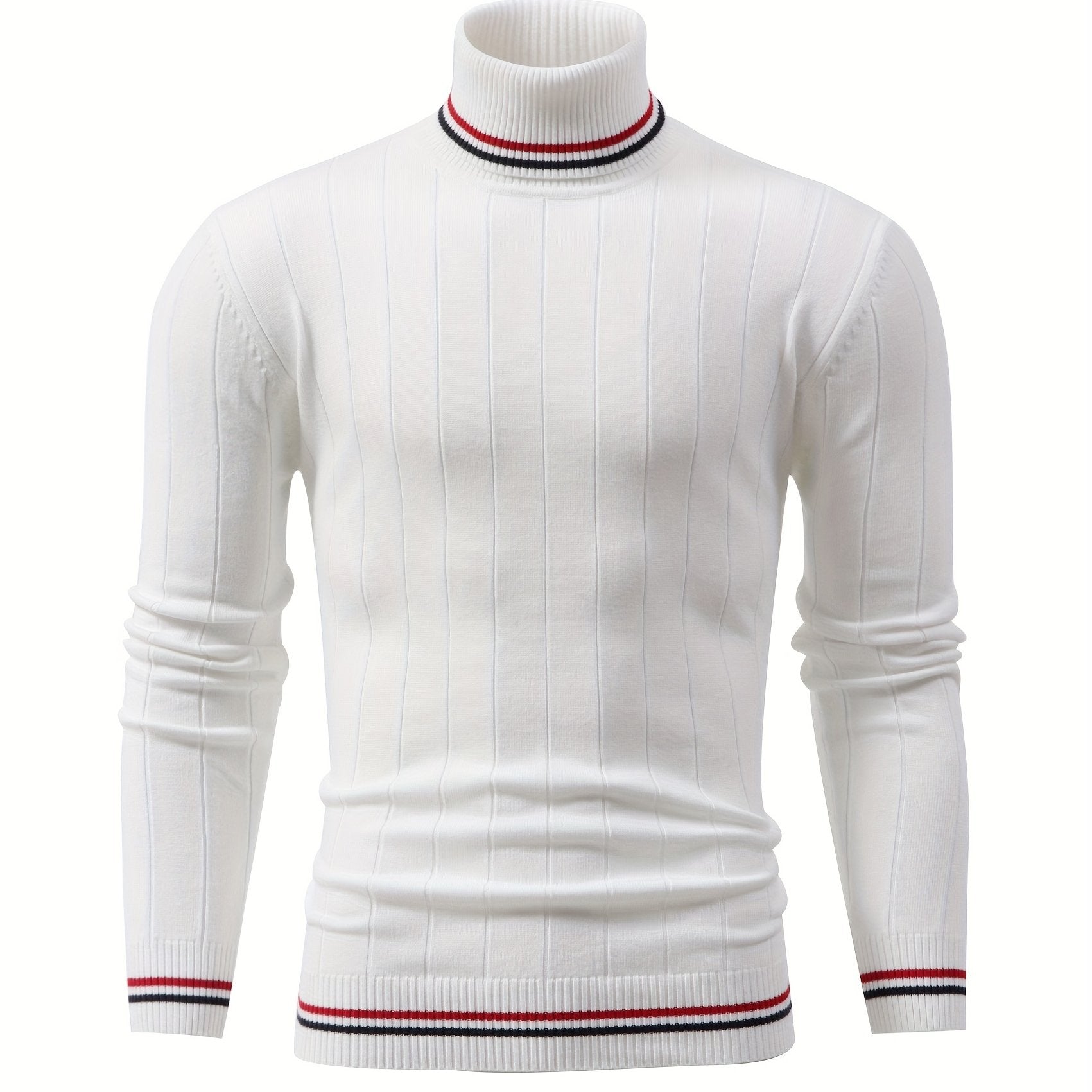Temujin OBM Men's College Style Fashion New Color Block Striped High Neck Knit Long Sleeve Pullover Sweater