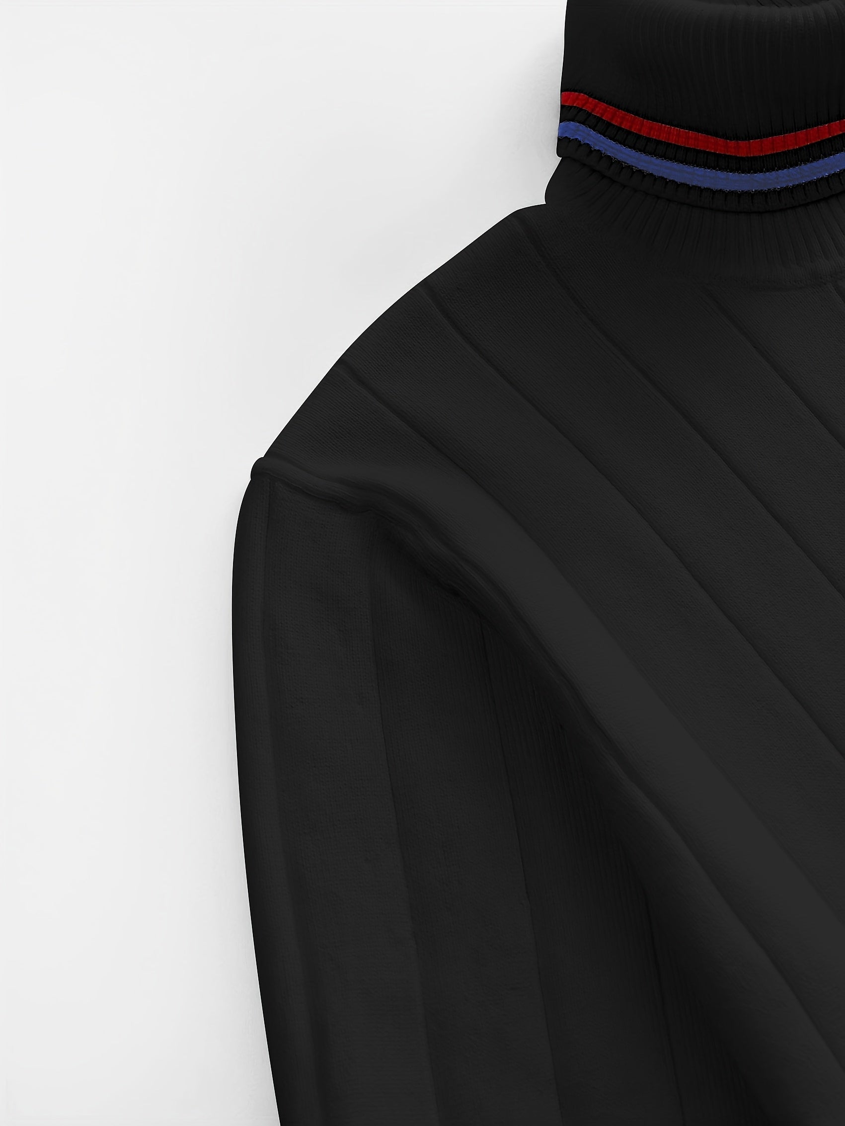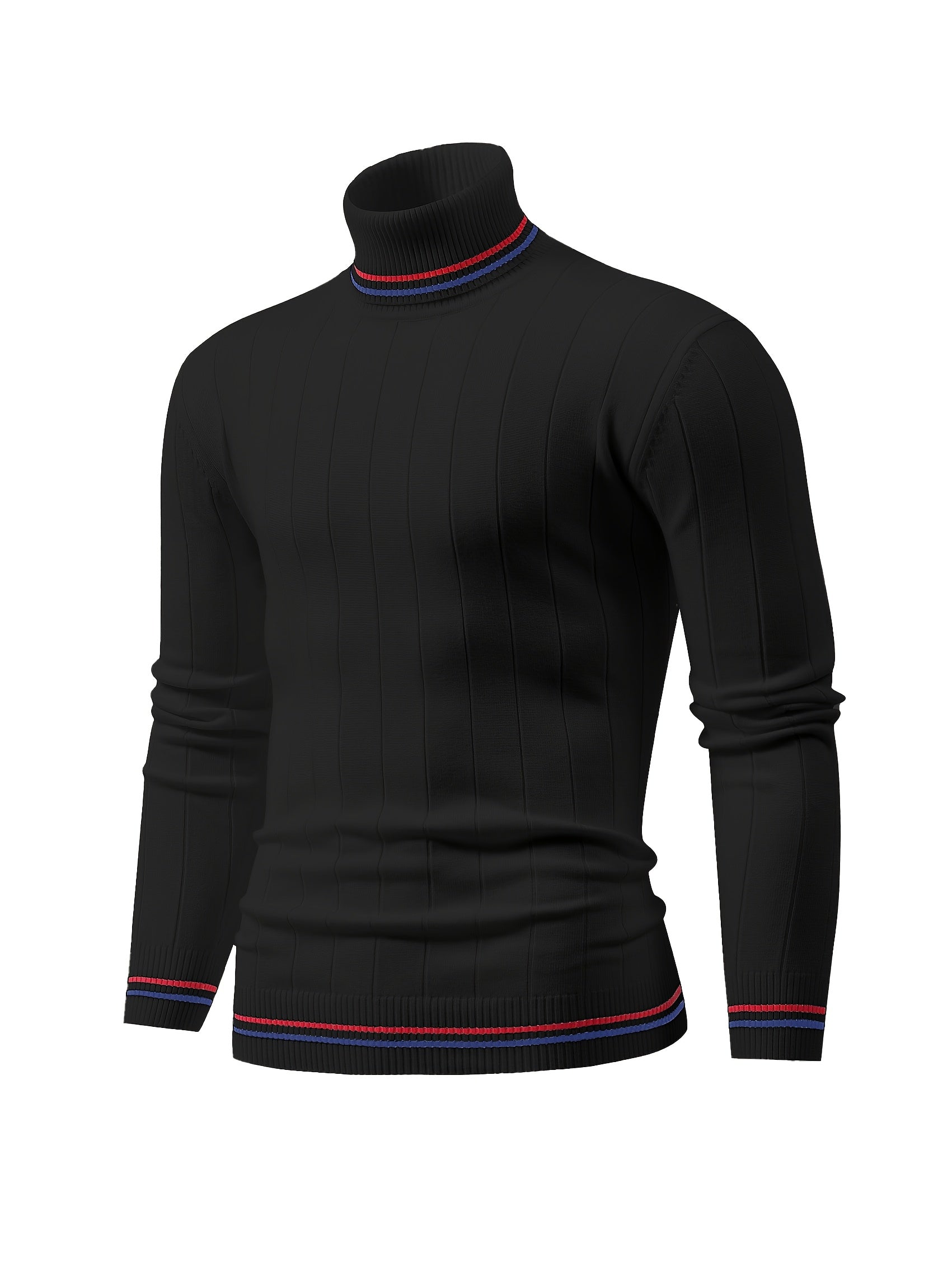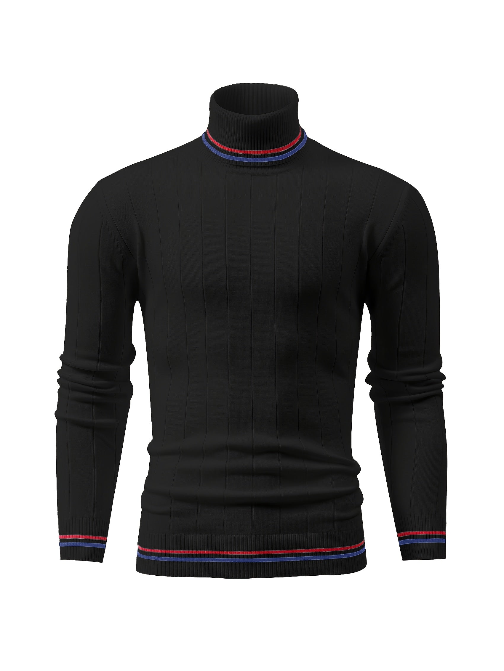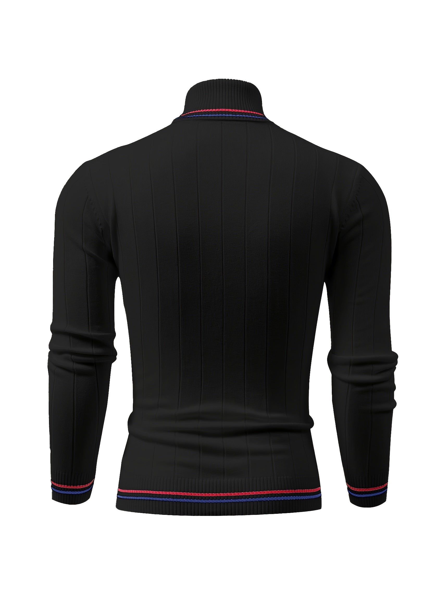 Temujin OBM Men's College Style Fashion New Color Block Striped High Neck Knit Long Sleeve Pullover Sweater