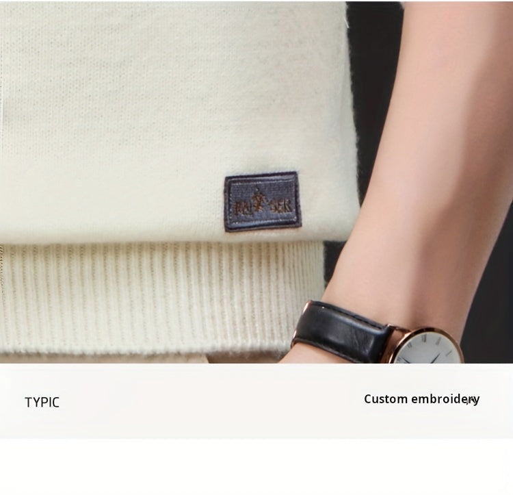 This Thick, Round-Neck Long-Sleeve Sweater for Men Features a Soft And Comfortable Design with Stylish Striped Edges, Perfect for Outdoor Gatherings And Everyday Wear, And Can Be Layered