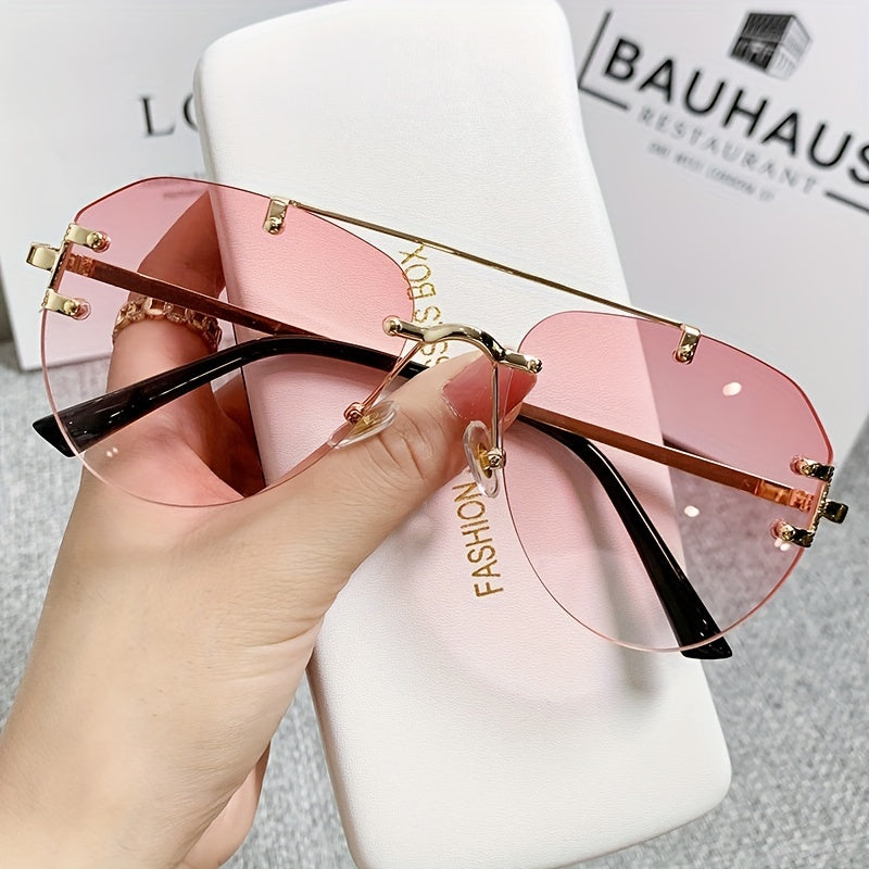 Unisex Classic Retro Double Bridge Glasses, Fashionable, No Frame, Metal Material, S Style, Ordinary Decorative for Men And Women, Casual Use