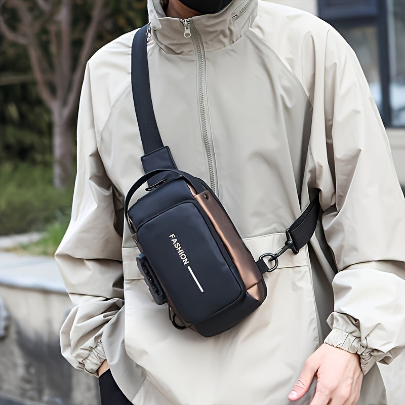 UNIXINU Men's Durable Oxford Fabric Anti-Theft Chest Bag - Sleek Casual Crossbody Sling Bag with Phone Pocket, Zipper Closure & Adjustable Strap for Motorcycle Riding, Commuting, Outdoor Sports, Bag for Bike, Travel Essential
