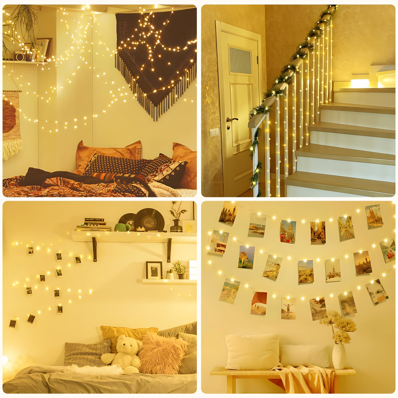 , USB LED string light, 100/50/30/10 LEDs, USB-Powered Christmas Tree & Fairy Lights, warm white, Ideal for Christmas, Halloween, Thanksgiving, wall decorations, autumn decorations, bedroom, living room, wedding, party, birth