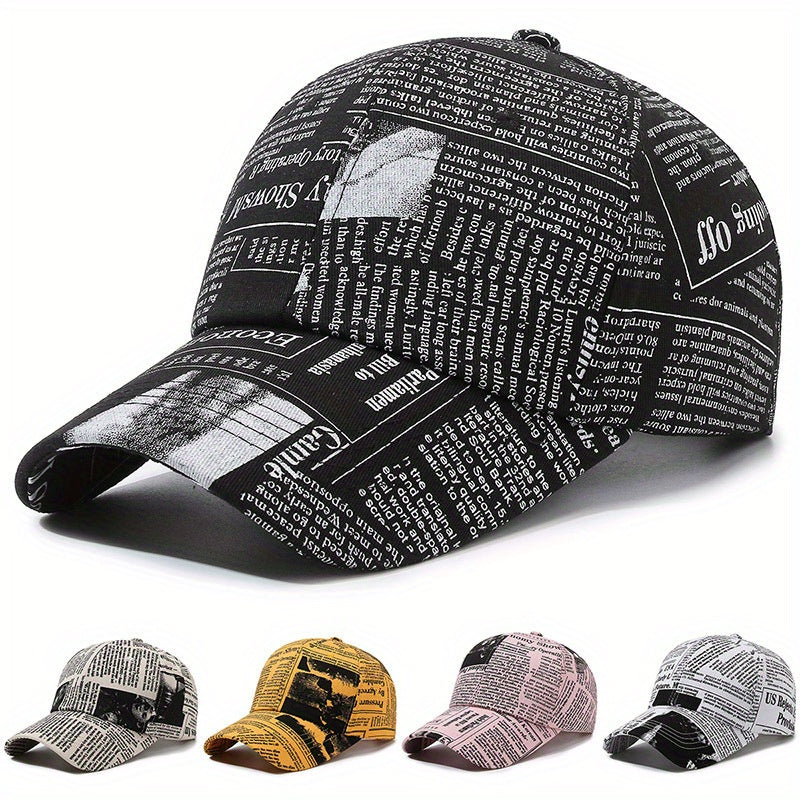 Vintage Printed Baseball Cap Casual Unisex Newspaper Cap Lightweight Adjustable Dad Hats For Women Men