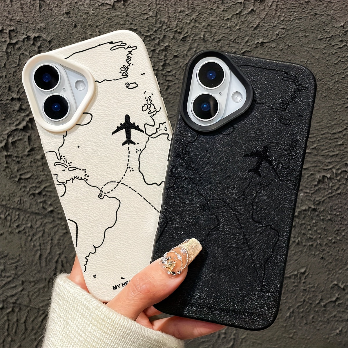 Voyage Aircraft Suitable for iPhone 16/16 Pro/16 PLUS/16 Pro Max Phone Case 15/14/13/12/11, Creative Fashion Shockproof Drop-proof Wear-resistant Anti-fingerprint Artificial Faux Leather Textured Rubber TPU Soft Case Protecti