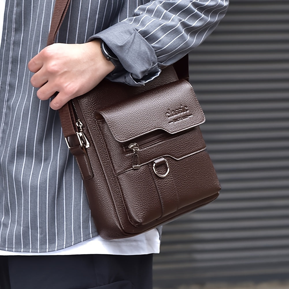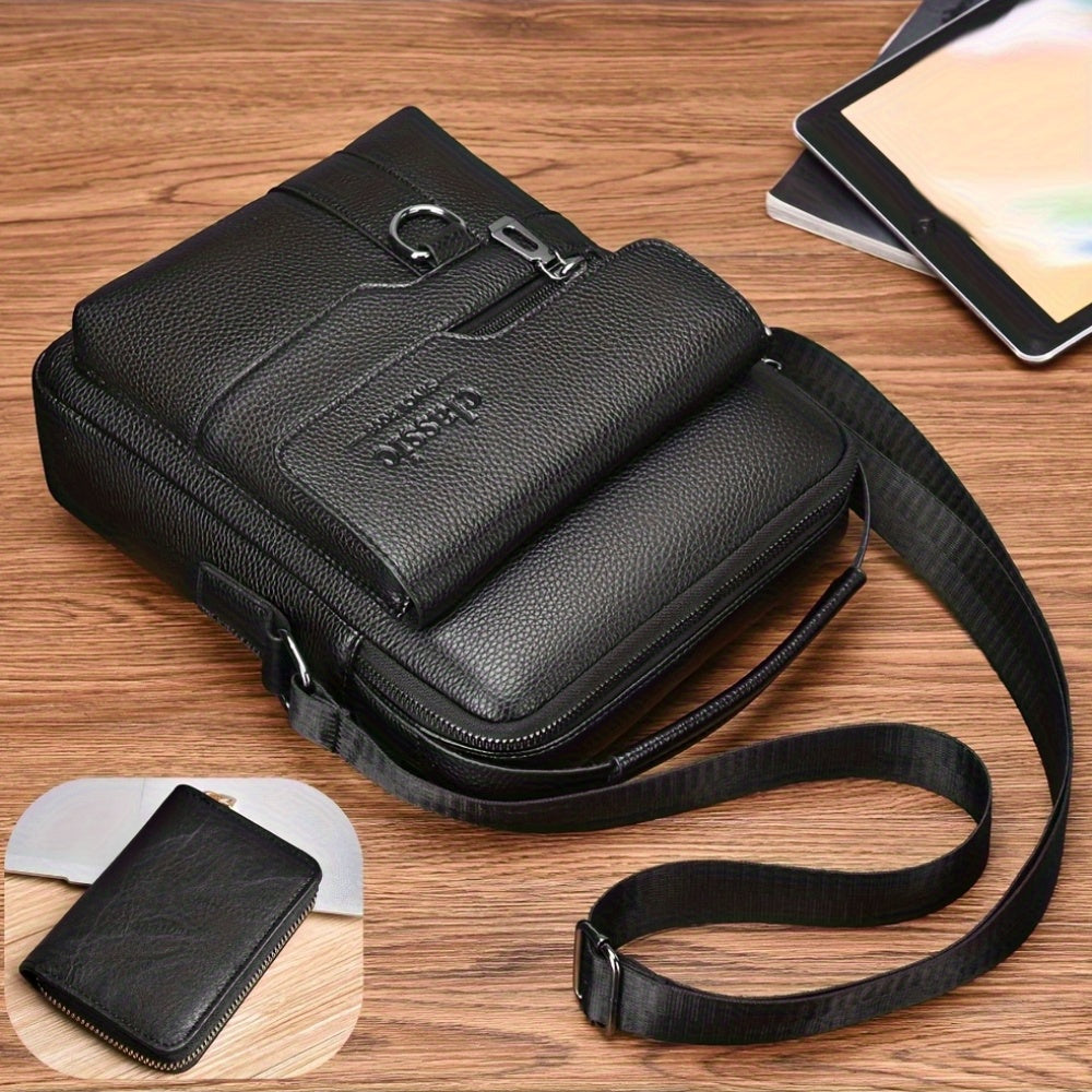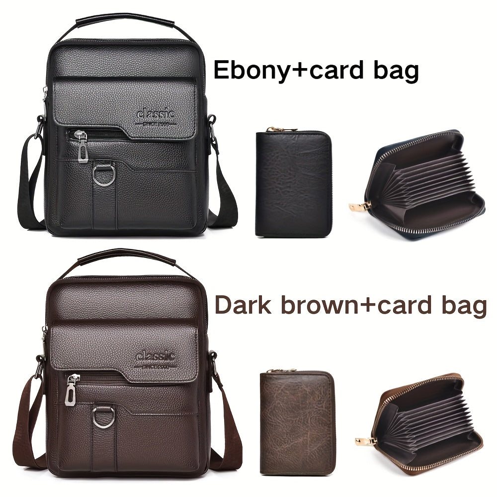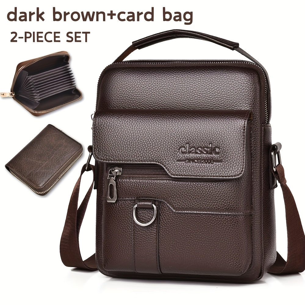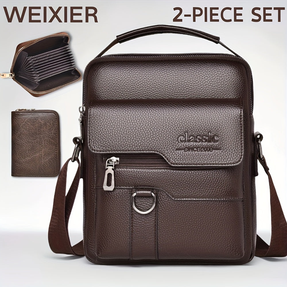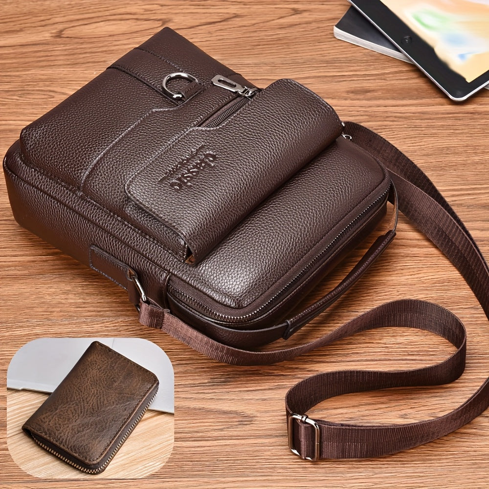 WEIXIER Men'S Set Shoulder Bag, Unisex Waist Postman Bag, Crossbody Chest Bag, Handbag, PU Fabric Multi-pocket, with Card Holder Wallet, Adjustable Detachable Shoulder Strap, Casual Commuting Bag Retro Business Texture Men'S