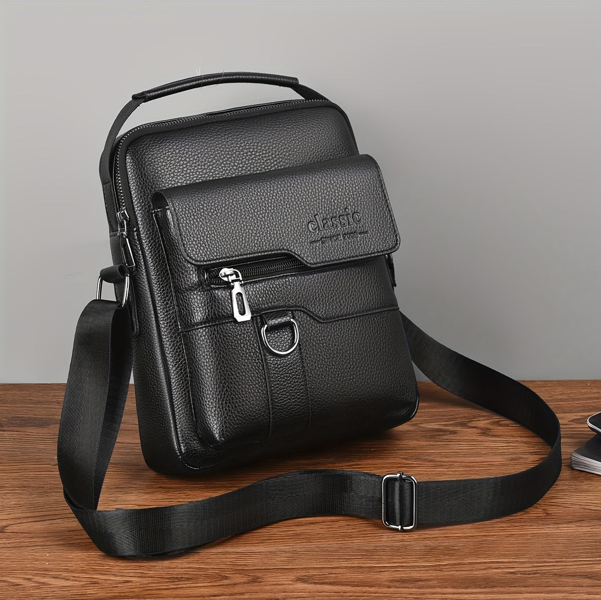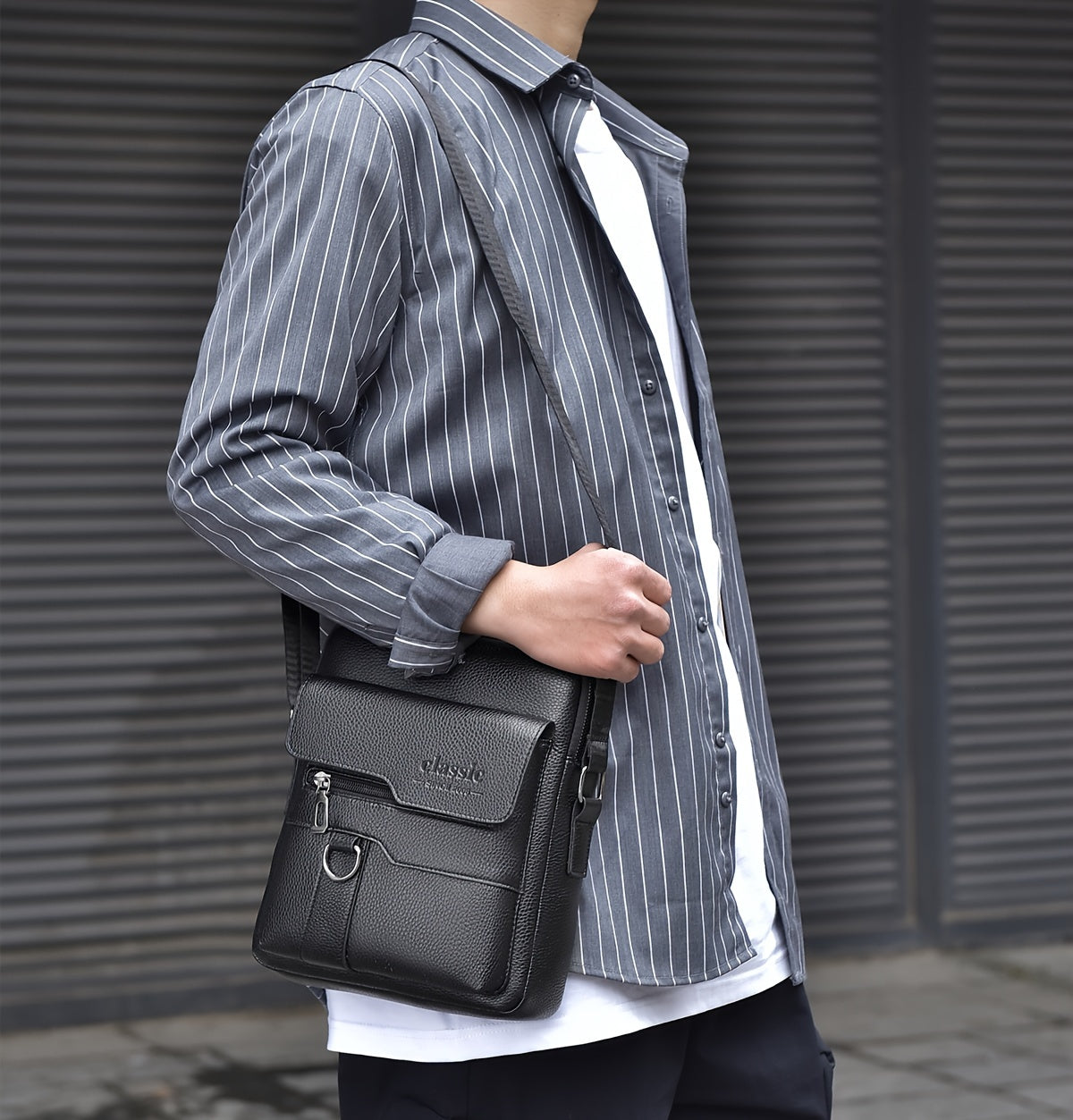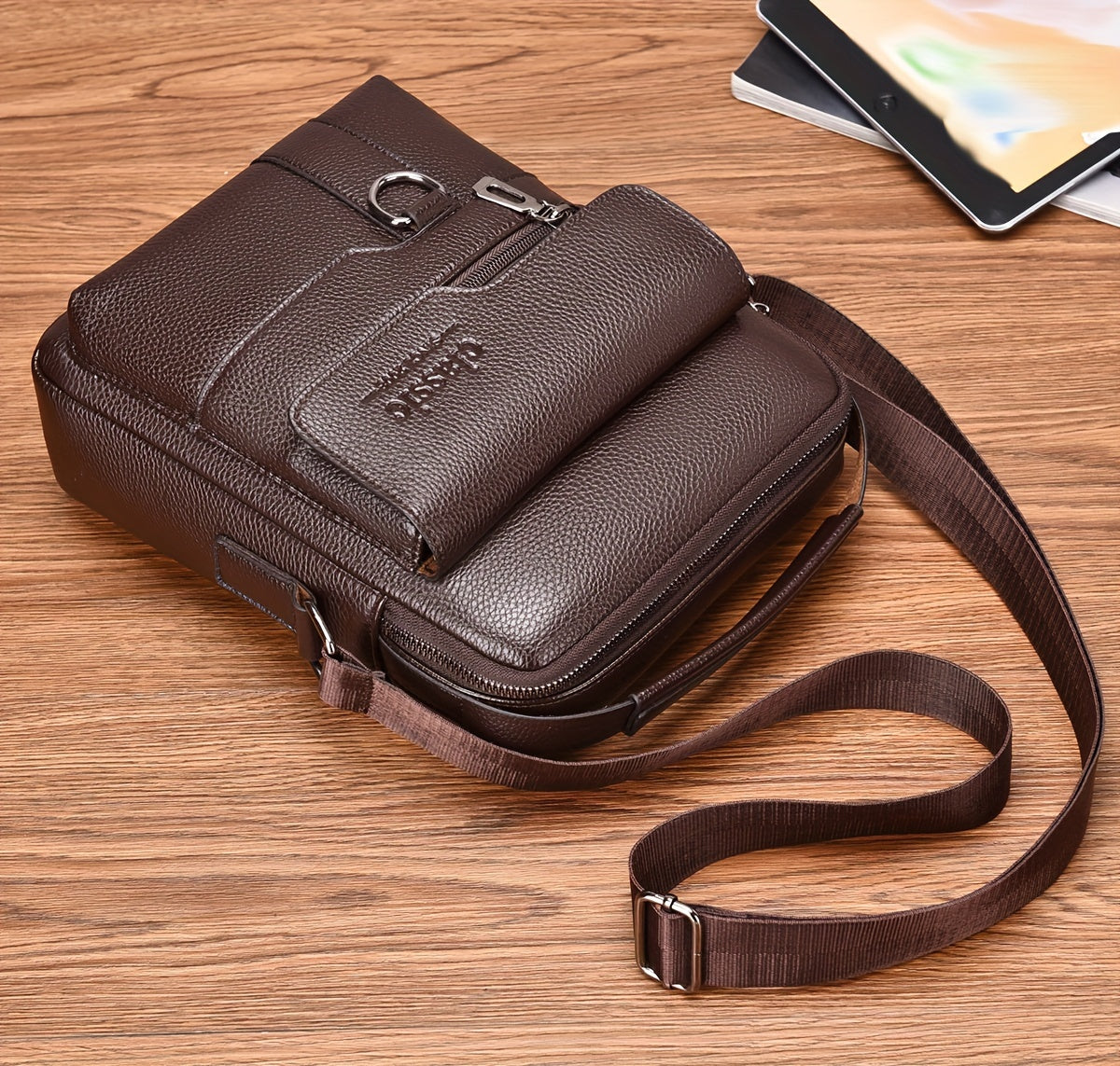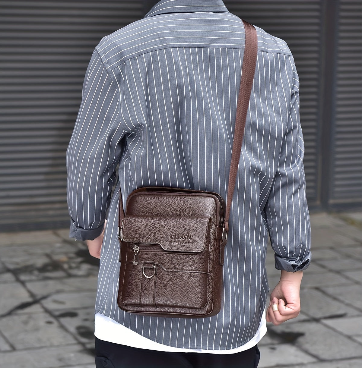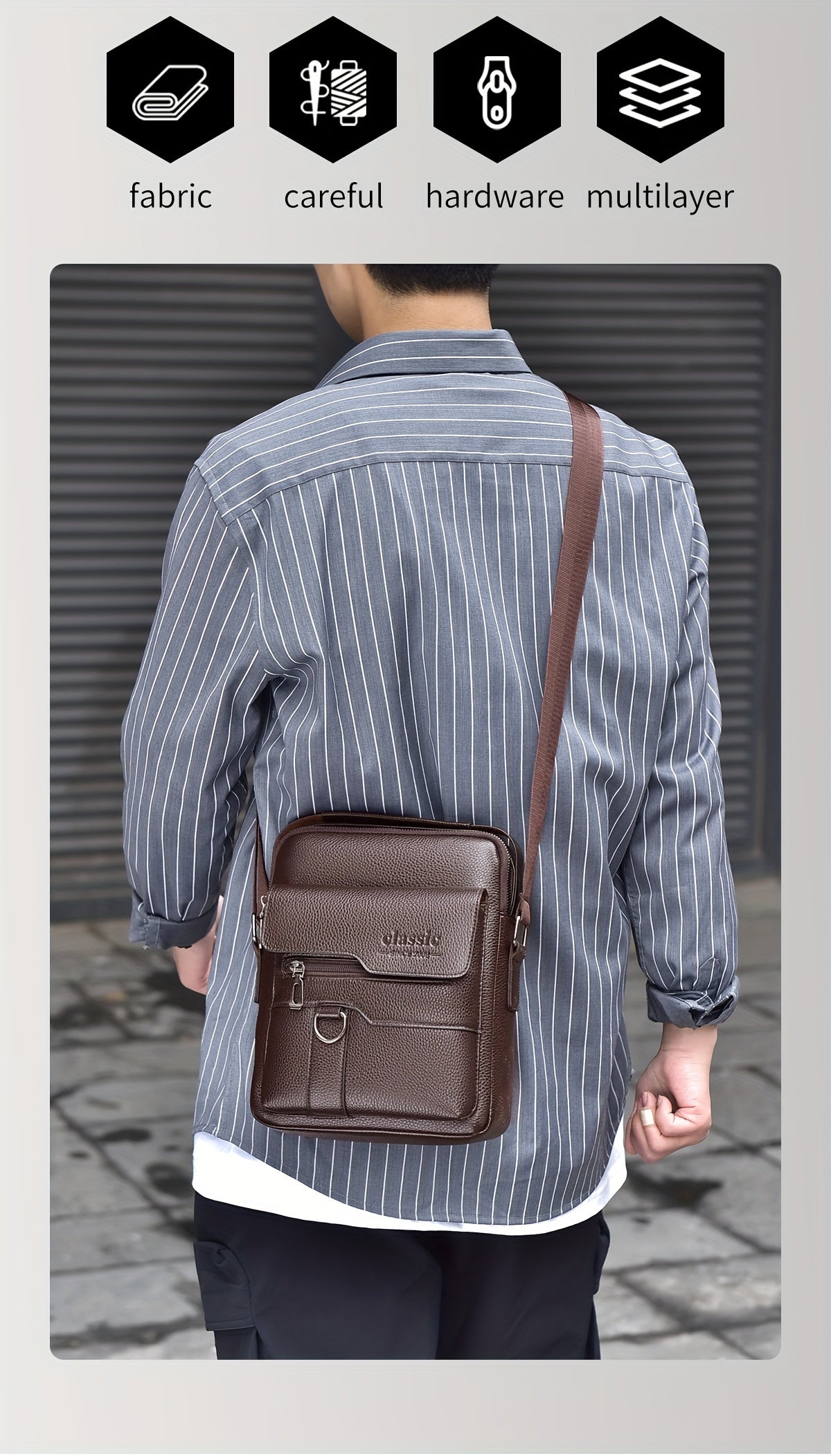 WEIXIER Men'S Set Shoulder Bag, Unisex Waist Postman Bag, Crossbody Chest Bag, Handbag, PU Fabric Multi-pocket, with Card Holder Wallet, Adjustable Detachable Shoulder Strap, Casual Commuting Bag Retro Business Texture Men'S