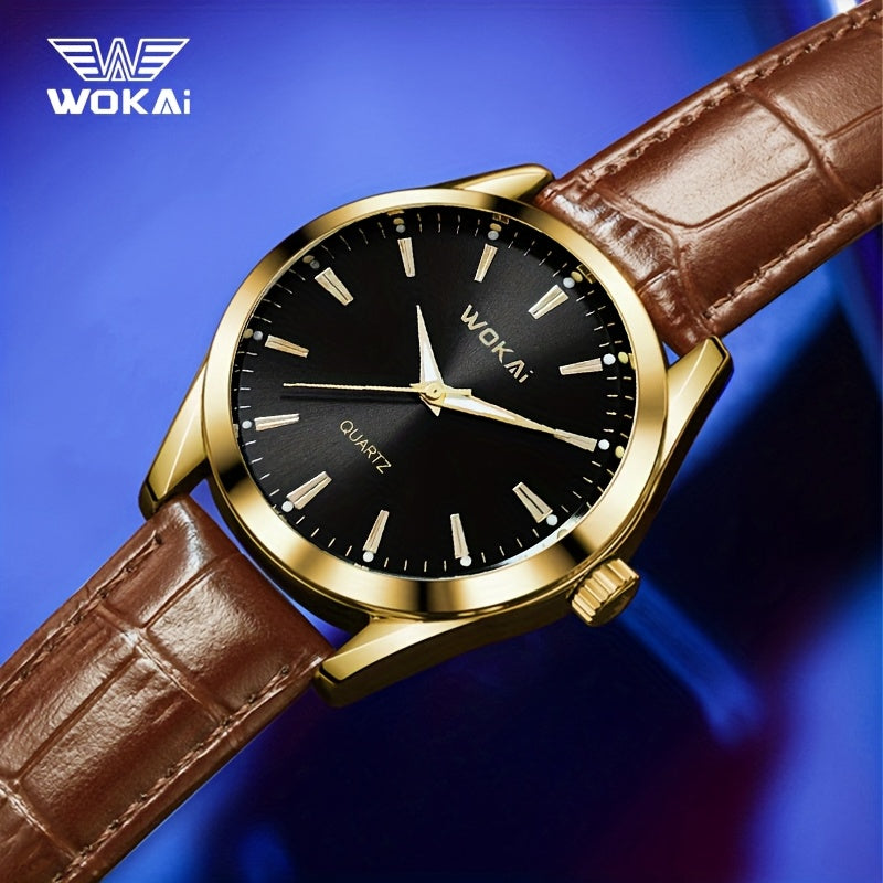 WOKAI Men'S Luxury Sports Watch - Waterproof, Quartz Movement, Round Dial with Roman Numerals & LED Display, Faux Leather Strap, Perfect for Casual or Active Lifestyles, Sporty Timepiece | Stylish Timepiece | Durable Watch