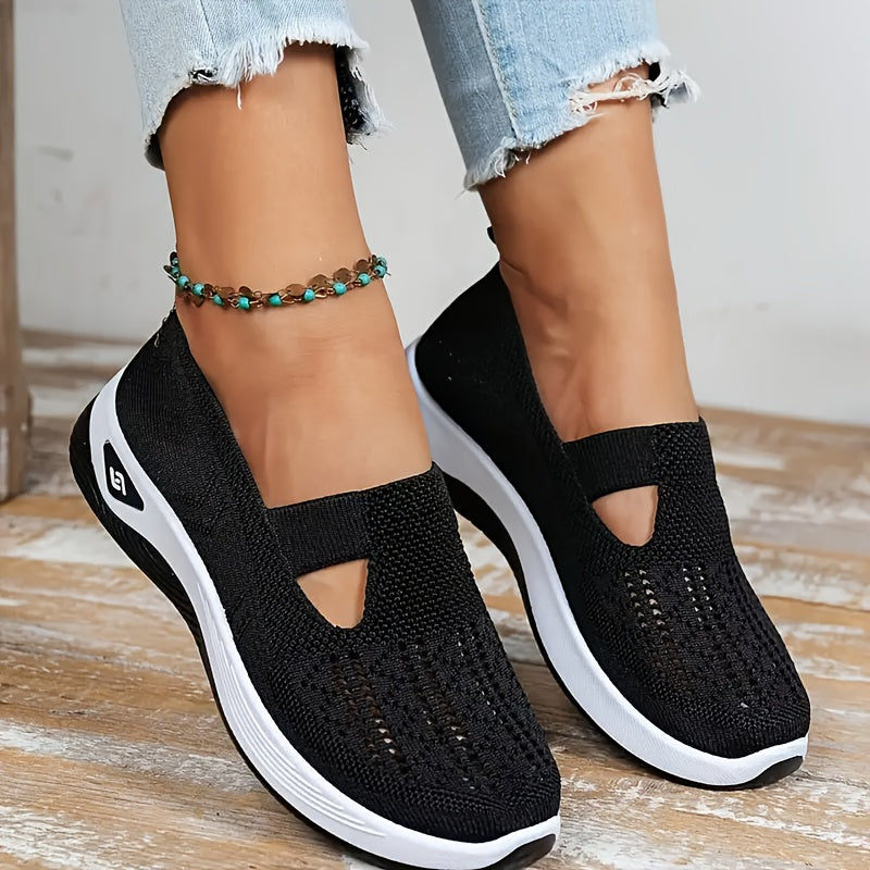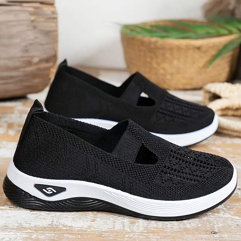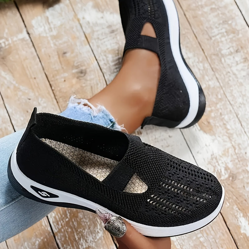 Women'S Breathable Knit Ballet Flats, Comfortable Fabric Walking Shoes, Round Toe, Rubber Sole, with Hand Washable for All-Season Wear