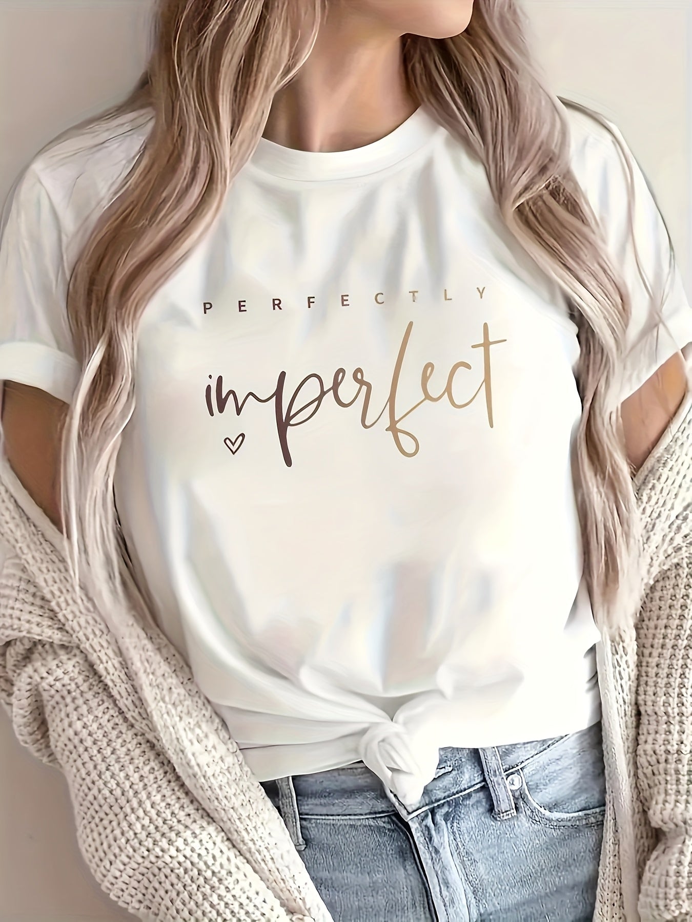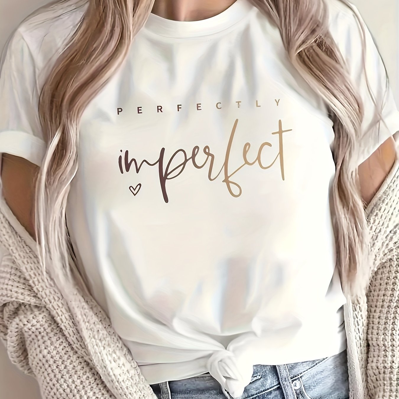 Women's Casual Letter Print T-Shirt - "Perfectly Imperfect" Design, Crew Neck, Short Sleeve, Soft Polyester Fabric, Versatile Everyday Top