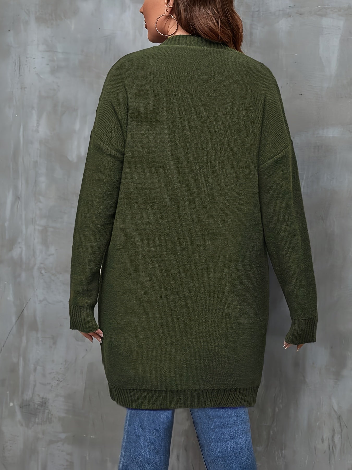 Women's Casual Long Knit Cardigan - Cozy Drop Shoulder, Thick Cable Knit Sweater with Buttons, V-Neck, Olive Green, Fall/Winter Fashion Outerwear, Cozy Autumn Apparel | Buttonfront Cardigan | Stylish Casualwear