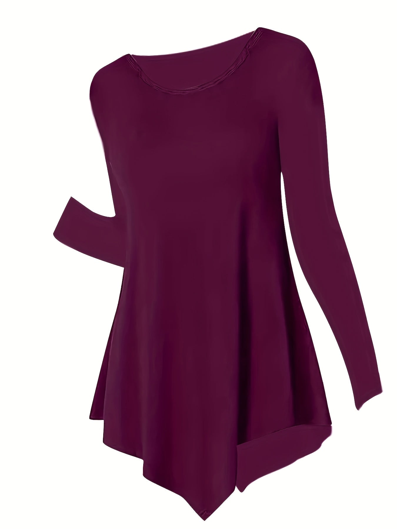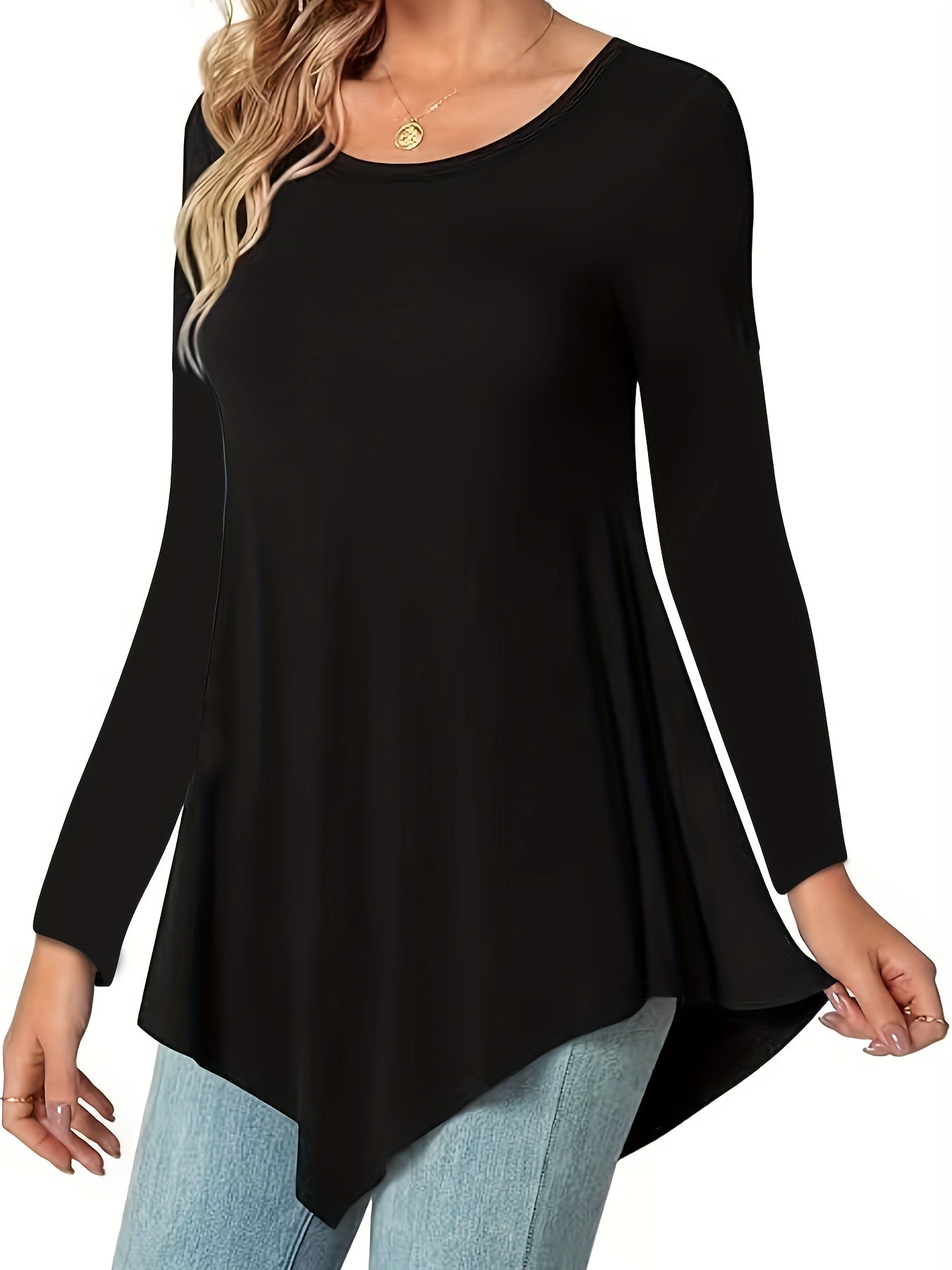Women's Casual Long Sleeve Tunic Top, Polyester 95% Spandex 5% Knit Fabric, Solid Color Crew Neck Blouse for Spring/Summer/Fall, Spring Summer Blouse|Tunic Style|Solid Color Top