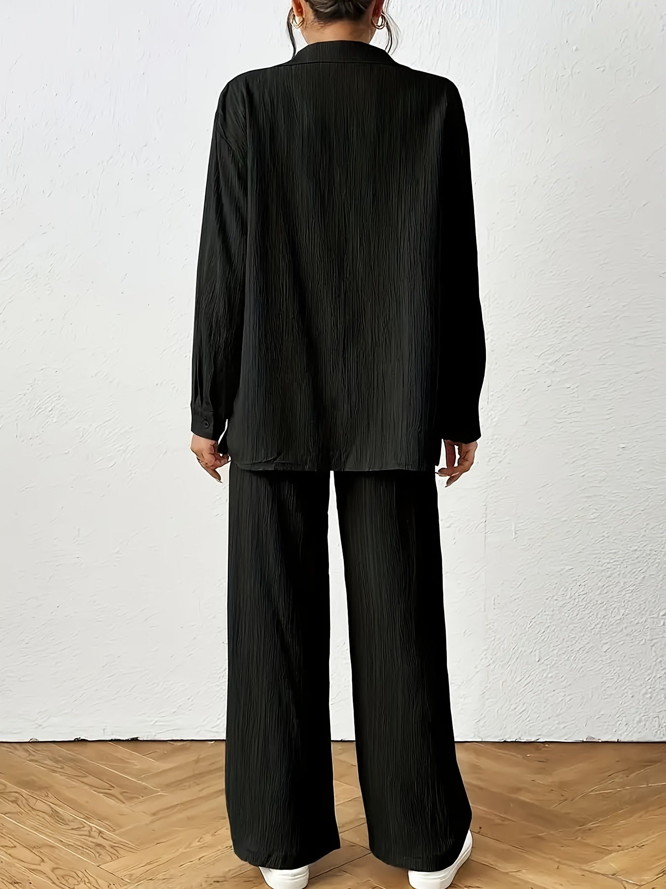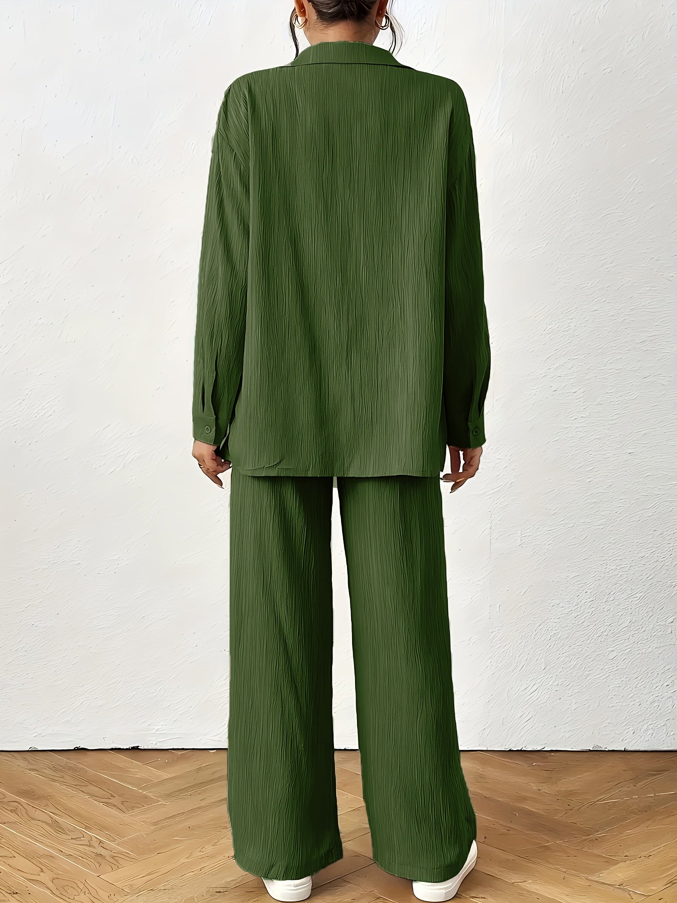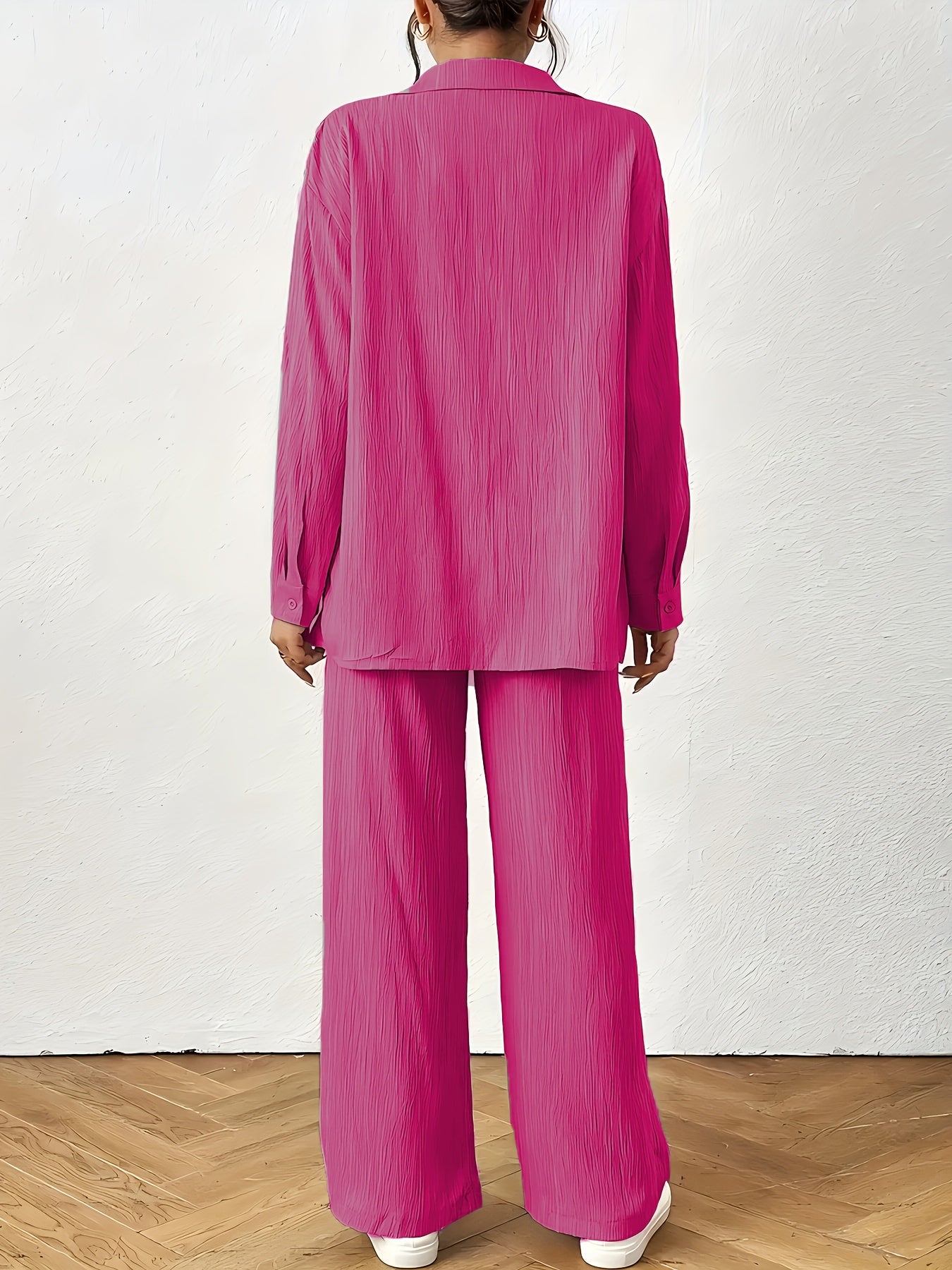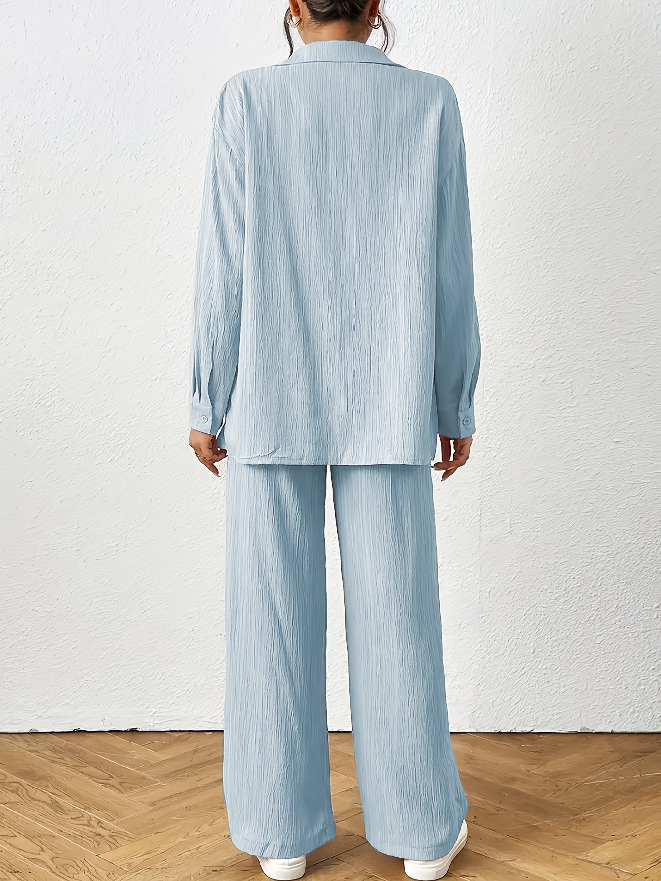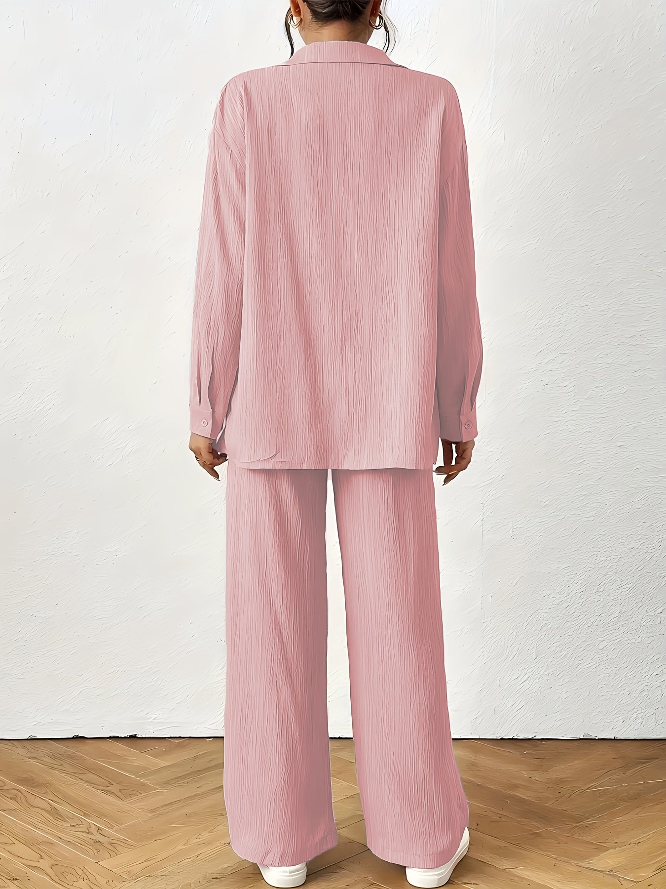 Women'S Casual Solid Color Long Sleeve Shirt + Long Pants 2pcs Set for Spring And Autumn.