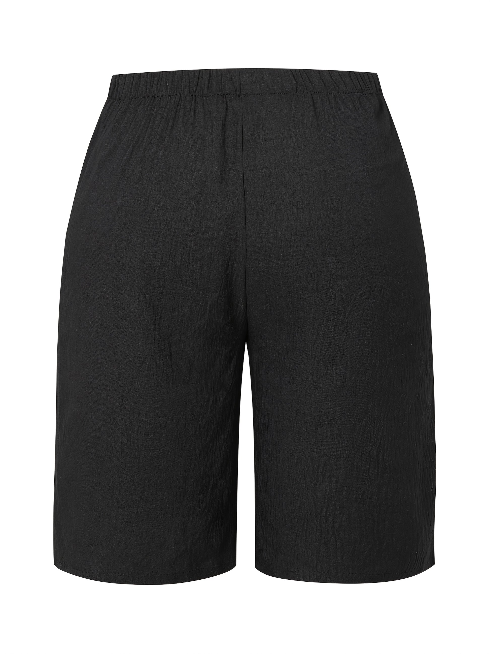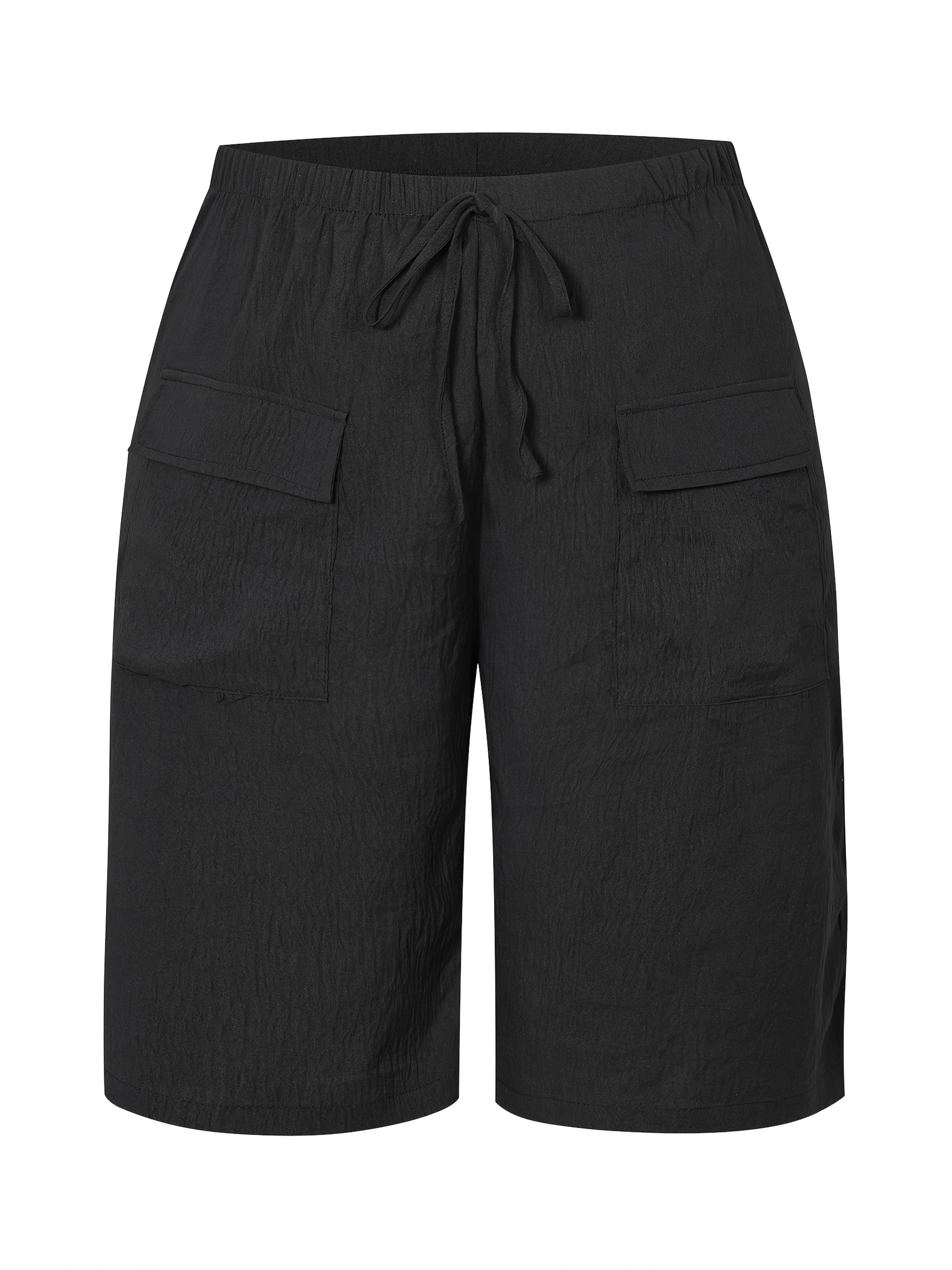 Women'S Casual Solid Color Shorts with Pockets, 100% Polyester, Woven Fabric, 126g/m², All-Season Comfort, Versatile Style