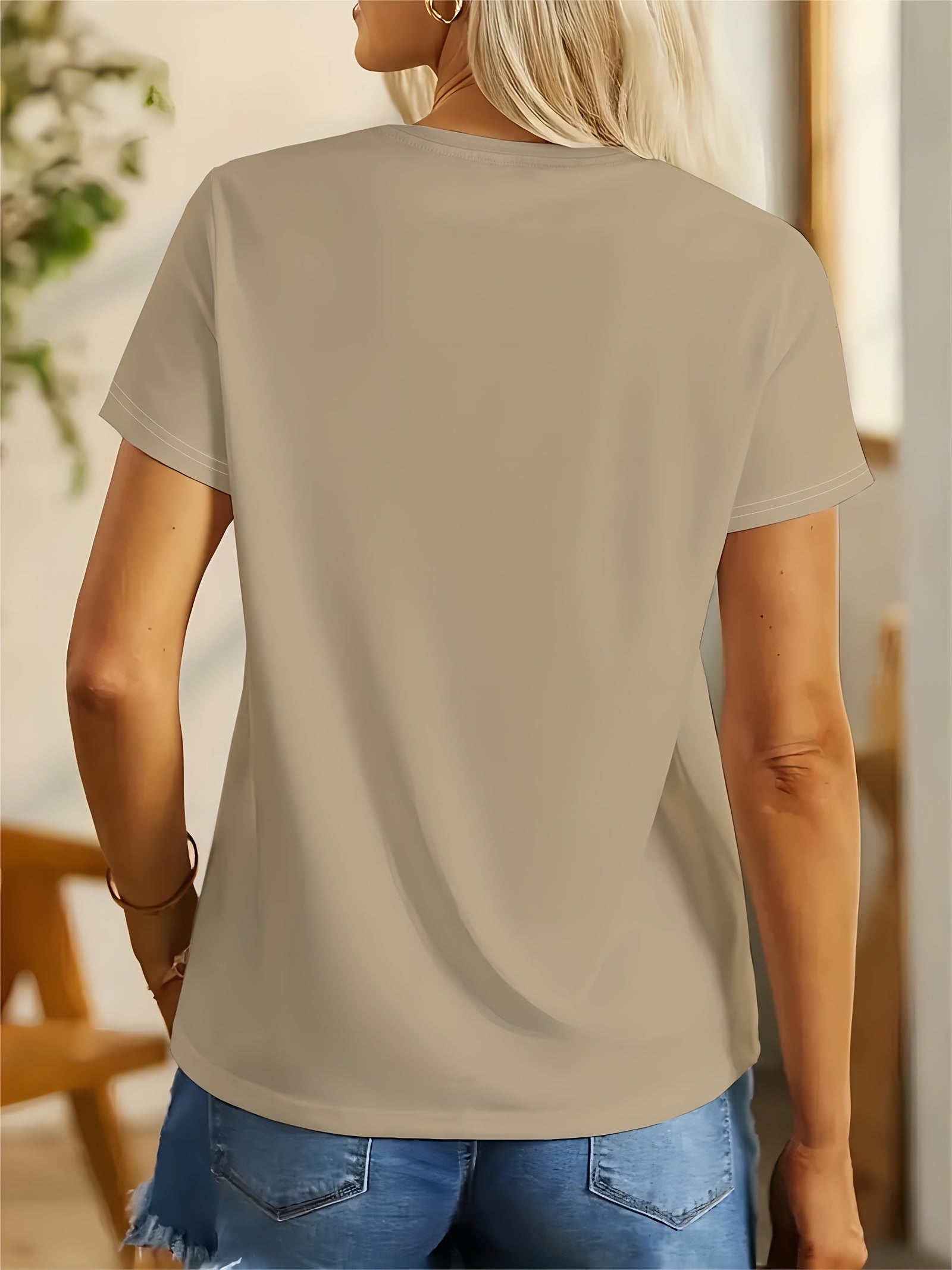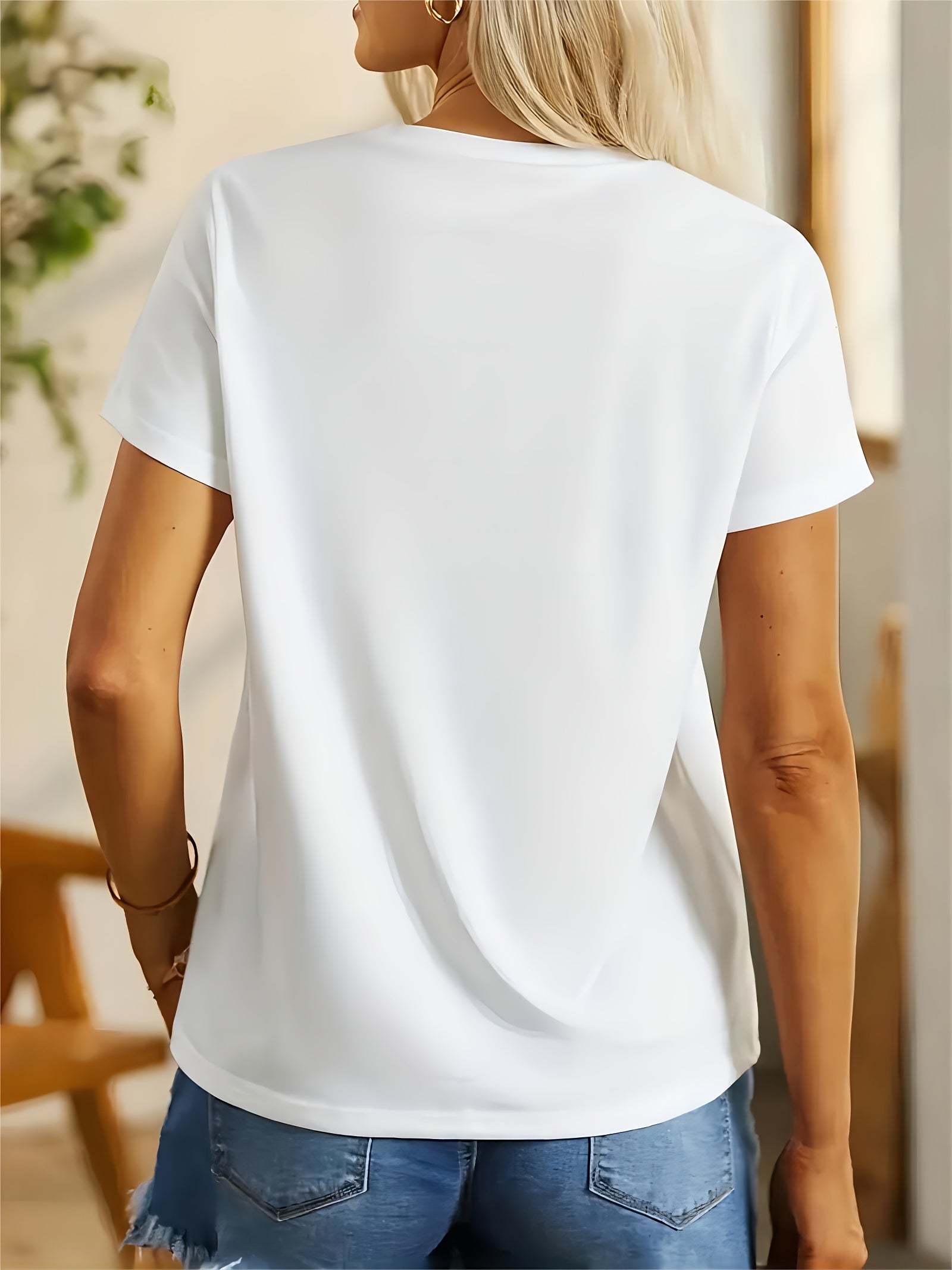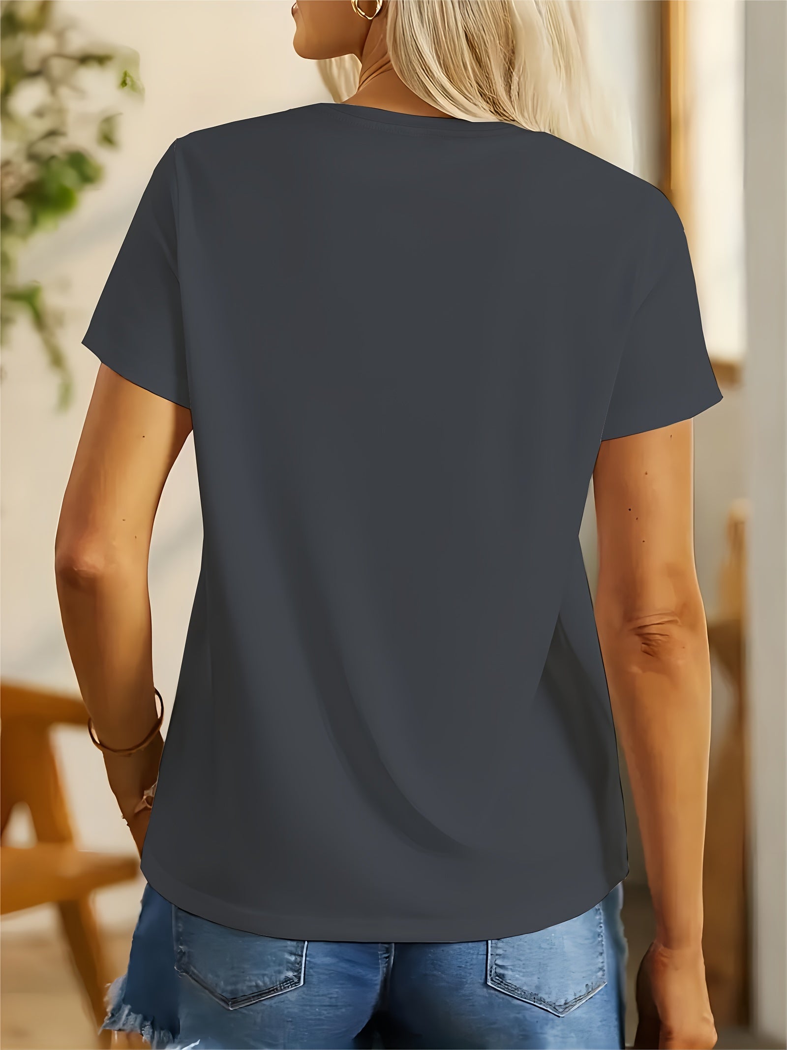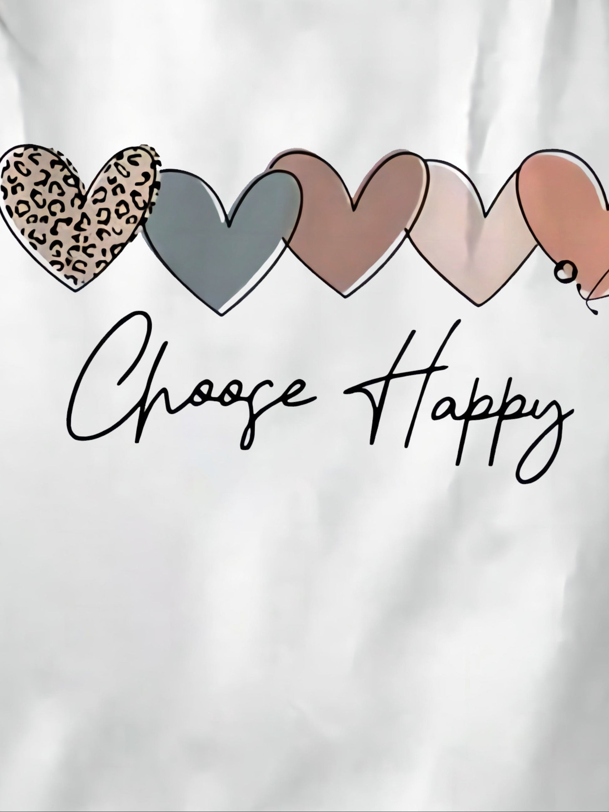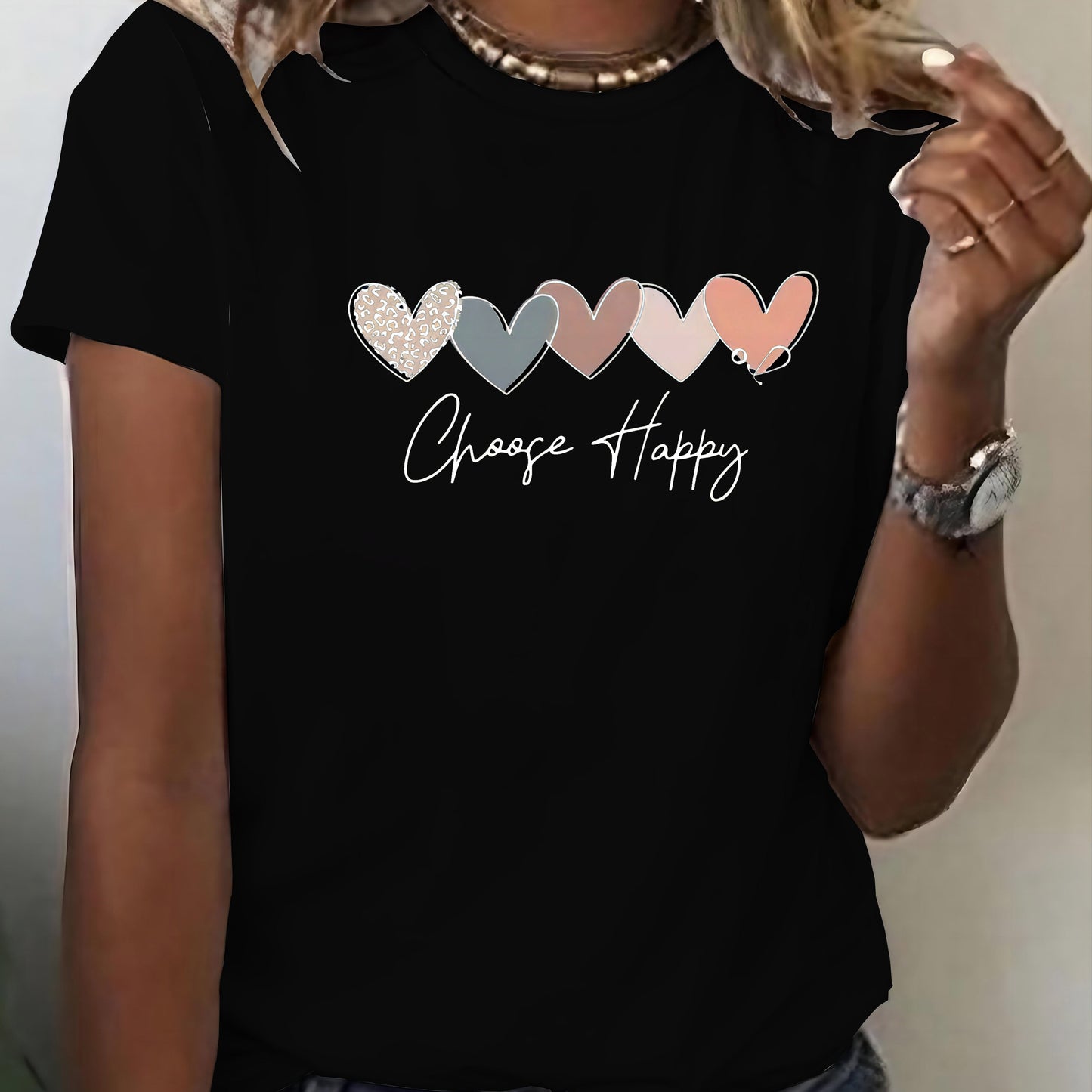 Women's Casual Sport T-Shirt, Round Neck, Heart And Happy Print, Short Sleeve, Soft Knit
