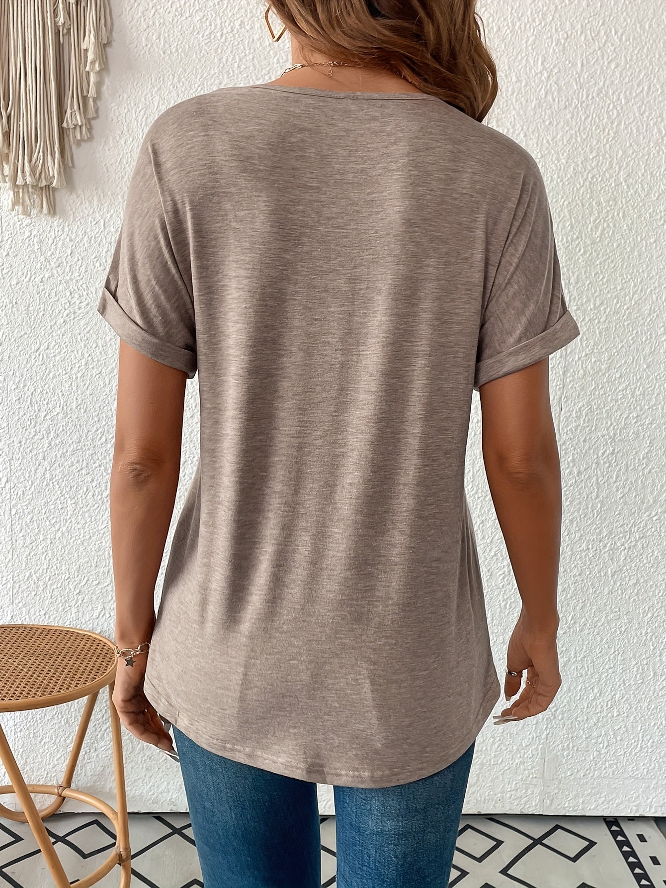 Women's Casual V-Neck Batwing Sleeve T-Shirt - Soft Breathable Top, Machine Washable, Versatile Spring Summer Fall Wardrobe Essential