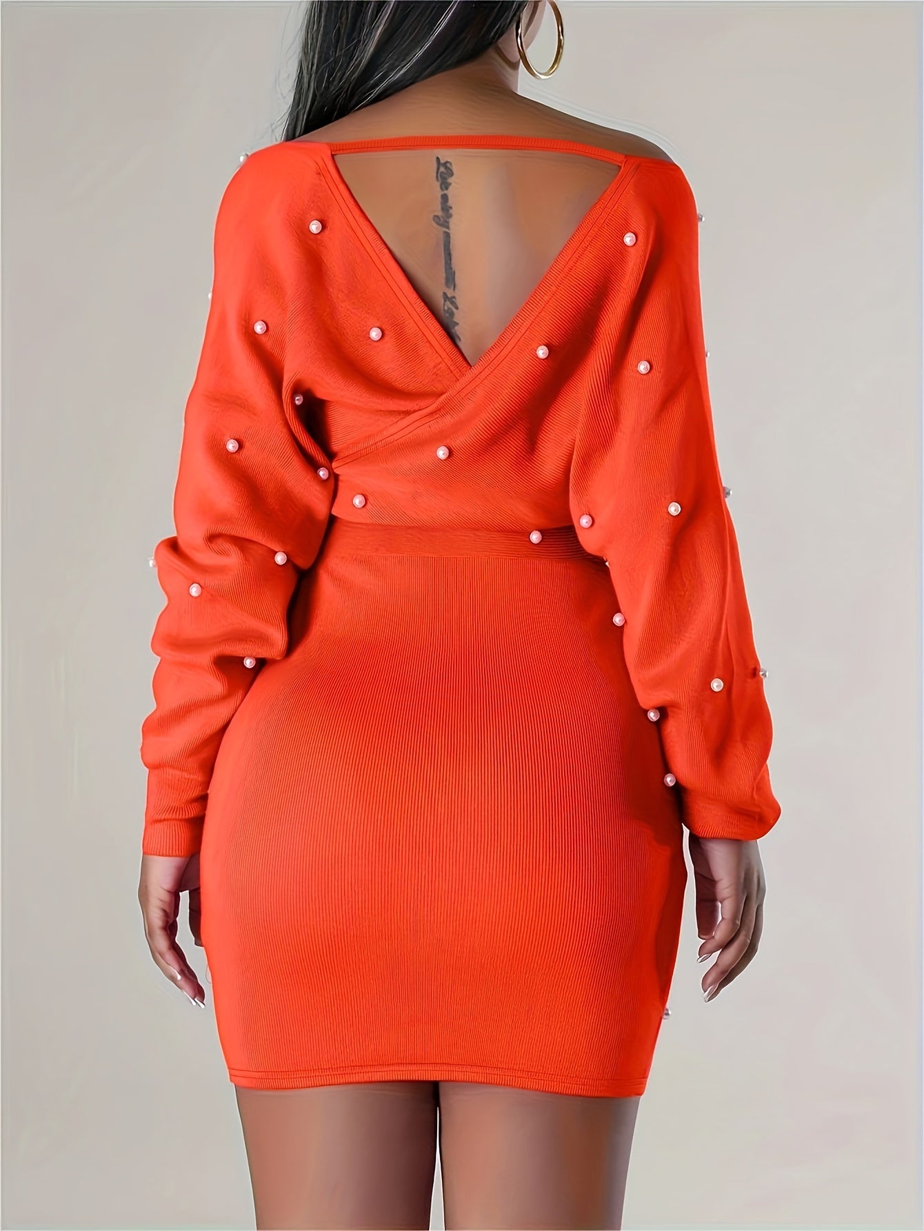 Women'S Clothing: Off-Shoulder Dress with Long Sleeves And Beaded Bodycon Style