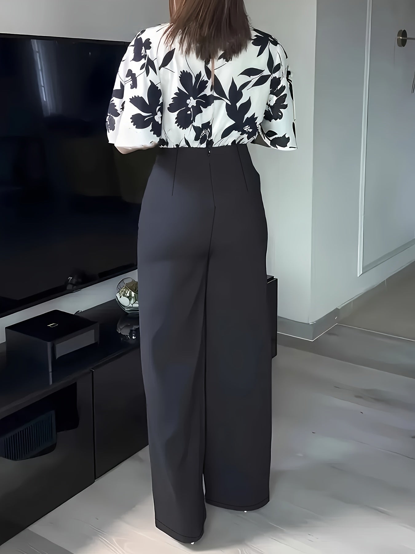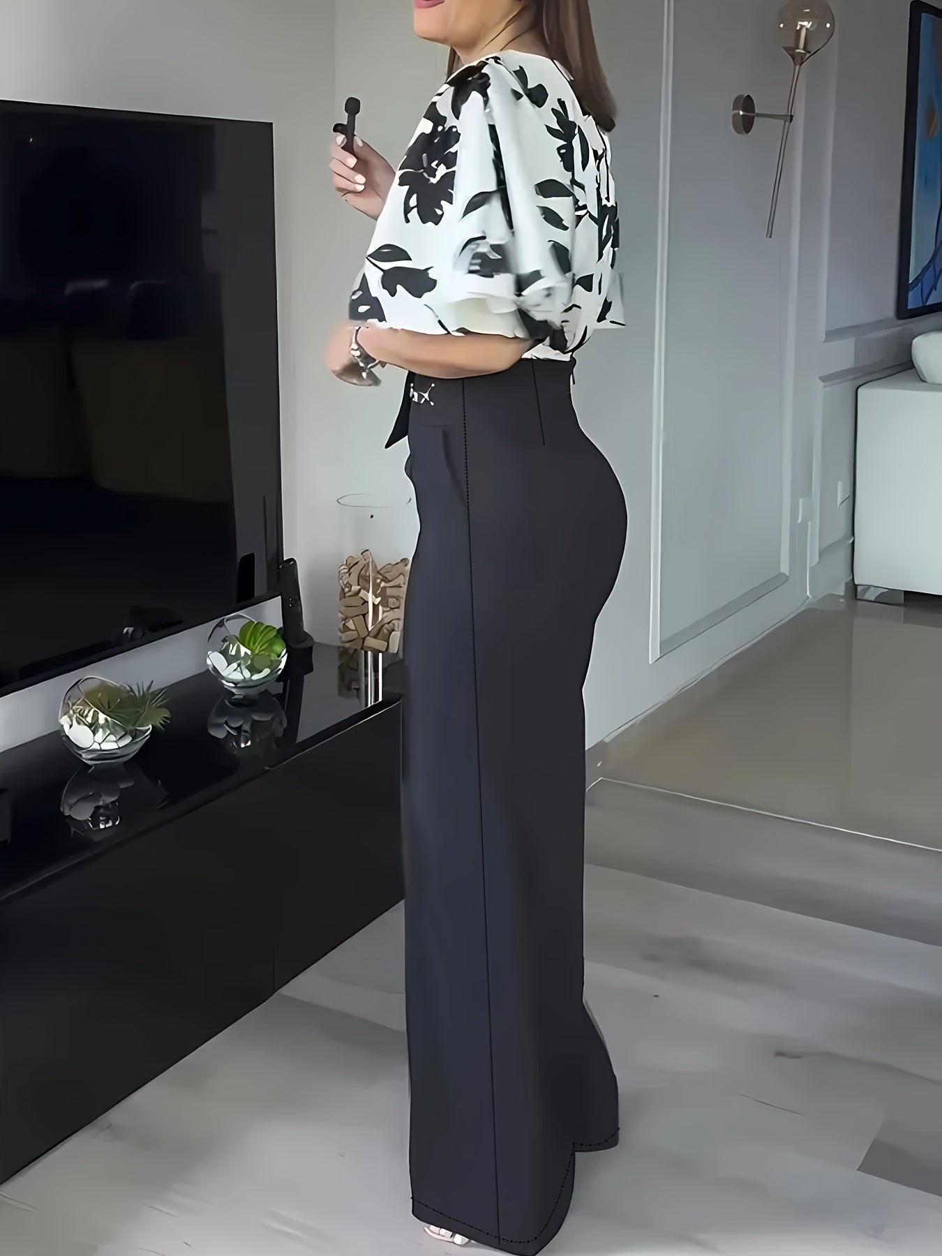 Women's Elegant Printed Short Sleeve Round Neck Shirt and Long Pants Set