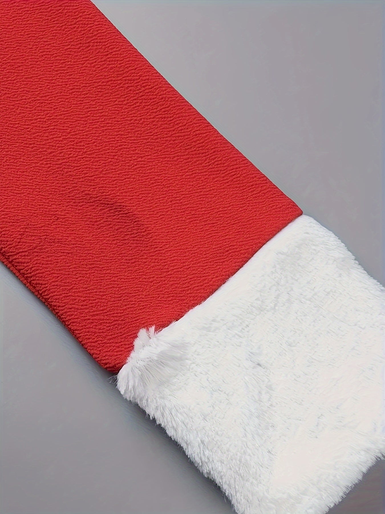 Women's Elegant Red & White Trim A-Line Dress - Sleeve Round Neck Flared Skirt, Machine Washable Autumn Casual & Holiday Party Wear, Nontransparent Fabric