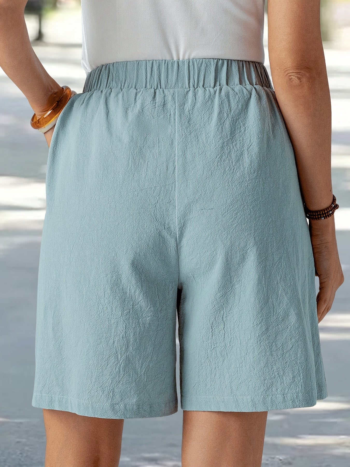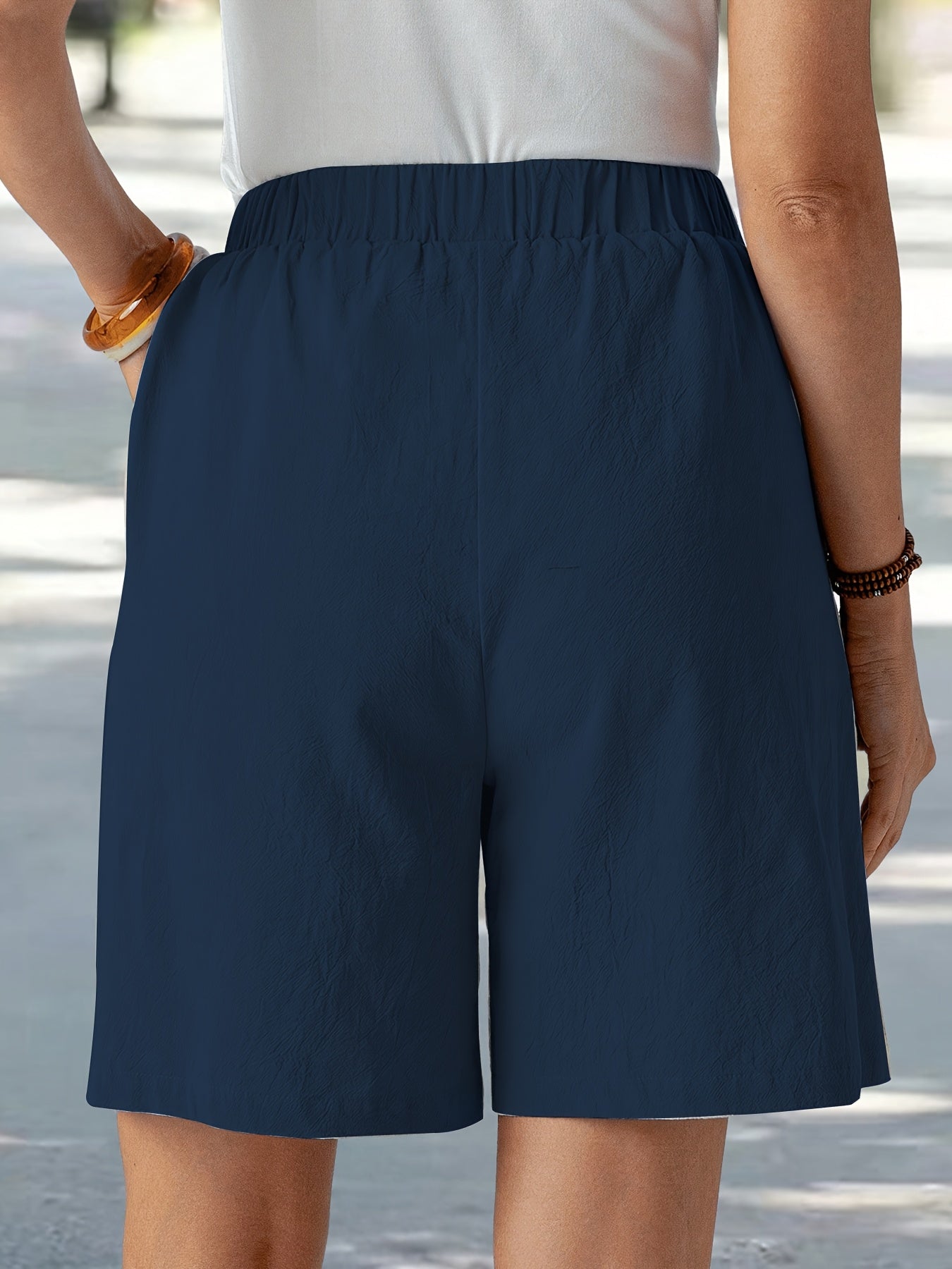 Women'S Elegant Solid Color Casual Comfort Shorts, 95% Polyester 5% Elastane, Summer Woven Fabric, 120g/m², Loose Fit - Navy Blue