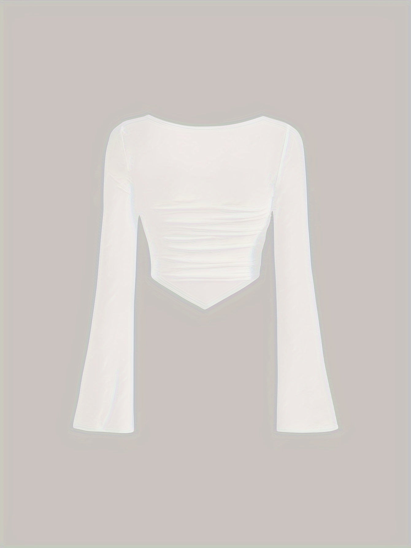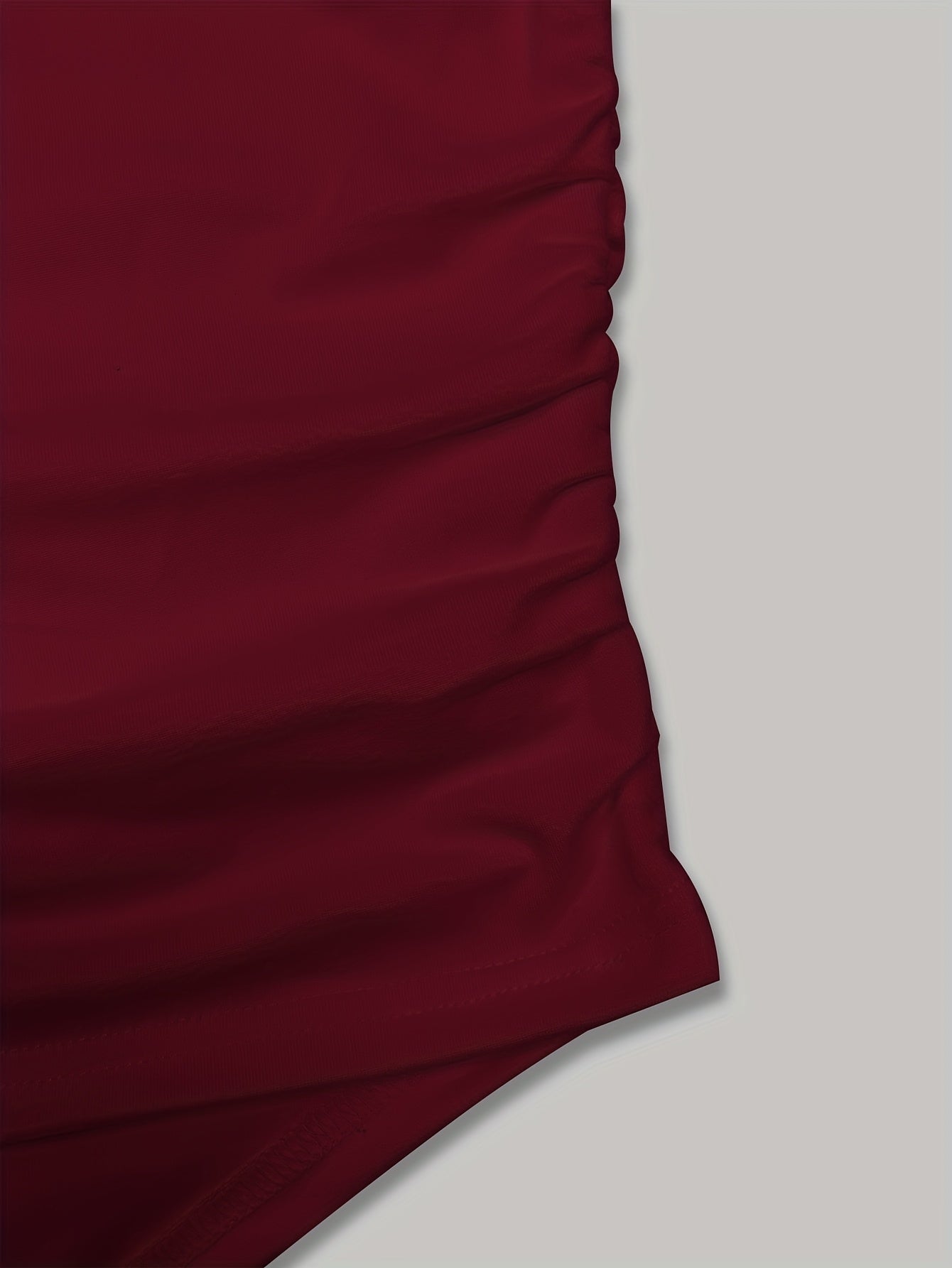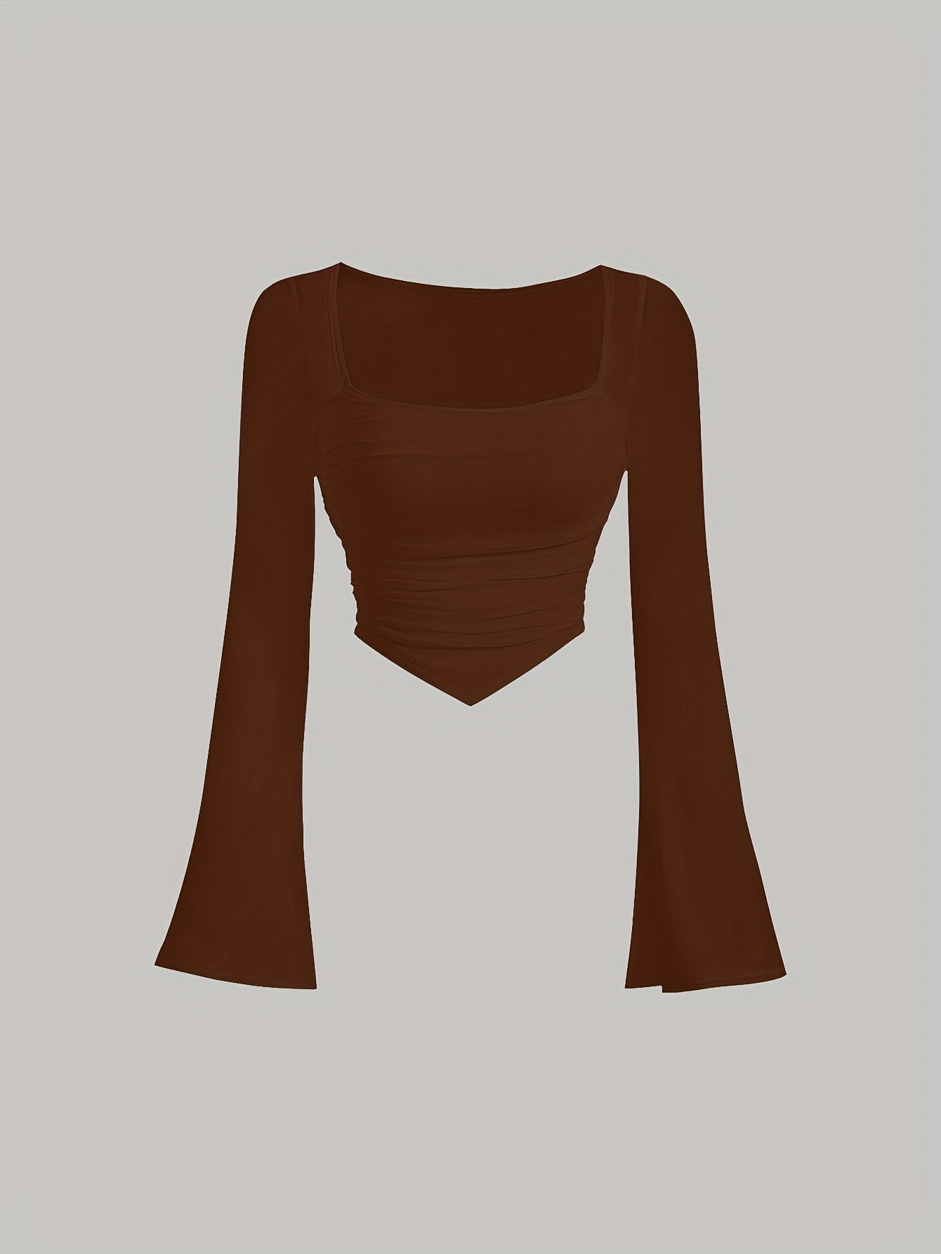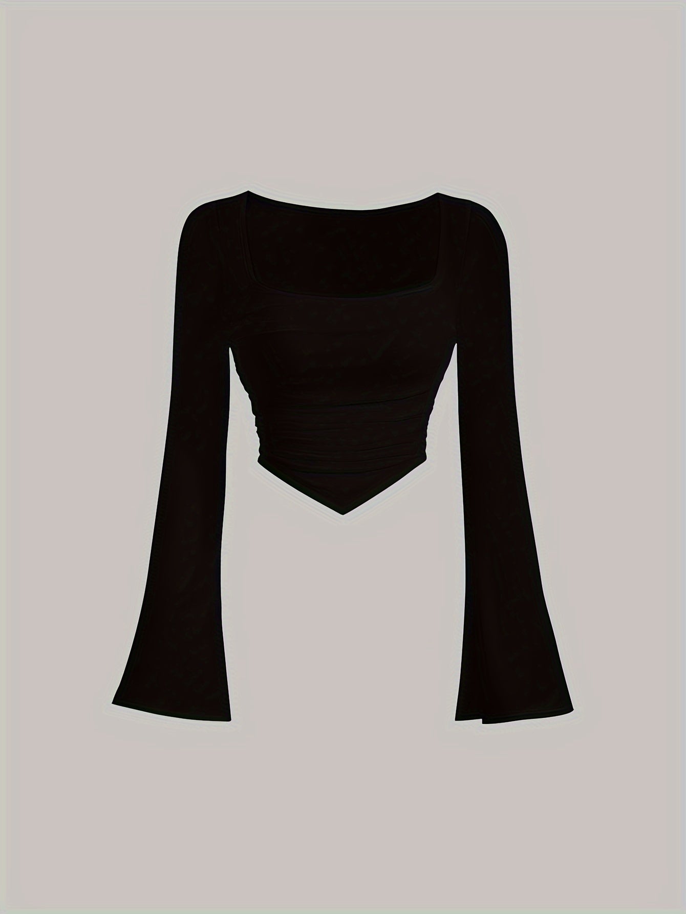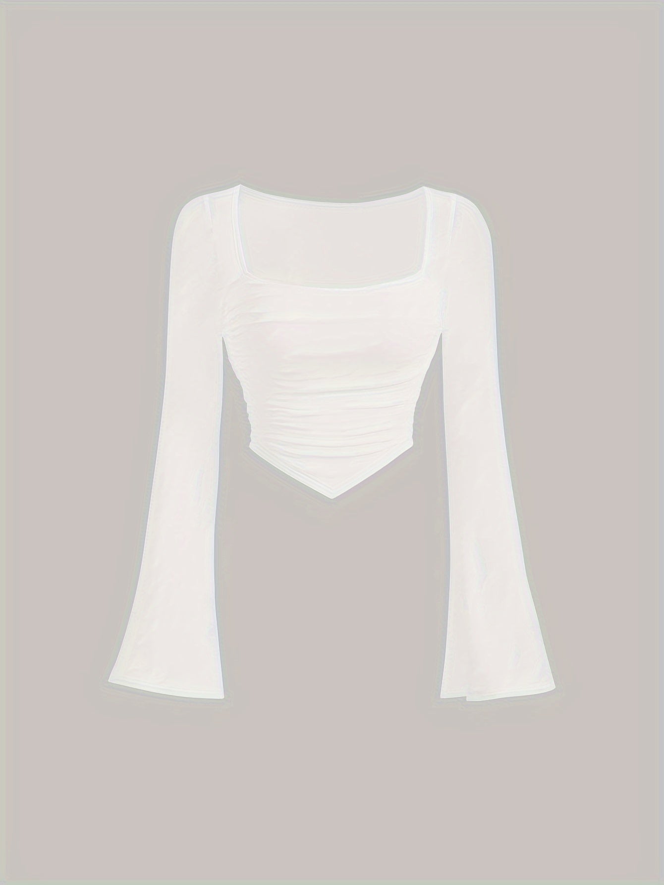 Women'S Elegant Square Neck Solid Color T-Shirt, Polyester Knit Fabric, Short Length, Stretchy Slim Fit, Spring/Fall Fashion Top