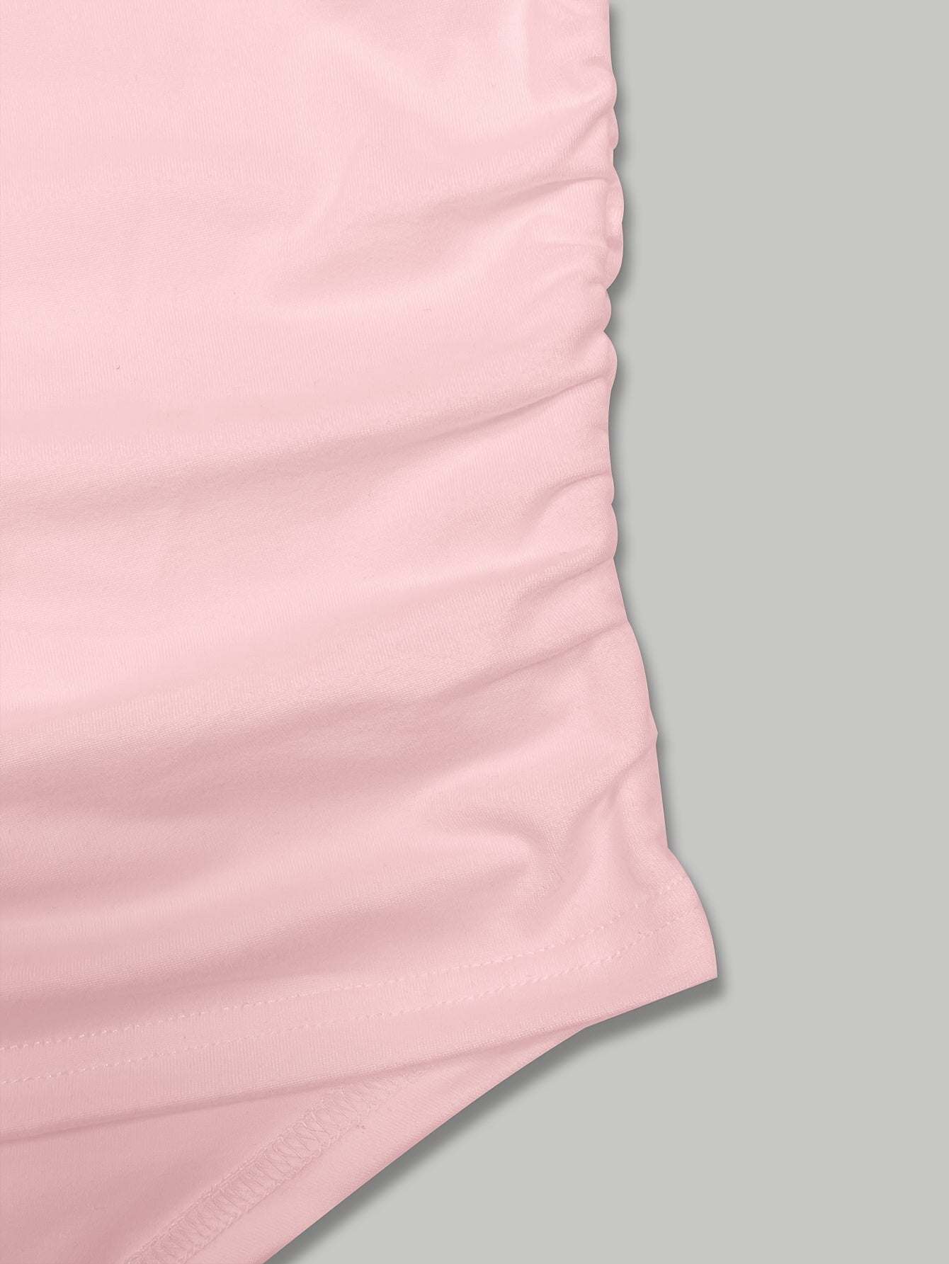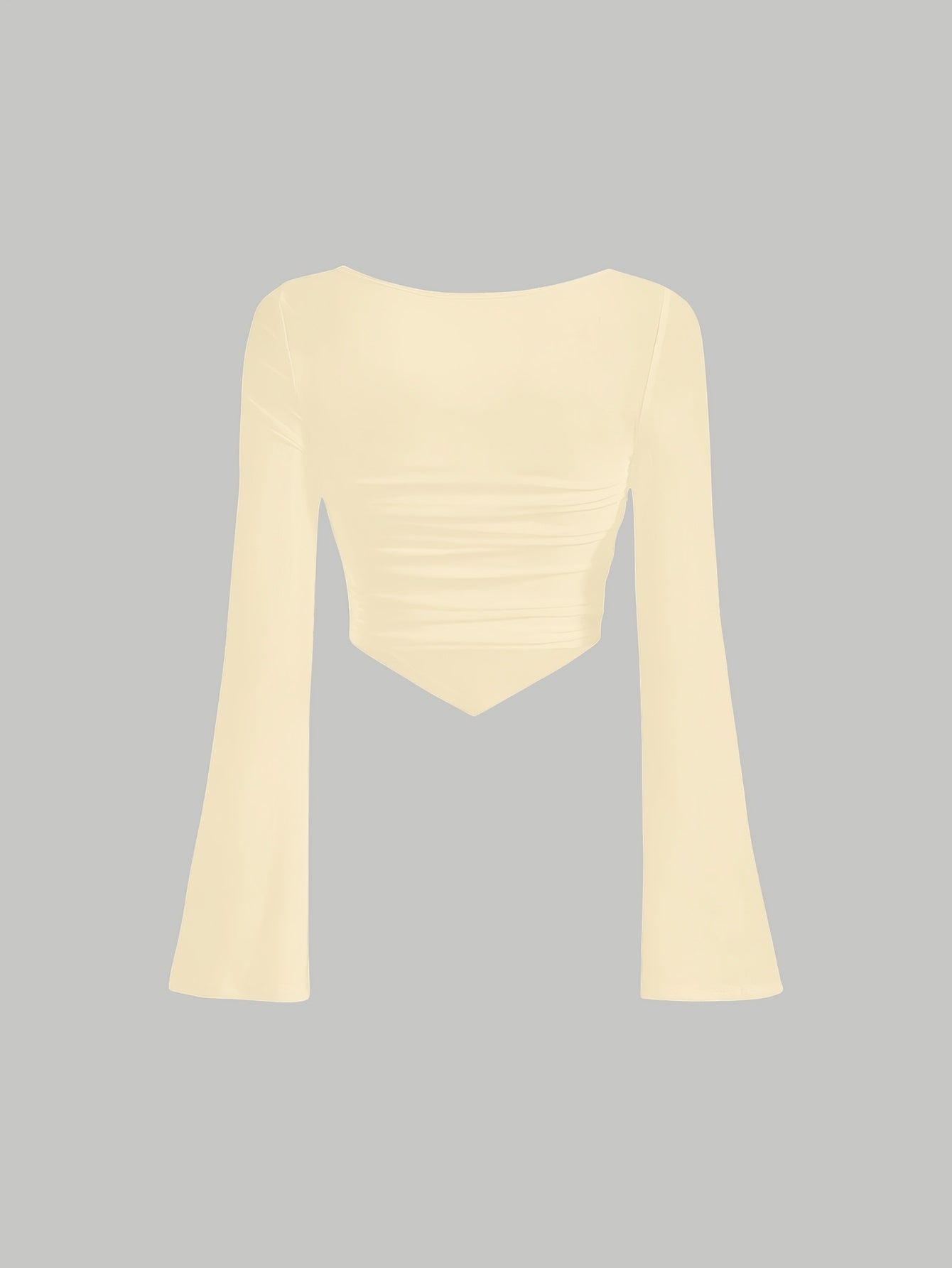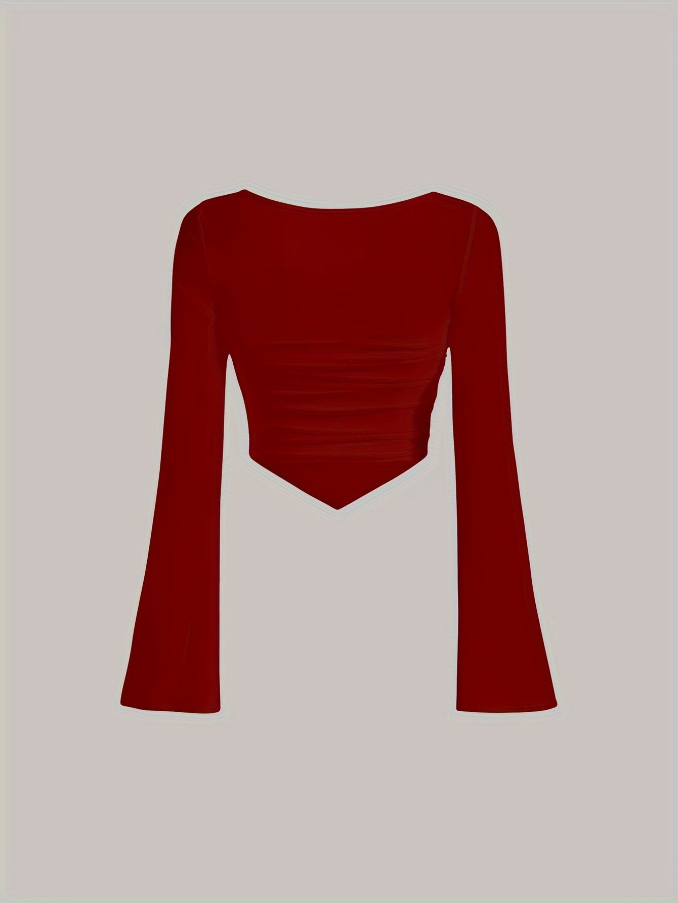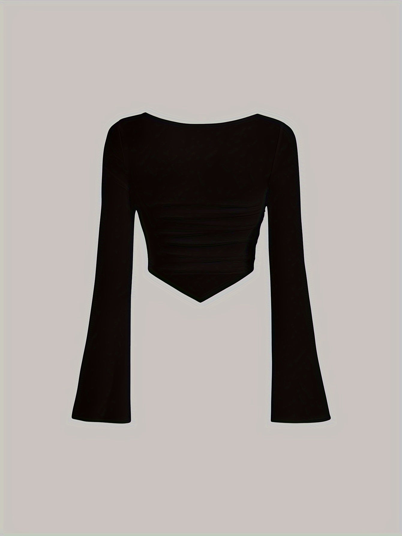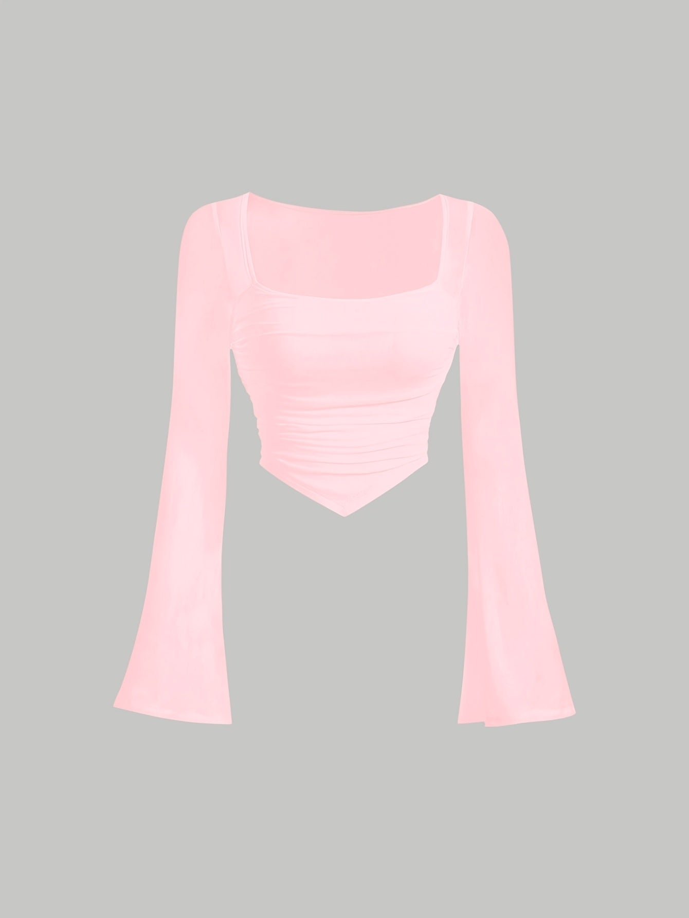 Women'S Elegant Square Neck Solid Color T-Shirt, Polyester Knit Fabric, Short Length, Stretchy Slim Fit, Spring/Fall Fashion Top