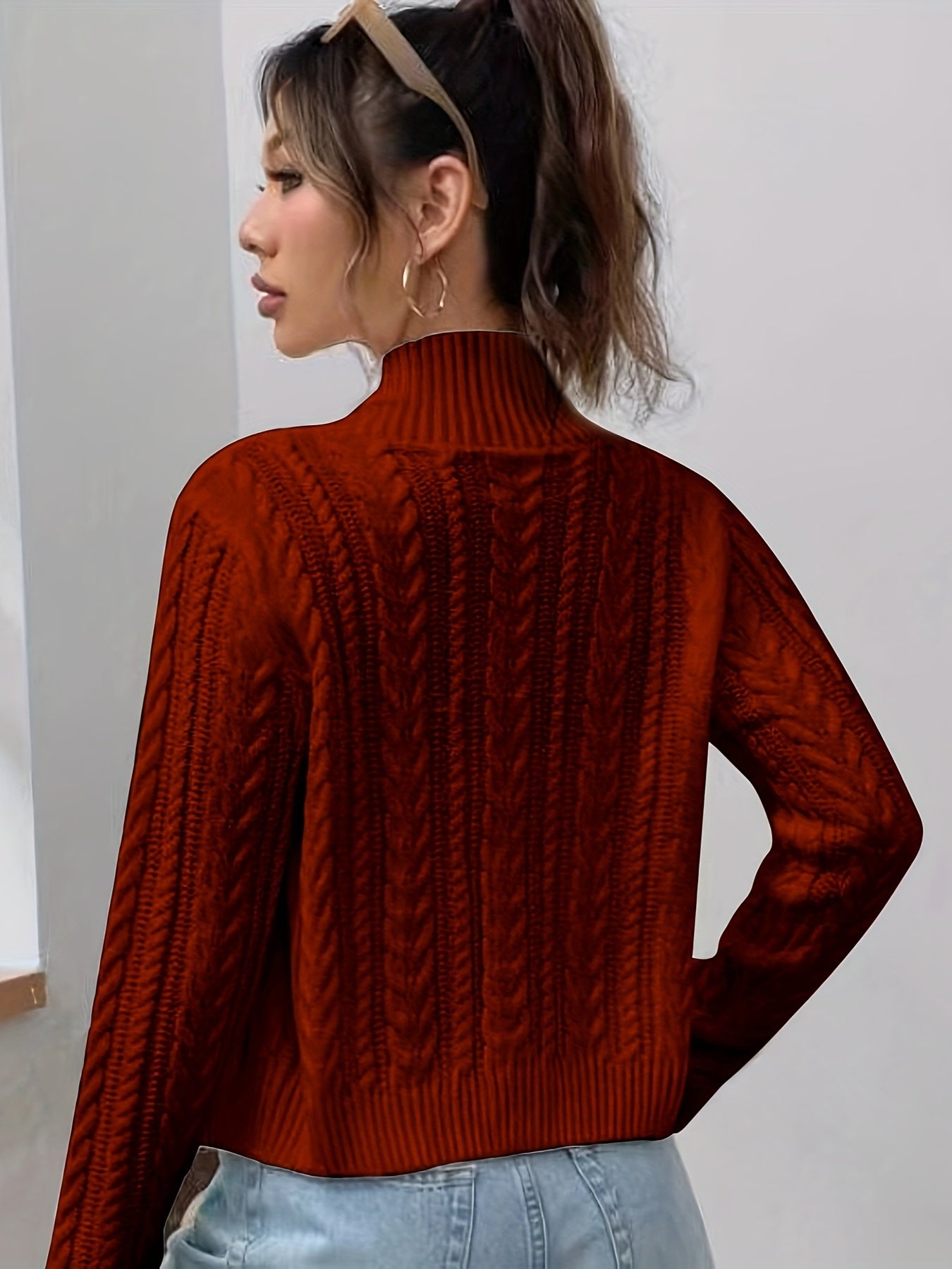 Women's Elegant Zip-Up Cable Cardigan with Stand Collar - Machine Washable Spring/Fall Jacket, White Solid Color, Braided Design & Zipper Front for Casual or Dressy Outfits, Cardigan Sweater, Autumn Layering Piece, Spring Out