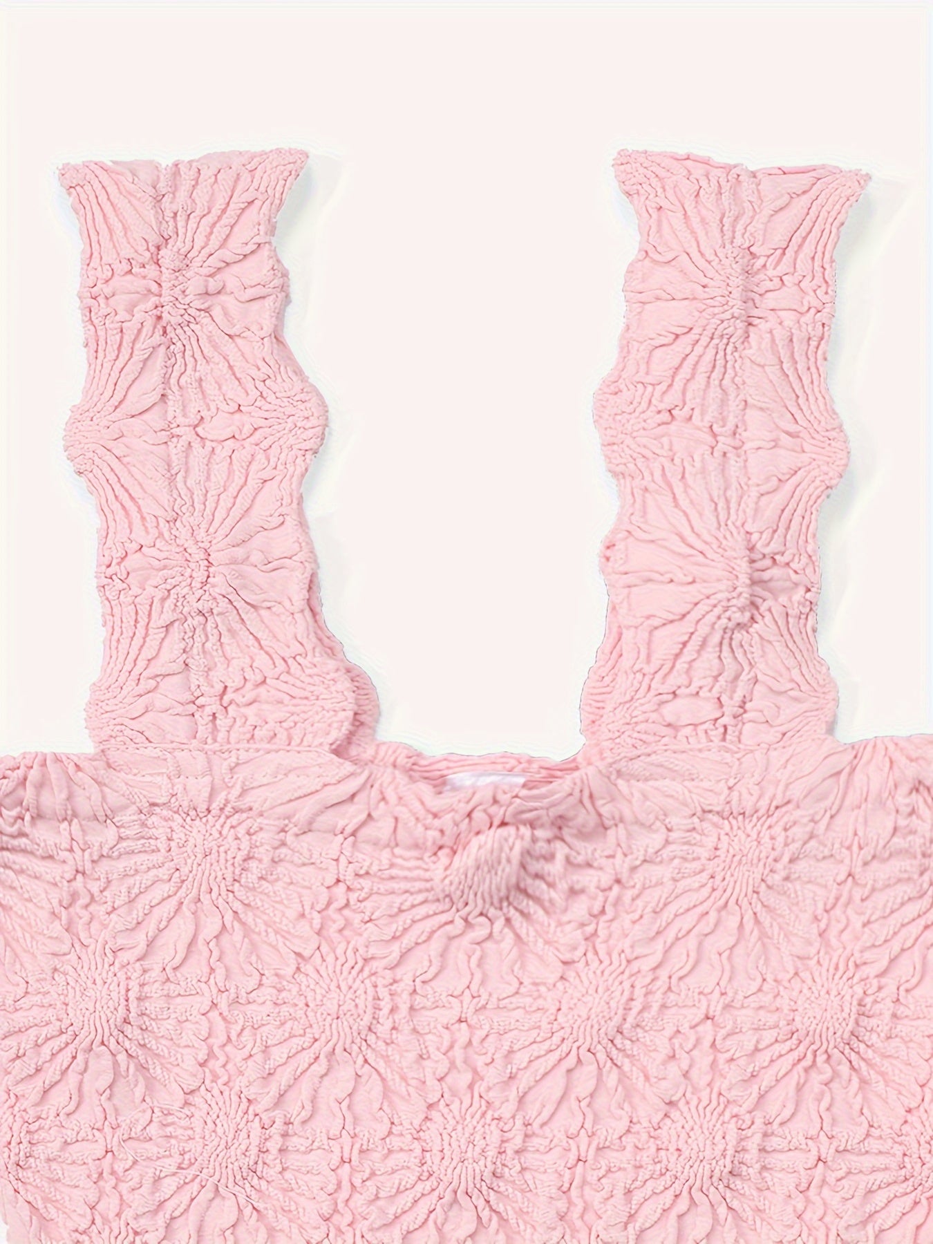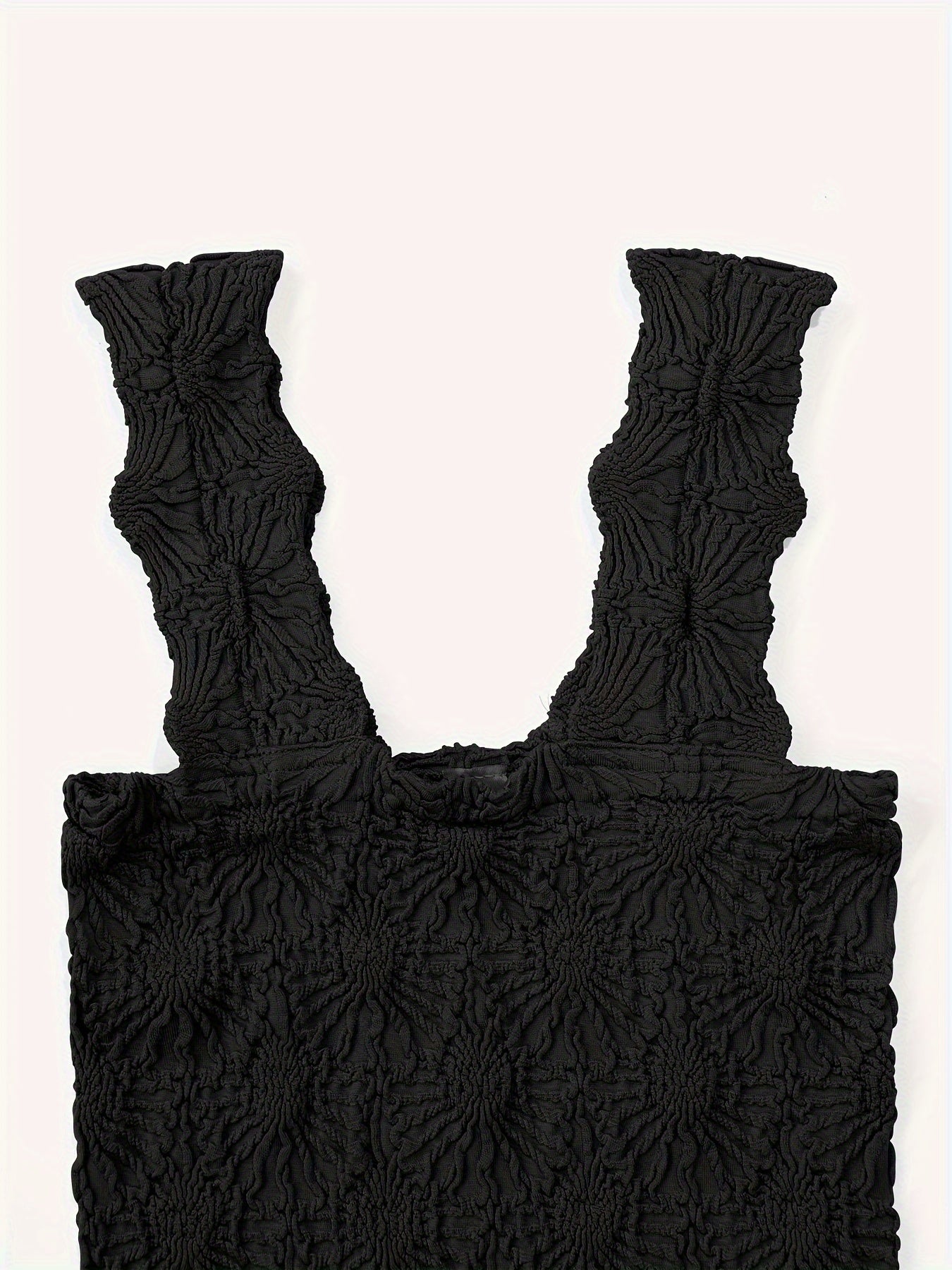 Women's Fashion Cami Tank Top With Jacquard Floral, Wide Shoulder Strap Square Neck Tank Top, Women's Activewear