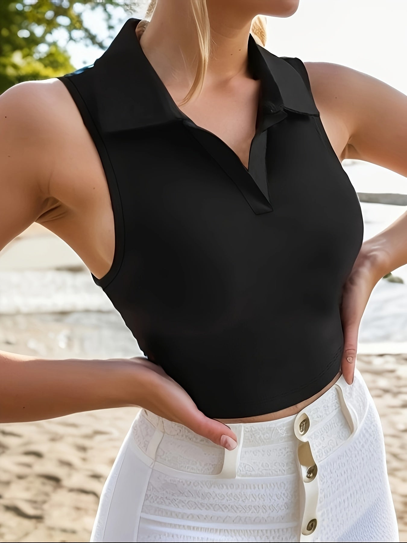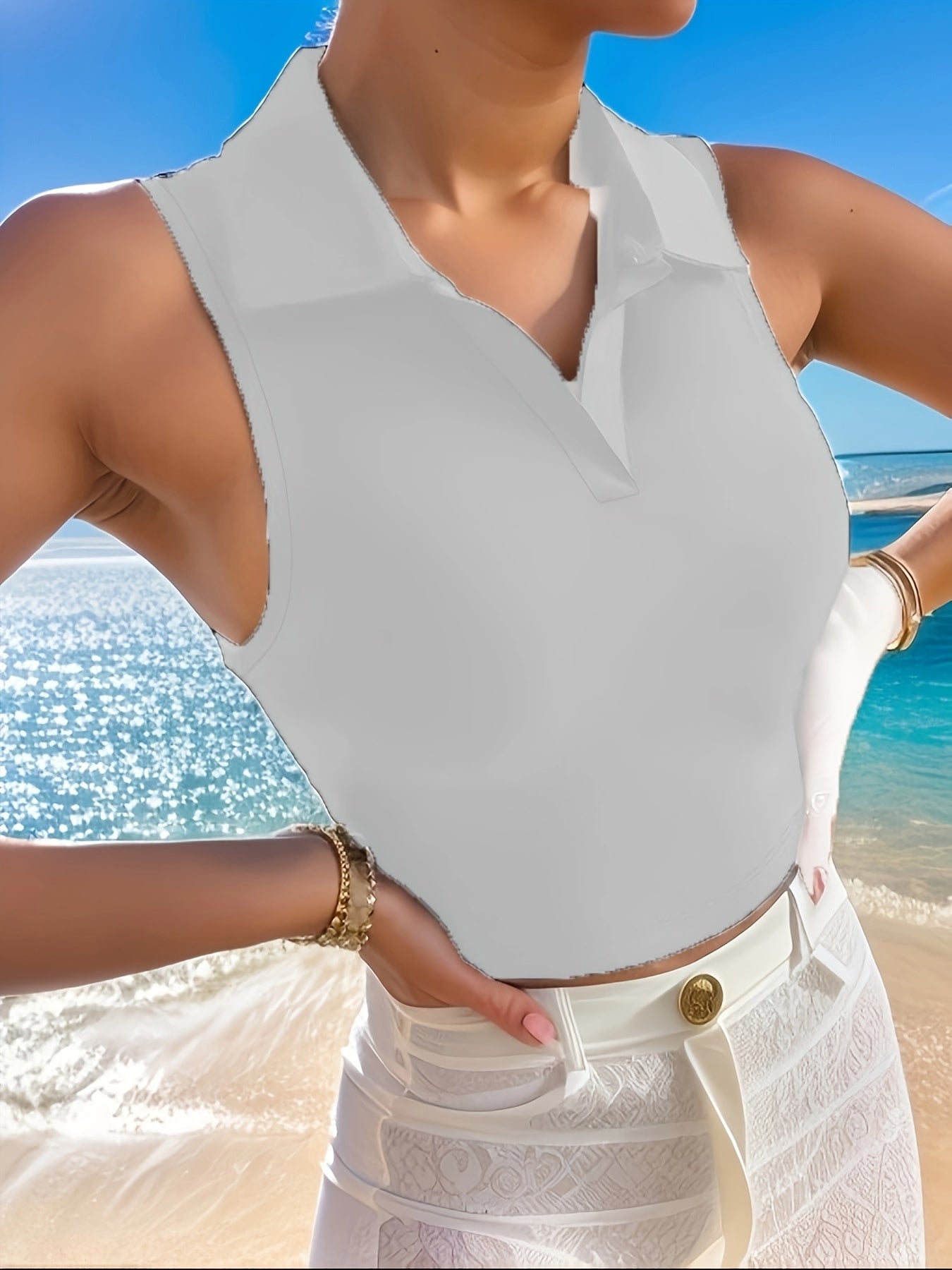 Women's Fashion Casual Sports Yoga Running Short Top with Elastic Neckline and Belly Button