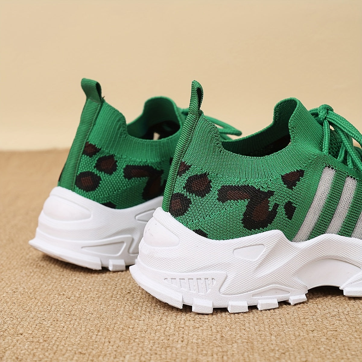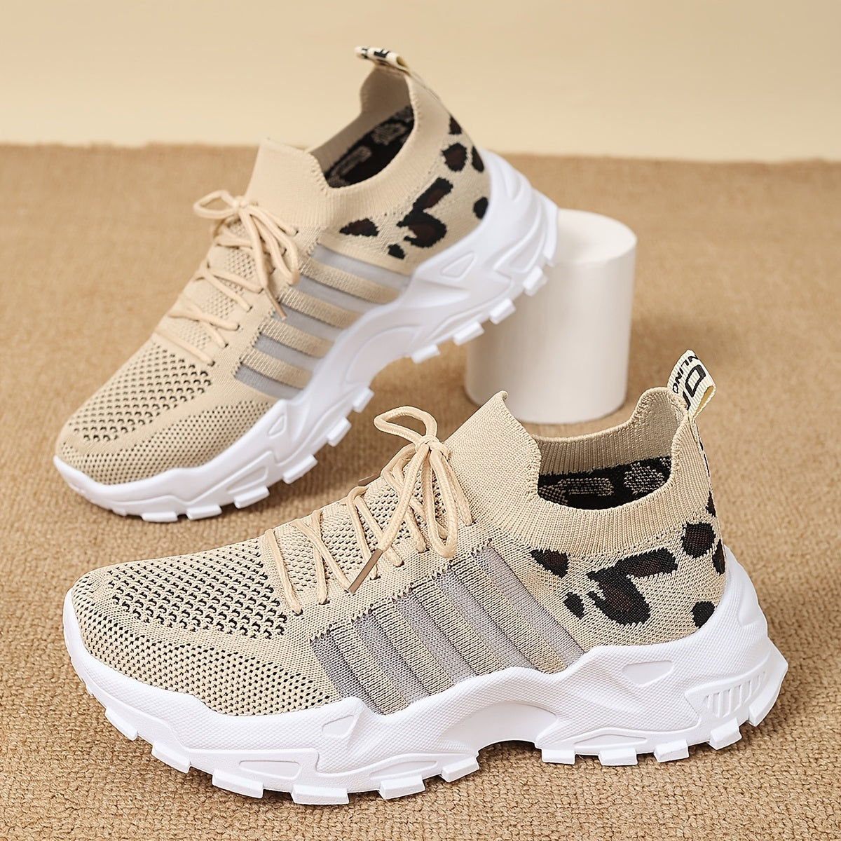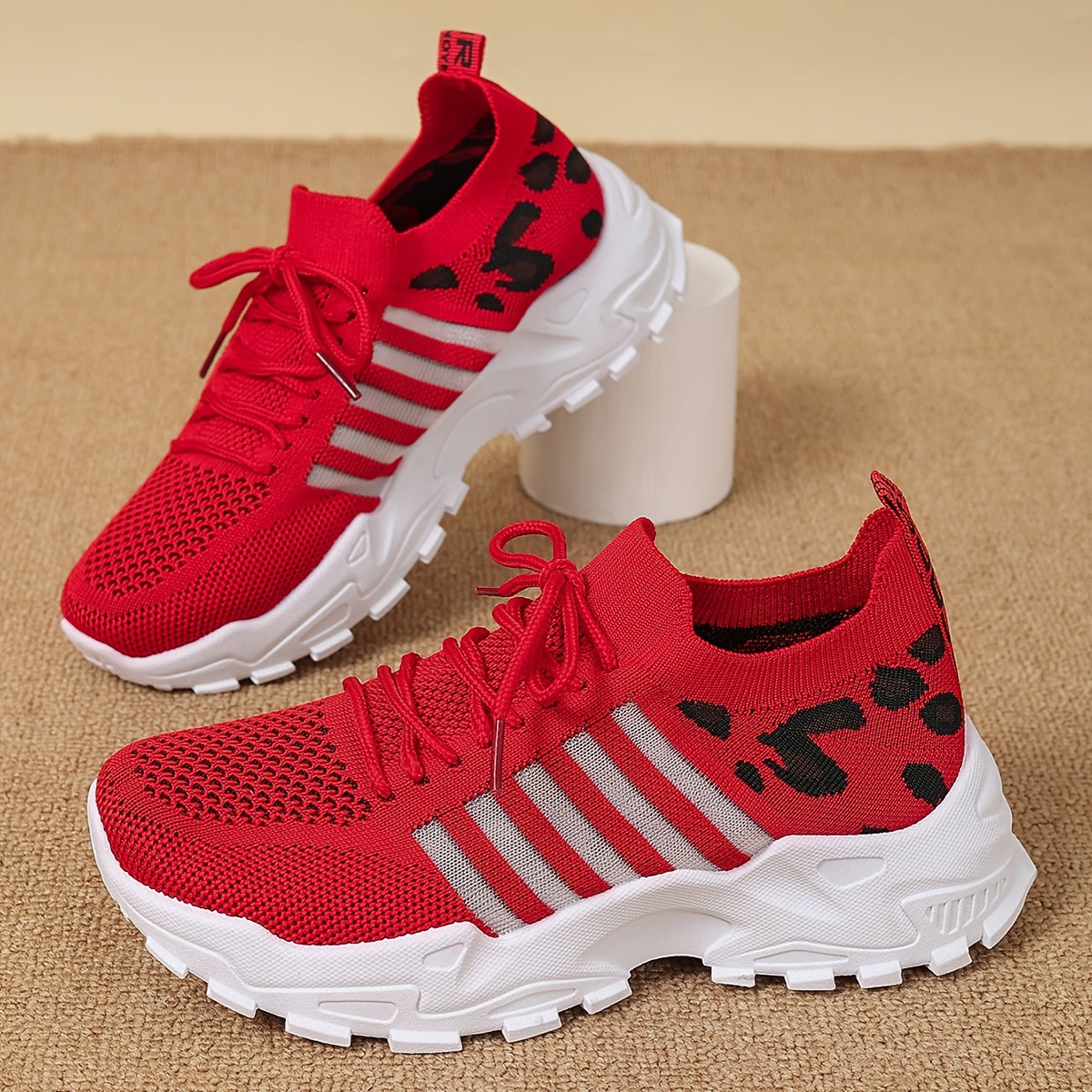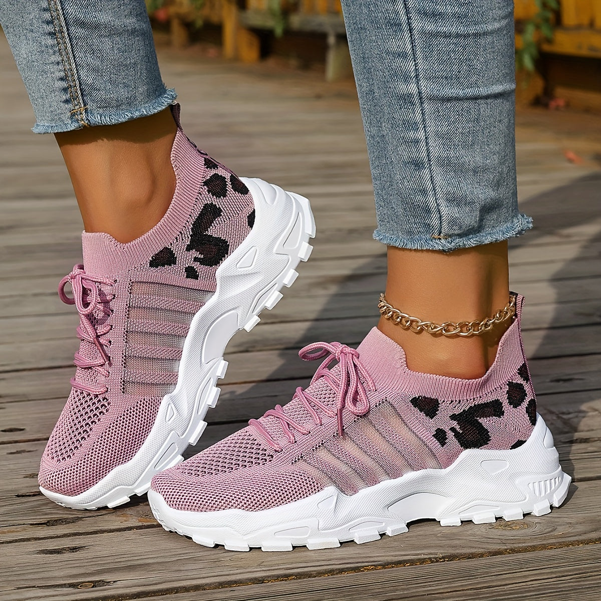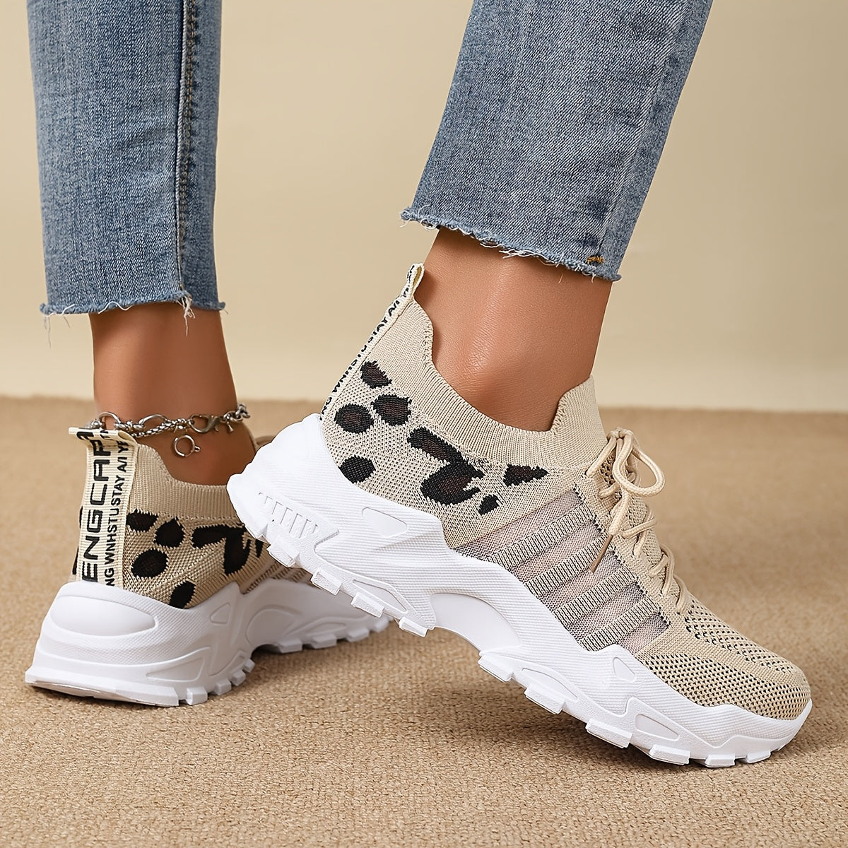 Women's Fashion Leopard Print Lace-Up Sneakers, Breathable Mesh Walking Shoes for Spring/Summer, Lightweight Comfortable Casual Sports Control Footwear with PVC Sole and Microfiber Insole