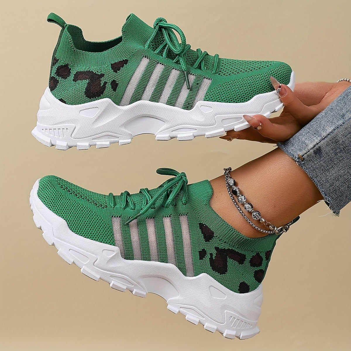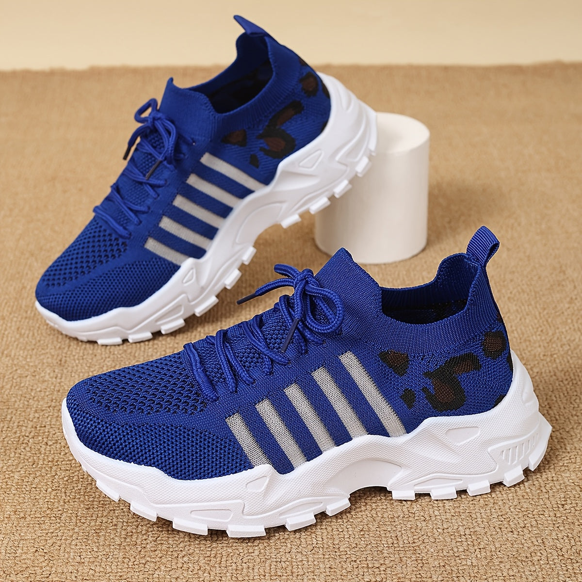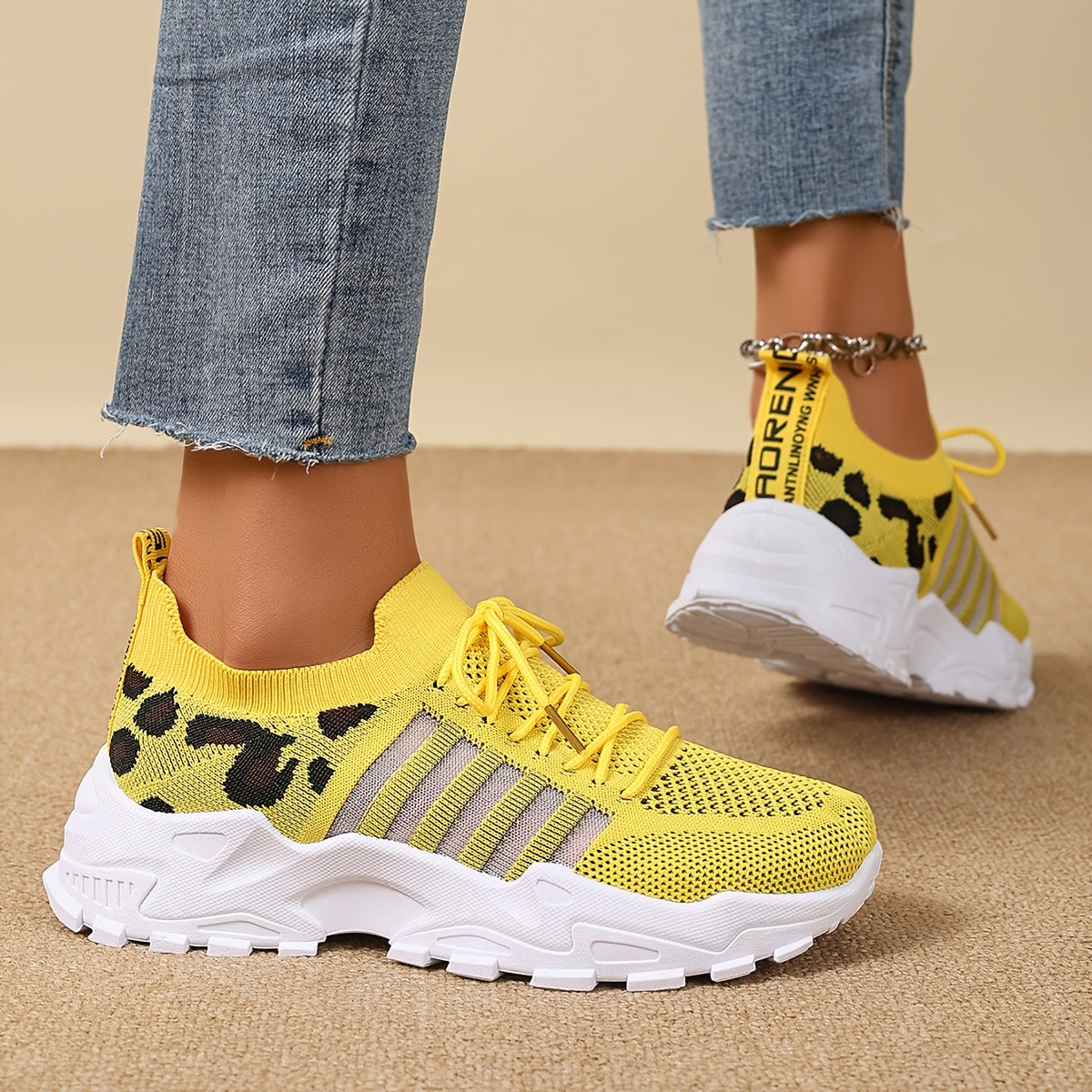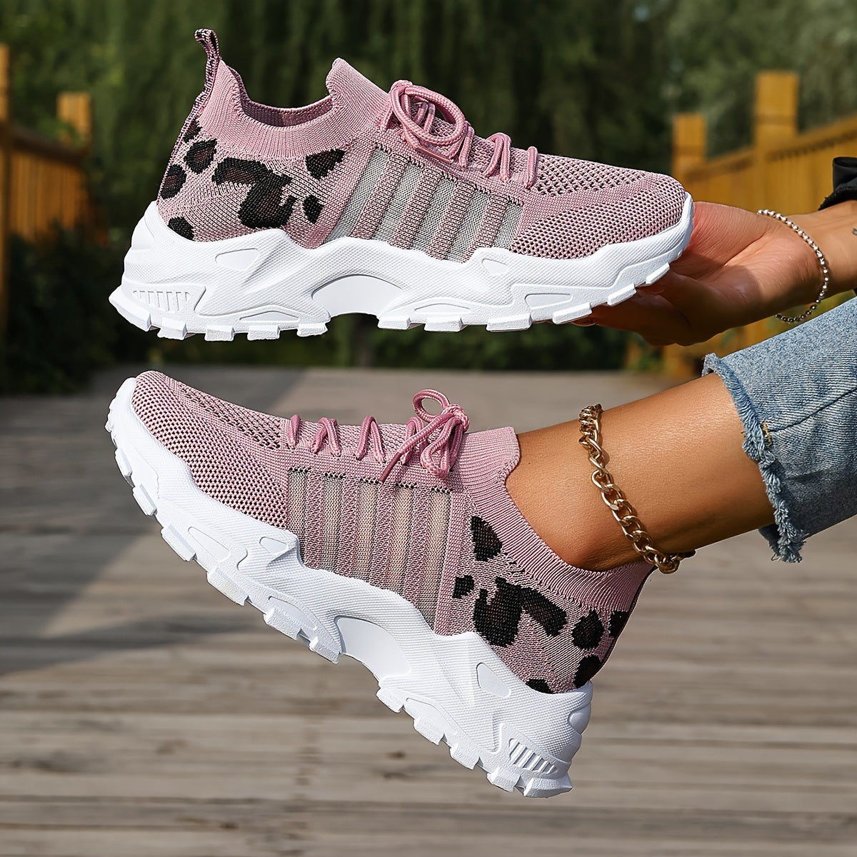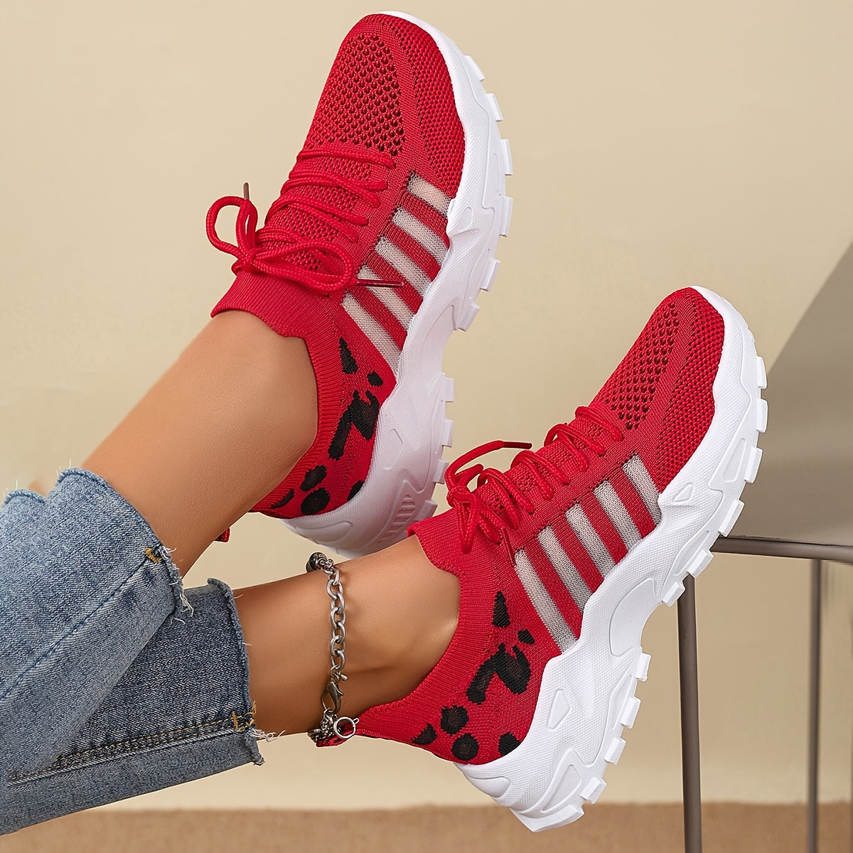 Women's Fashion Leopard Print Lace-Up Sneakers, Breathable Mesh Walking Shoes for Spring/Summer, Lightweight Comfortable Casual Sports Control Footwear with PVC Sole and Microfiber Insole