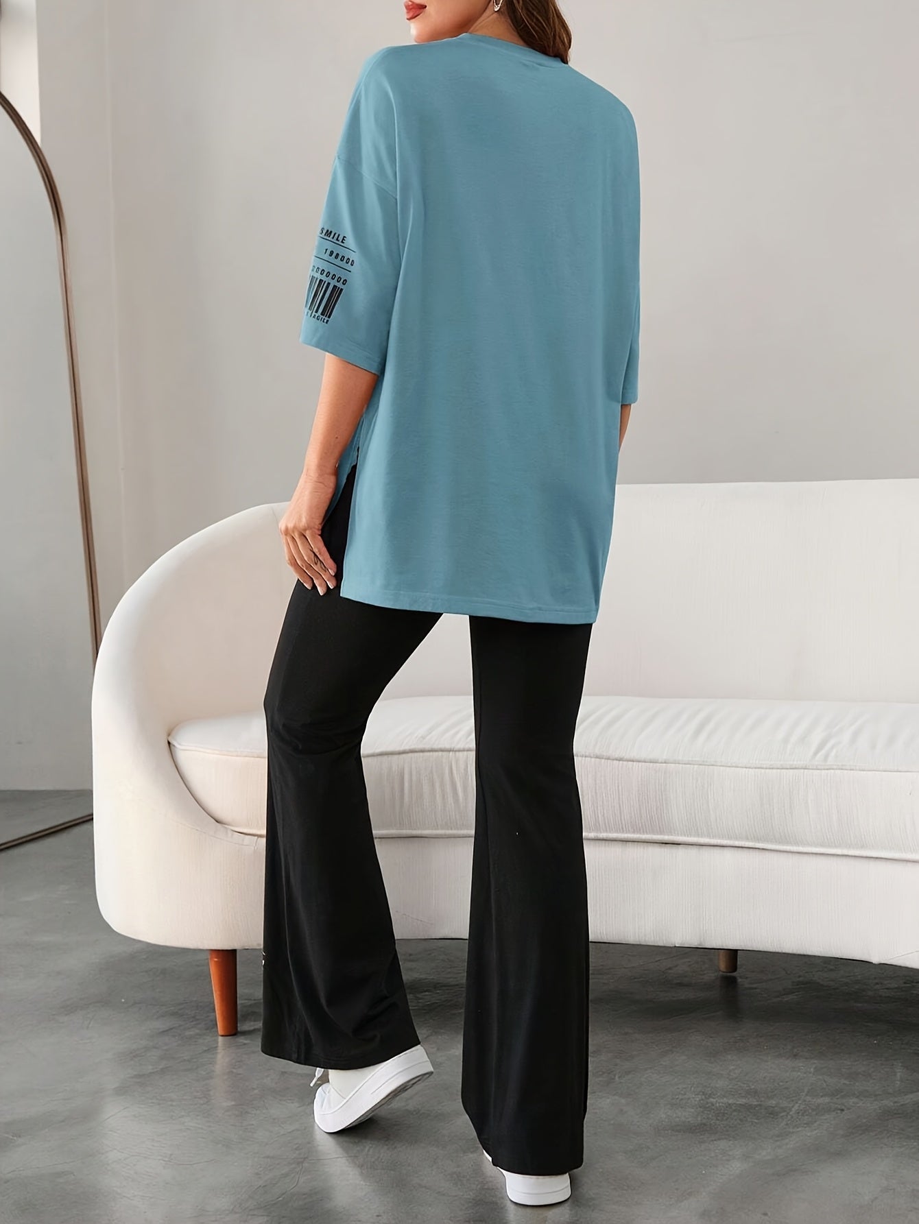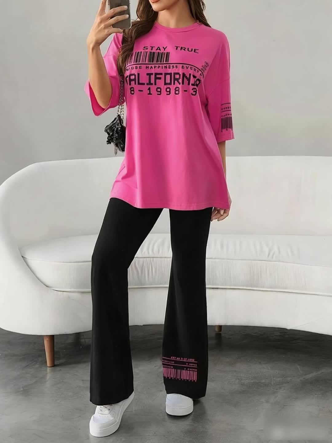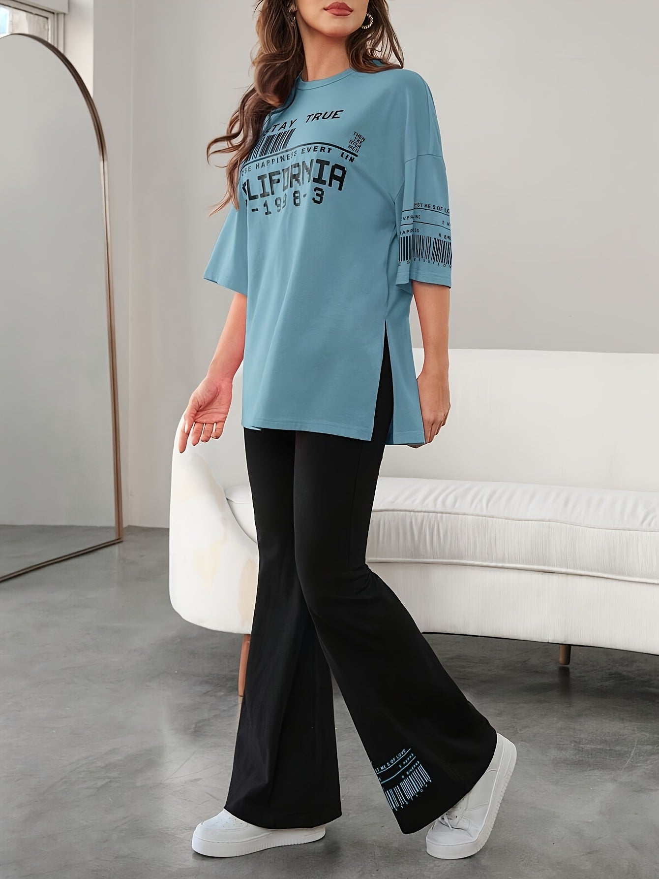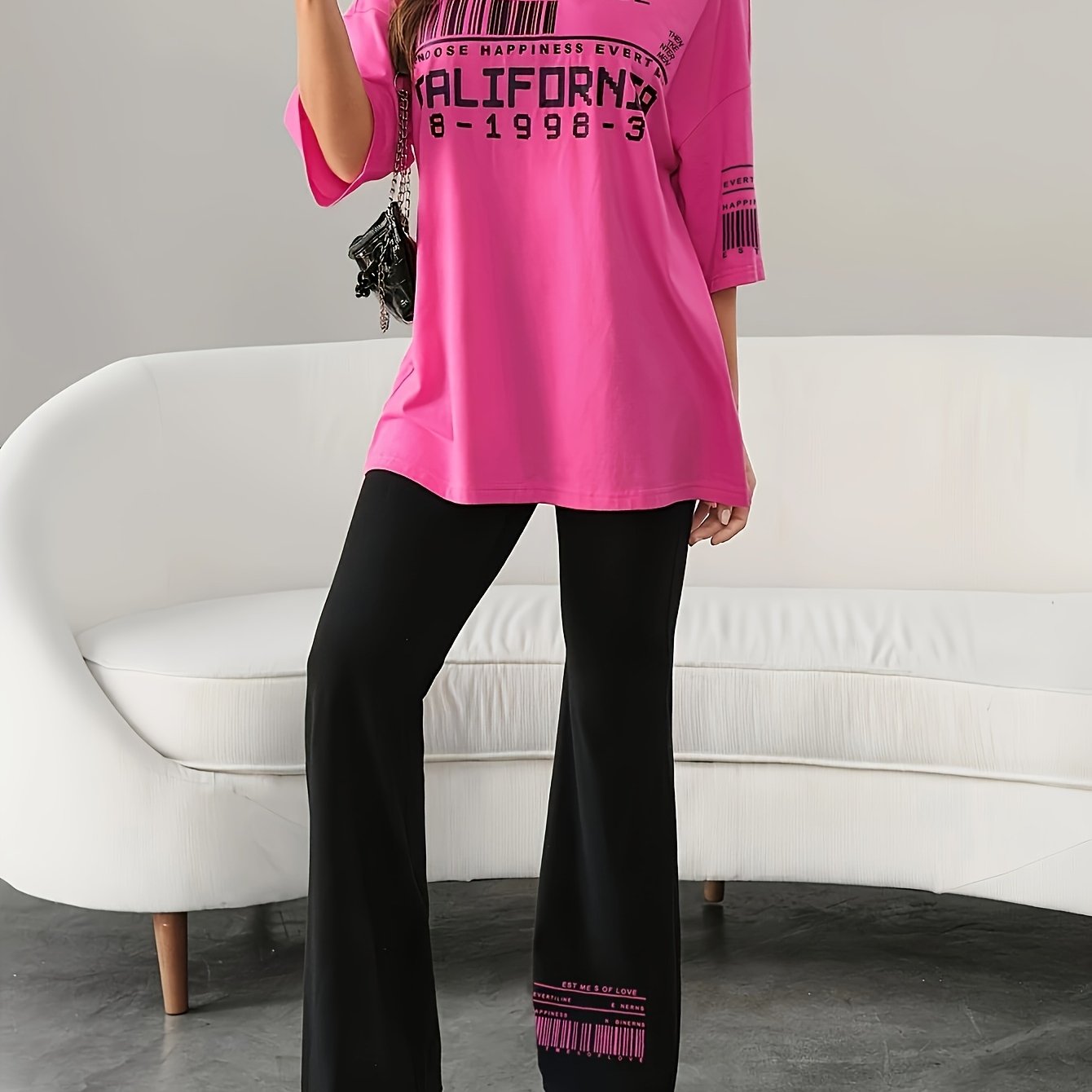 Women's Fashion Letter Print Round Neck Top and Pants Set