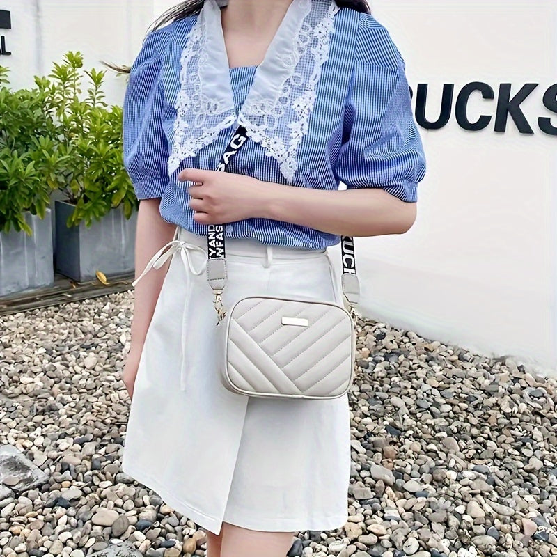 Women's Fashion Quilted Pattern Crossbody Bag, Faux Leather, Casual Shoulder Purse With Adjustable Strap
