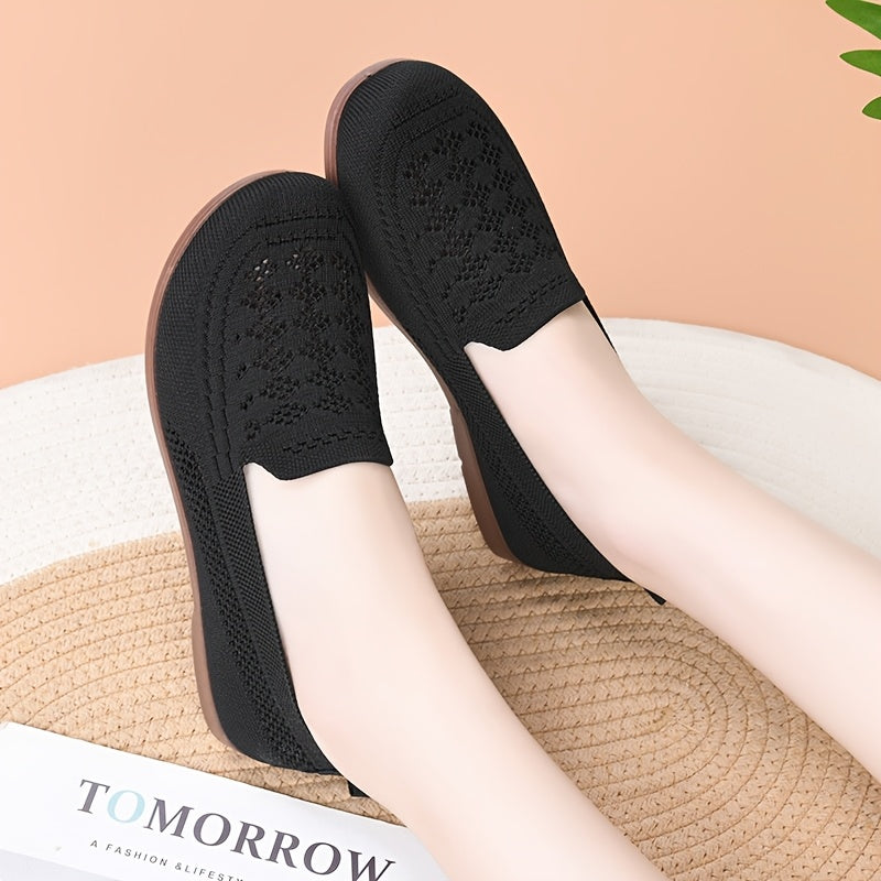 Women's flat shoes, with hollowed out breathable and comfortable uppers, soft-soled casual plain color shoes for summer
